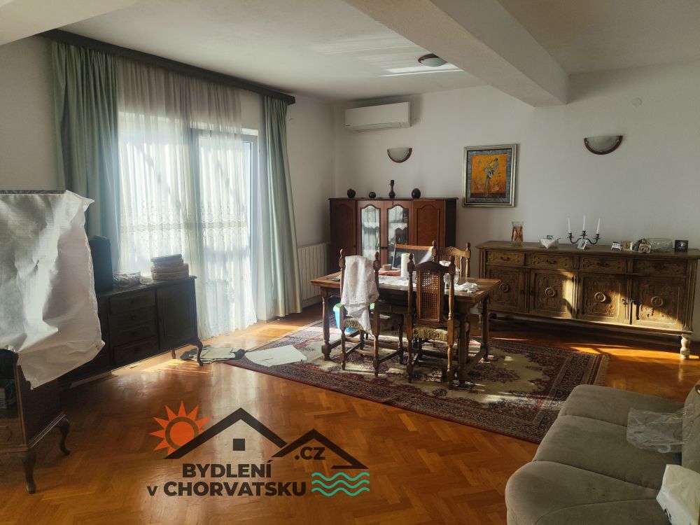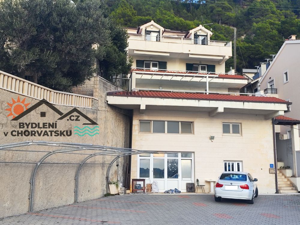 In Podstrana, einem Ferienort direkt neben Split, bieten wir ein Wohnhaus mit Garage und Ladenfläche zum Verkauf an. Das Haus liegt in erster Reihe am Meer (über die Straße) und verfügt über Parkplätze für 8 Autos vor dem Haus. Im Erdgeschoss befindet sich eine 5 Meter hohe Ladenfläche, die teilweise mit einer Galerie ausgestattet ist. Die Fläche beträgt 92 m2. Im erhöhten Erdgeschoss befindet sich eine Wohnung mit drei Schlafzimmern, einem Wohnzimmer, einer Küche, zwei Badezimmern und einer großen Terrasse. Die Wohnung hat eine Fläche von 145 m2, Zentralheizung und zwei Klimaanlagen. Das erste Stockwerk ist über eine Innentreppe erreichbar.