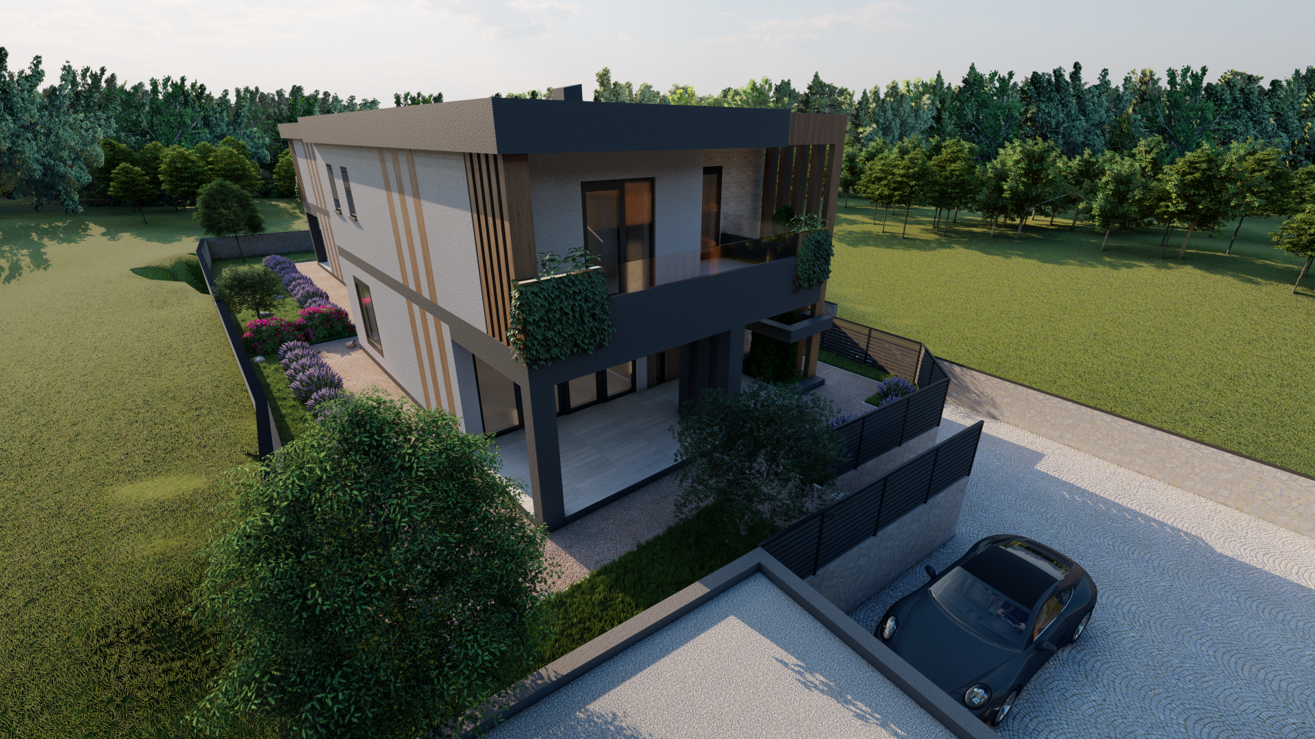 BAKAR, HRELJIN – Exklusive Doppelhaushälfte im Neubau! Modernes und hochwertiges Neubauprojekt in Hreljin! Ruhige und grüne Umgebung, sehr gute Verkehrsanbindung, nur 10-20 Minuten vom Zentrum von Rijeka, der Insel Krk oder Gorski Kotar entfernt. Hochwertige Materialien und Ausstattung zeichnen diesen Neubau aus, der lediglich aus zwei zweigeschossigen Wohnungen im 3B+DB-Format mit eigenem Garten besteht. Der Eingang zum umzäunten Hof ist durch eine Schiebetür gesichert, es gibt 4 Parkplätze im Hof, 2 für jede Wohnung und zwei große Abstellräume im Freien. Die zweistöckige Wohnung verfügt über eine Gesamtwohnfläche von 153 m2, einen angeschlossenen Garten, einen Abstellraum von 15 m2, zwei Parkplätze und zwei zusätzliche Parkplätze für Gäste außerhalb des Gartens. Das Erdgeschoss der Wohnung besteht aus einem überdachten Eingang, Flur, Toilette, Maschinenraum, Abstellraum, Wohnzimmer mit offener Küche und Esszimmer mit Zugang zu einer großzügigen überdachten Terrasse und dem angrenzenden Garten. Eine Innentreppe führt in den ersten Stock, der aus einem Flur, einem Arbeitsraum – Waschküche, einem Badezimmer und drei Schlafzimmern besteht, von denen eines das sogenannte ist Hauptschlafzimmer mit eigenem Bad und Ankleidezimmer. Ein Schlafzimmer und das Hauptschlafzimmer haben Zugang zu einem großen überdachten Balkon. Der angegebene Preis gilt für eine komplett möblierte Immobilie, die sogenannte schlüsselfertiges System. In dieser Phase können Innenarchitektur und Ausstattung an die Wünsche des Kunden angepasst werden. Zur Ausstattung der Wohnung gehören: - Fußbodenheizung, Kühlung - Wärmepumpe - ALU-Zimmerei mit elektrischen Jalousien und Moskitonetzen - Designer-Innenschreinerei des italienischen Herstellers BERTOLOTO - Video-Gegensprechanlage - einbruchsichere intelligente Eingangstür - Eichen-3-Schicht-Parkett - erstklassige Keramik - erstklassige Sanitärartikel und Armaturen - interaktive Schalter und Steckdosen der Marke LIVOLO - Anschluss zum Laden von Elektrofahrzeugen - Vorbereitung für das Solarkraftwerk Die voraussichtliche Fertigstellung der Arbeiten ist im Sommer 2024. Eine ideale Wahl für alle, die den Luxus ihres Zuhauses in einer grünen, ruhigen und intimen Oase genießen möchten, in der alle lebensnotwendigen Annehmlichkeiten leicht zu erreichen sind.