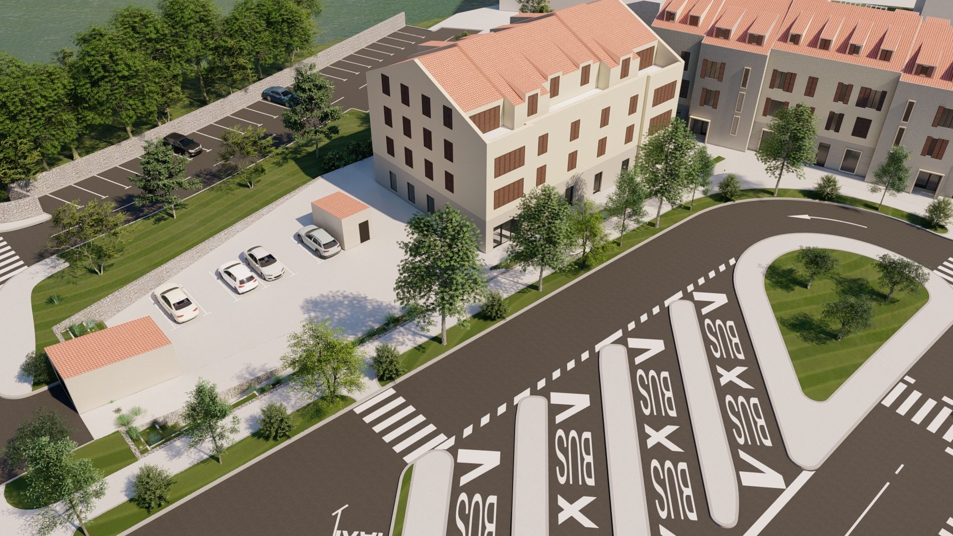 Insel Cres, Stadt Cres – 1-Zimmer-Wohnung mit Wohnzimmer in einem modernen Neubau in Toplage, nur 50 Meter vom Meer entfernt. Wir bieten eine 2,5-Zimmer-Wohnung mit Wohnzimmer im zweiten Obergeschoss eines modernen Wohngebäudes in einer außergewöhnlichen und einzigartigen Lage an. Die Wohnung besteht aus einem Eingangsbereich, einem offenen Wohnbereich mit Küche und Essbereich sowie Zugang zu einer Loggia, einem Schlafzimmer und einem Badezimmer mit einer Wohnfläche von 54,98 m². Zur Wohnung gehört ein Garagenstellplatz (14,30 m²) sowie ein Abstellraum in der Garage (3,07 m²). Dieses attraktive Wohn- und Geschäftsgebäude mit Aufzug und Tiefgarage befindet sich in der ersten Bauphase und umfasst 14 Wohneinheiten mit 1- und 2-Zimmer-Wohnungen. Die Wohnungen werden schlüsselfertig verkauft und sind hochwertig ausgestattet, unter anderem mit Fußbodenheizung, Inverter-Klimaanlagen, erstklassigen Bodenbelägen und Parkett, begehbaren Badezimmern und hochwertiger Sanitärausstattung namhafter Hersteller. Eine Rarität in diesem Angebot, eine einzigartige Lage.