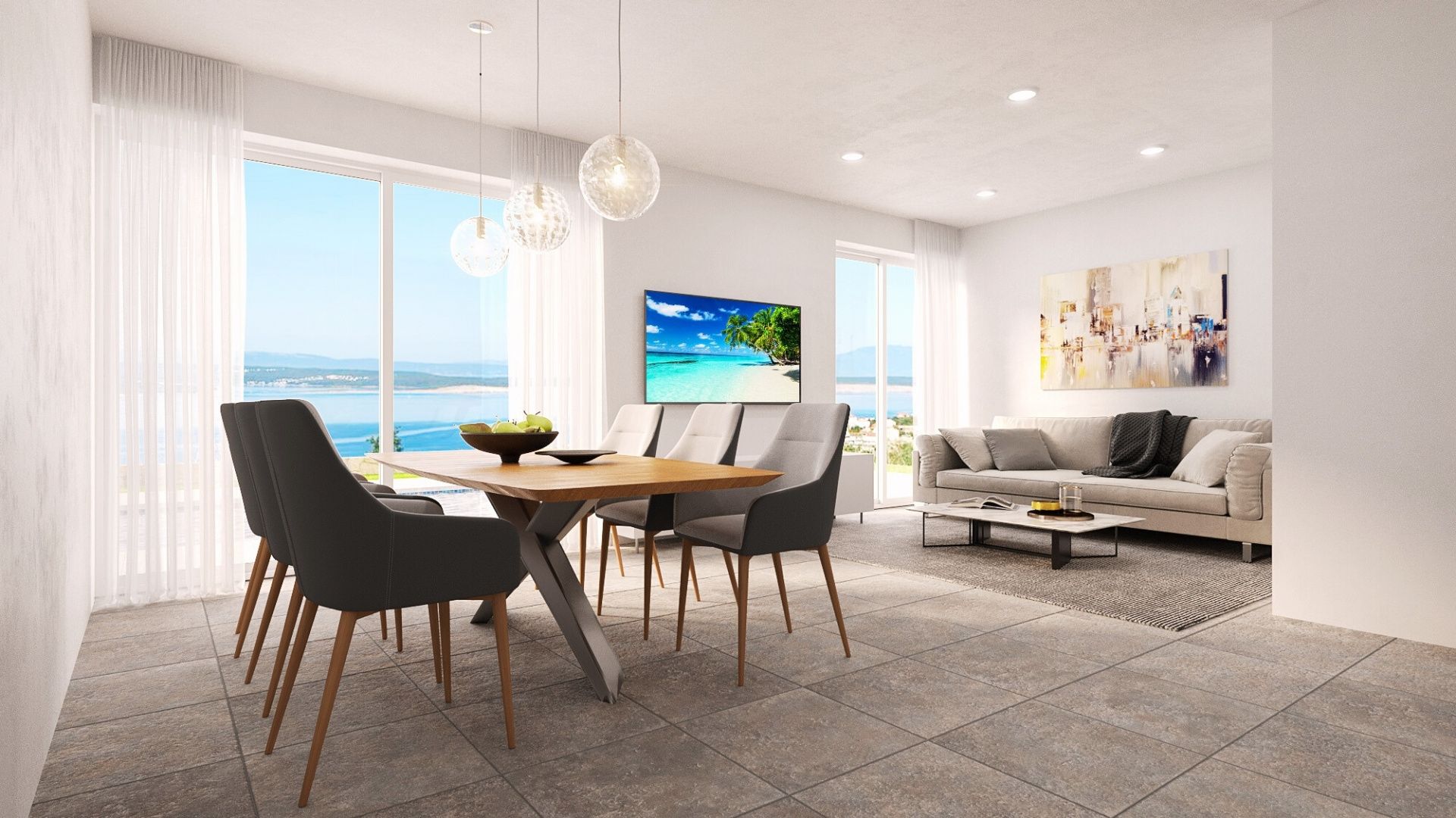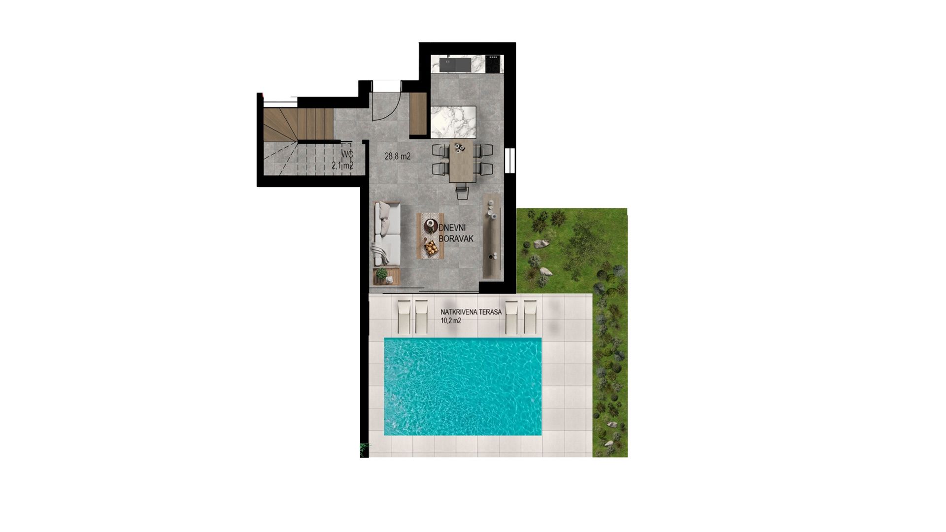 CRIKVENICA – Modernes Haus mit Pool und Panoramablick Crikvenica zählt zu den begehrtesten Küstenstädten der nördlichen Adria und ist bekannt für sein angenehmes Klima, gepflegte Strände, eine lange Strandpromenade und gute Verkehrsanbindungen. Der Ort ist ideal zum Wohnen, für den Urlaub oder als langfristige Kapitalanlage. In ruhiger, erhöhter Lage entsteht ein Projekt mit sieben modernen Doppelhaushälften. Die Häuser zeichnen sich durch durchdachte Architektur, funktionale Raumaufteilung und hohe Lebensqualität aus und bieten einen freien Blick auf das Meer und die Stadt. Die erhöhte Lage garantiert Privatsphäre und Ruhe, während alle wichtigen Einrichtungen von Crikvenica schnell erreichbar sind. Die Villa B3 ist als funktionales Reihenhaus konzipiert und ideal zum Wohnen, für den Urlaub oder zur touristischen Vermietung. Im Erdgeschoss befinden sich ein großzügiger, offener Wohnbereich mit Küche und Essbereich sowie ein Gäste-WC. Im Obergeschoss befinden sich zwei Schlafzimmer, ein Badezimmer und ein Hauswirtschaftsraum, der den Schlafbereich klar abgrenzt und organisiert. Der Außenbereich unterstreicht die hohe Qualität dieser Immobilie: Ein 97 m² großer Privatgarten mit Terrasse und privatem Pool bietet viel Platz zum Entspannen und geselligen Beisammensein in absoluter Privatsphäre. Zu jeder Wohneinheit gehört ein Parkplatz. Das Projekt umfasst Fußbodenheizung in allen Räumen, hochwertige Aluminiumfenster und -türen sowie Vinylböden (LVT oder SPC). Auf Wunsch des Käufers kann auch ein anderer Bodenbelag gewählt werden. Jede Wohneinheit verfügt zudem über einen Parkplatz. Es handelt sich um ein Neubauprojekt, für das bereits Reservierungen möglich sind. Die Kaufbedingungen sind äußerst günstig und flexibel (inklusive Vergünstigungen und Rabatten bei Anzahlung). Für weitere Informationen, Verfügbarkeit und Reservierungsmodalitäten kontaktieren Sie bitte direkt den Makler.