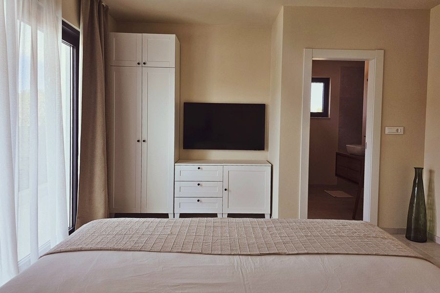 DUGI OTOK, ŽMAN – Luxusvilla mit Pool und separater Wohnung Die Villa erstreckt sich über ein 343 m² großes Grundstück, die Wohnfläche beträgt 172 m². Das Anwesen ist in zwei komplett separate Bereiche mit jeweils eigenem Eingang unterteilt, was absolute Privatsphäre gewährleistet. Der Hauptteil der Villa besteht aus einem Erdgeschoss mit einem modernen Schlafzimmer und Badezimmer, einem geräumigen Wohnzimmer und einer voll ausgestatteten Küche mit Zugang zu einer überdachten Terrasse. Im Obergeschoss befinden sich zwei Schlafzimmer und zwei Badezimmer. Das Hauptzimmer verfügt über einen großen Balkon mit Panoramablick auf das Meer, während das zweite Zimmer ebenfalls über ein eigenes Badezimmer und einen Balkon verfügt. Die Villa ist luxuriös eingerichtet und mit Eichen- und Teakholzmöbeln ausgestattet. Die Küchen- und Badezimmerausstattung stammt von Bosch, WMF und Villeroy & Boch. Jedes Zimmer und Wohnzimmer ist mit Smart-TVs ausgestattet, und die Keramik und Sanitärkeramik entsprechen höchster italienischer Qualität. Der Garten ist im mediterranen Stil gestaltet und bietet einen 9 x 4 Meter großen türkisblauen Pool und eine Sonnenterrasse zum Entspannen. Der zweite Teil der Villa verfügt über einen separaten Eingang und besteht aus einem Wohnzimmer mit Küche und einem Schlafzimmer mit Bad im ersten Stock (insgesamt 38 m²). Die Villa verfügt über zwei Parkplätze und einen 10 m² großen Maschinenraum, der als zusätzlicher Abstellraum genutzt werden kann. Die Villa liegt in einem ruhigen Teil von Žman mit freiem Blick auf das Meer und die Natur – ideal für einen luxuriösen Urlaub oder als Investition in eine touristische Vermietung. Bei jeder Besichtigung der Immobilie ist die Unterzeichnung des Vermittlungsvertrags obligatorisch!