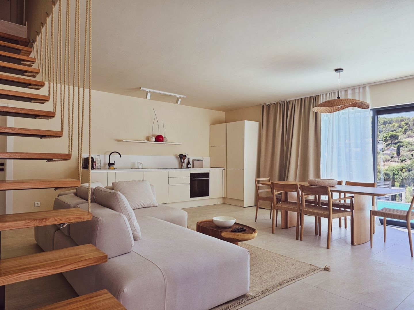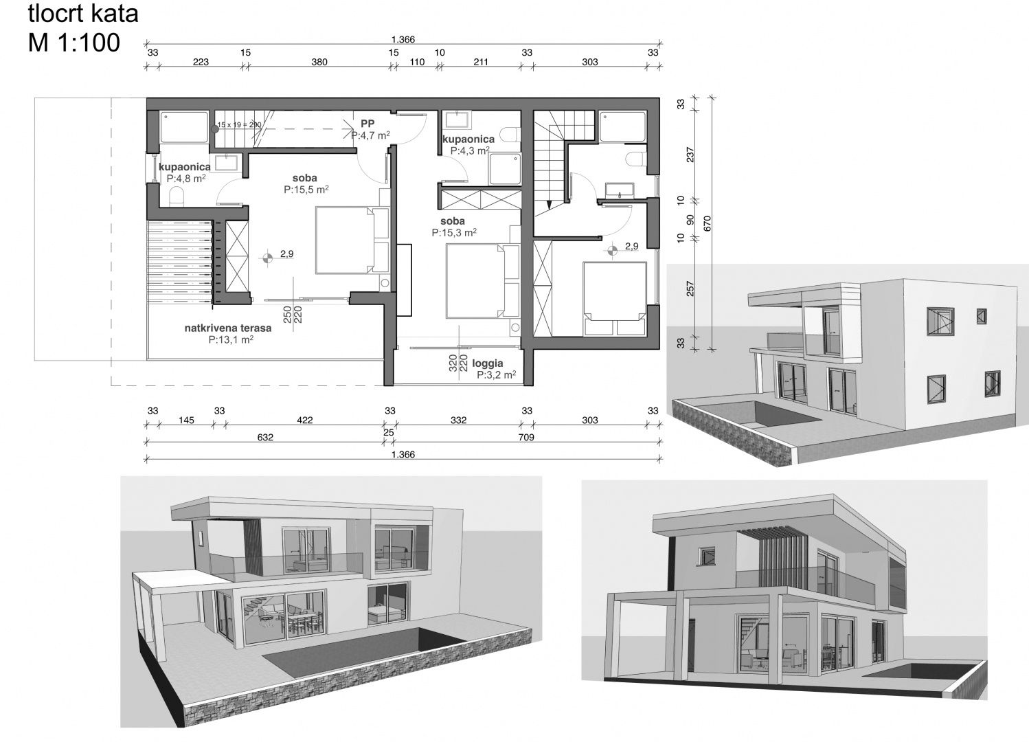 DUGI OTOK, ŽMAN – Luxusvilla mit Pool und separater Wohnung Die Villa erstreckt sich über ein 343 m² großes Grundstück, die Wohnfläche beträgt 172 m². Das Anwesen ist in zwei komplett separate Bereiche mit jeweils eigenem Eingang unterteilt, was absolute Privatsphäre gewährleistet. Der Hauptteil der Villa besteht aus einem Erdgeschoss mit einem modernen Schlafzimmer und Badezimmer, einem geräumigen Wohnzimmer und einer voll ausgestatteten Küche mit Zugang zu einer überdachten Terrasse. Im Obergeschoss befinden sich zwei Schlafzimmer und zwei Badezimmer. Das Hauptzimmer verfügt über einen großen Balkon mit Panoramablick auf das Meer, während das zweite Zimmer ebenfalls über ein eigenes Badezimmer und einen Balkon verfügt. Die Villa ist luxuriös eingerichtet und mit Eichen- und Teakholzmöbeln ausgestattet. Die Küchen- und Badezimmerausstattung stammt von Bosch, WMF und Villeroy & Boch. Jedes Zimmer und Wohnzimmer ist mit Smart-TVs ausgestattet, und die Keramik und Sanitärkeramik entsprechen höchster italienischer Qualität. Der Garten ist im mediterranen Stil gestaltet und bietet einen 9 x 4 Meter großen türkisblauen Pool und eine Sonnenterrasse zum Entspannen. Der zweite Teil der Villa verfügt über einen separaten Eingang und besteht aus einem Wohnzimmer mit Küche und einem Schlafzimmer mit Bad im ersten Stock (insgesamt 38 m²). Die Villa verfügt über zwei Parkplätze und einen 10 m² großen Maschinenraum, der als zusätzlicher Abstellraum genutzt werden kann. Die Villa liegt in einem ruhigen Teil von Žman mit freiem Blick auf das Meer und die Natur – ideal für einen luxuriösen Urlaub oder als Investition in eine touristische Vermietung. Bei jeder Besichtigung der Immobilie ist die Unterzeichnung des Vermittlungsvertrags obligatorisch!