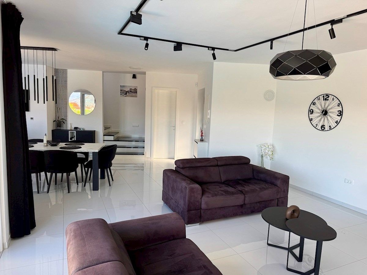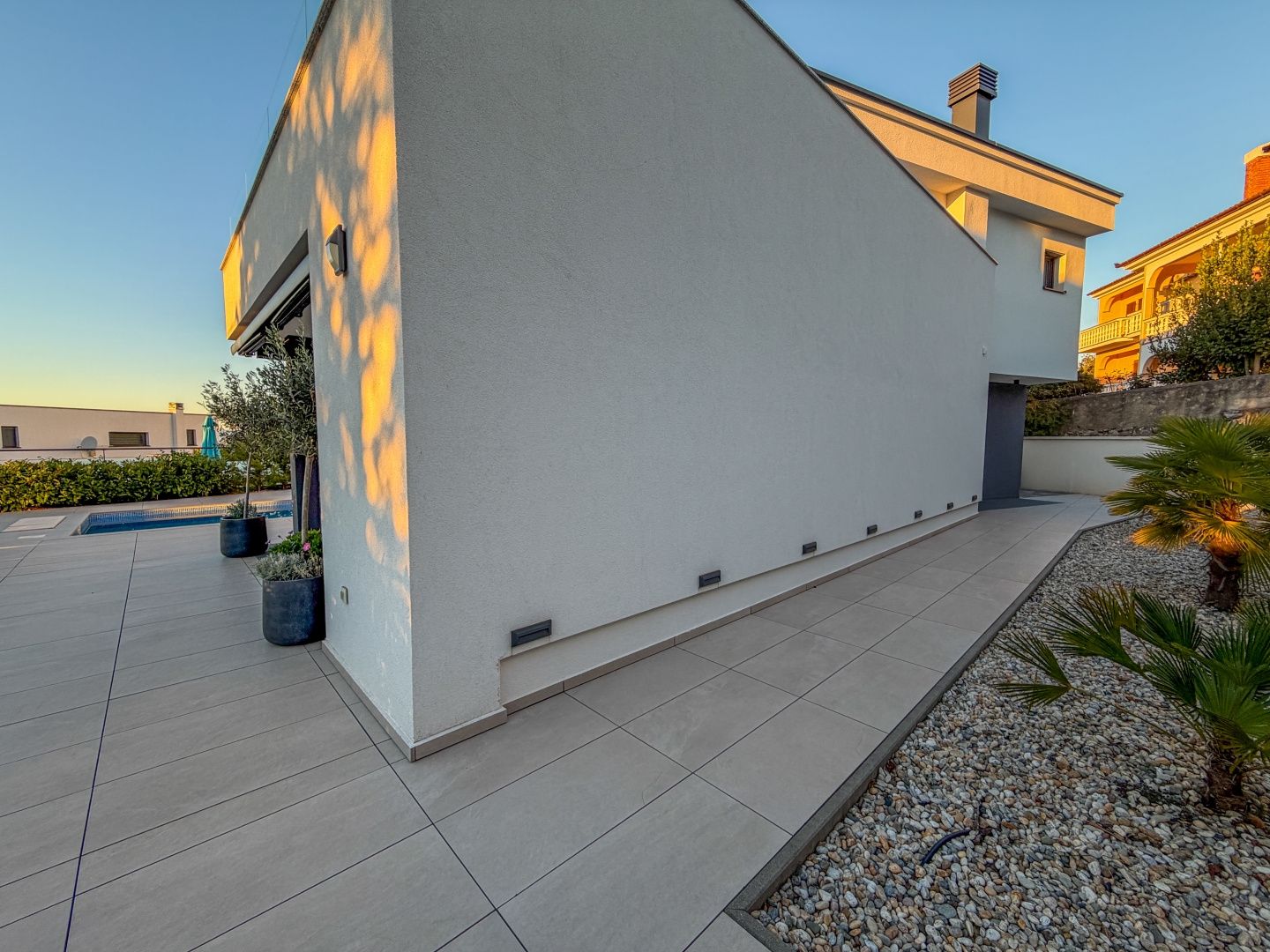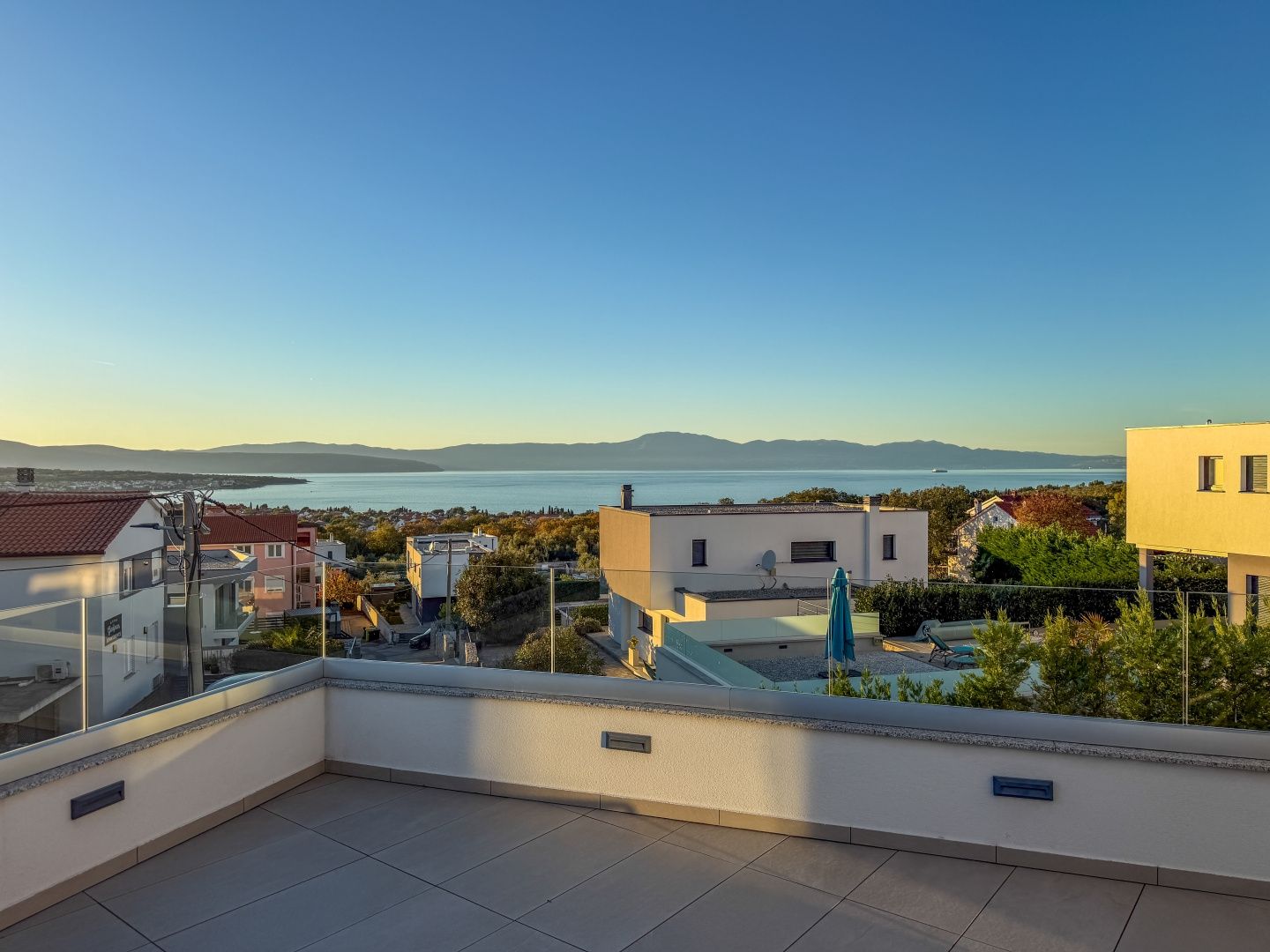 Insel KRK, Malinska – Freistehende Villa mit Pool, Meerblick und absoluter Privatsphäre In einer ruhigen, geschützten Gegend nahe Malinska, innerhalb einer eleganten Anlage mit luxuriösen Häusern, befindet sich diese außergewöhnliche freistehende Villa – modern, geräumig und mit mediterranem Charme. Das Haus liegt auf einem 600 m² großen, eigenen Garten, der so gestaltet wurde, dass jede Terrasse, jedes Zimmer und jeder Ausblick seinen eigenen Charakter hat – und im Hintergrund stets das sanfte Rauschen des Meeres. Der Außenbereich besticht durch seine schlichte Eleganz und Harmonie: ein Swimmingpool mit großzügiger Liegewiese, ein einladender Bereich zum Verweilen und eine überdachte Terrasse mit Meerblick – alles, was man für einen entspannten Start in den Tag braucht, mit Morgenkaffee und Vogelgezwitscher. Auch der Innenbereich setzt sich in diesem Stil fort: im Erdgeschoss befindet sich ein heller, offener Wohnbereich mit Küche und Essbereich sowie ein Schlafzimmer mit eigenem WC. Im Obergeschoss erwarten Sie drei komfortable Schlafzimmer, zwei Badezimmer und eine nach Süden ausgerichtete Terrasse mit einem unvergesslichen Ausblick. Jedes Zimmer bietet Meerblick, und das Hauptschlafzimmer verfügt über eine besonders große private Terrasse – ideal für Momente der Ruhe, nach denen sich jeder manchmal sehnt. Das Haus wurde mit viel Liebe zum Detail geplant und gebaut: - Fußbodenheizung - Aluminiumfenster und -türen mit großen Schiebewänden - elektrische Rollläden und Klimaanlage in jedem Zimmer - hochwertige Keramik und ausgewählte Details sorgen für ein komfortables und langlebiges Wohnambiente. Die Villa wird möbliert und nahezu unbenutzt verkauft und ist sofort bezugsfertig – ohne dass weitere Investitionen nötig sind. Der besondere Wert dieser Immobilie liegt in ihrer Lage: ein unverbaubarer Meerblick, da in der Gegend keine Neubauten möglich sind. Das Meer und das Zentrum von Malinska sind nur wenige Autominuten entfernt, und die Straße, in der die Villa liegt, bietet Ruhe und Privatsphäre, die heutzutage selten geworden sind.