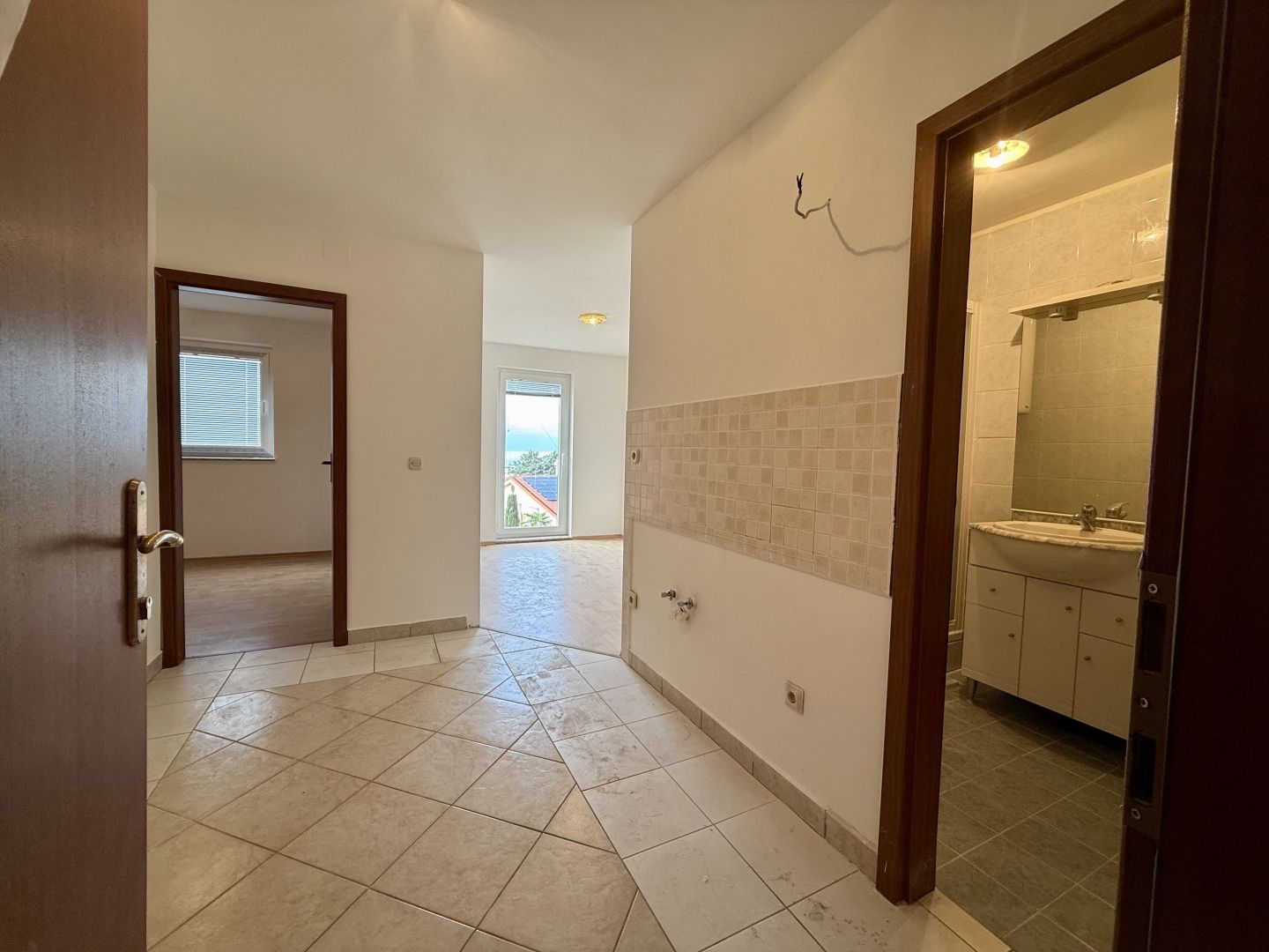 INSEL KRK, NJIVICE – 3R+DB in Meeresnähe! Wir verkaufen eine hervorragende Gelegenheit für eine Immobilie in Njivice in Meeresnähe! Die Wohnung befindet sich im Hochparterre, auf der Südseite des 1. Stocks, in einem Wohngebäude mit 12 Wohneinheiten. Das Gebäude ist gepflegt und ruhig gelegen. Die Wohnung besteht aus drei Schlafzimmern, einem Flur, einem Wohnzimmer mit Küche, einem Badezimmer und einer Terrasse. Es verfügt über einen Parkplatz, der als Pavillon und Grill genutzt wurde. Das Anwesen wurde gestrichen und mit neuen PVC-Fenstern ausgestattet. Der Rest des Anwesens ist teilweise renovierungsbedürftig. Gelegenheit und Maklerempfehlung.