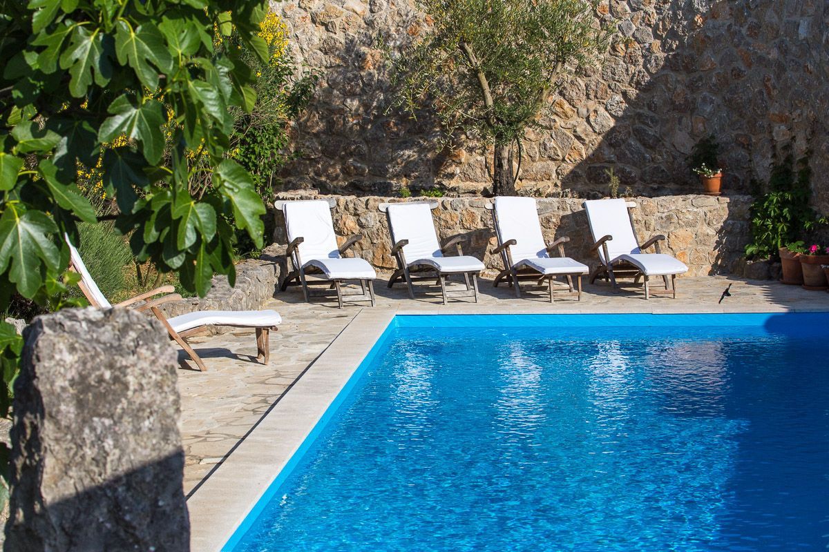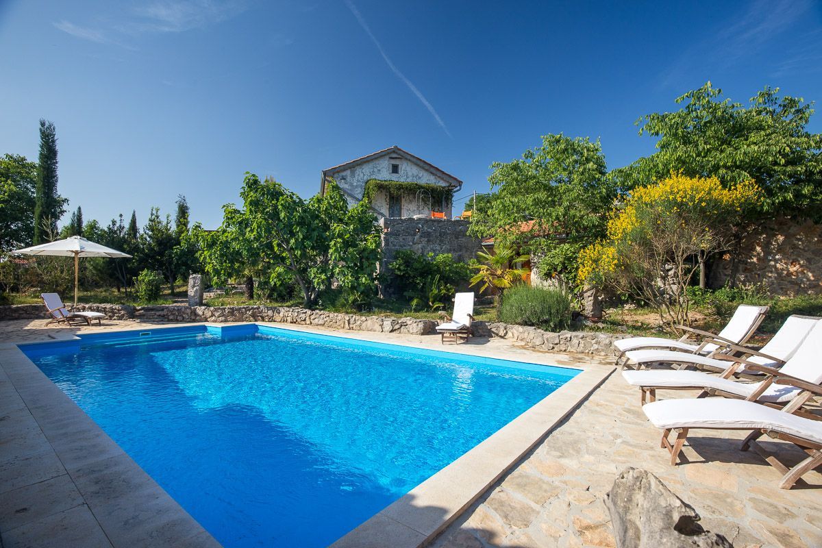 Insel KRK, Stadt KRK (Umgebung) – Eine Rarität! Anwesen mit Häusern aus einheimischem Stein, Swimmingpools und einem mediterranen Garten