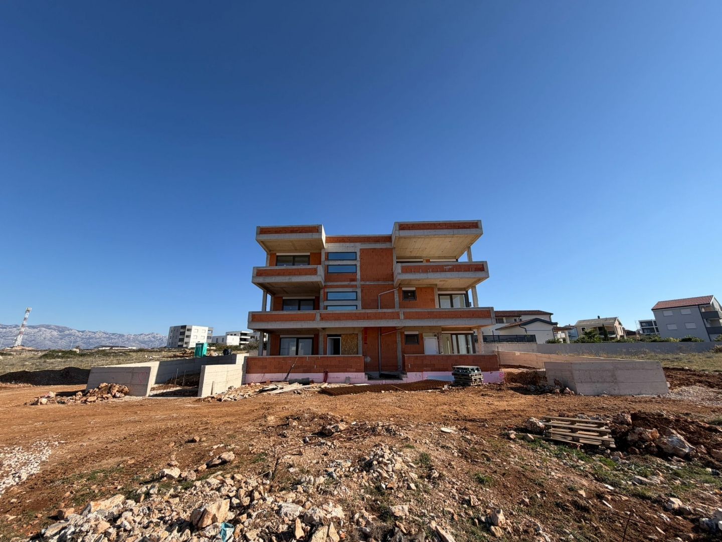 INSEL PAG, POVLJANA – Zwei-Zimmer-Wohnung mit großer Terrasse in einem modern ausgestatteten Gebäude Die Insel Pag zählt dank ihrer natürlichen Schönheit, der unberührten Küste und des angenehmen mediterranen Klimas zu den attraktivsten Reisezielen an der Adria. Bekannt für ihre Strände und historischen Stätten, erfreut sich Pag zunehmender Beliebtheit sowohl für Sommerurlaube als auch als dauerhafter Wohnsitz. Die Anbindung an das Festland über die Pag-Brücke und die Autobahn erleichtert die Anreise zusätzlich, während die Insel gleichzeitig ihr unverwechselbares, ruhiges Ambiente bewahrt. Im Herzen dieses Teils der Insel, in der Stadt Povljana, befindet sich ein neues Wohngebäude mit vier Wohnungen. Diese Zwei-Zimmer-Wohnung liegt im ersten Stock. Sie umfasst zwei Schlafzimmer, ein Badezimmer und ein Wohnzimmer mit Küche und Essbereich, das sich zu einer 16,43 m² großen, überdachten Terrasse öffnet – der perfekte Ort, um laue Abende an der Adria zu genießen. Die Nettowohnfläche der Wohnung beträgt 53,32 m², die Gesamtfläche inklusive Nebenkosten 66,84 m². Zur Wohnung gehört ein Parkplatz. Das Gebäude entspricht höchsten Baustandards und verfügt über moderne Fußbodenheizung, elektrische Rollläden, hochwertige PVC-Fenster und -Türen sowie eine Klimaanlage. Die geplante Energieeffizienzklasse A garantiert Energieeinsparungen und ganzjährig angenehmes Wohnklima. Die Lage in Povljana bietet Zugang zu allen wichtigen Einrichtungen und gleichzeitig Ruhe und Privatsphäre. Für weitere Informationen und zur Vereinbarung eines Besichtigungstermins stehe ich Ihnen gerne zur Verfügung und helfe Ihnen gerne, Ihr ideales Zuhause oder Ihre perfekte Kapitalanlage zu finden. ***