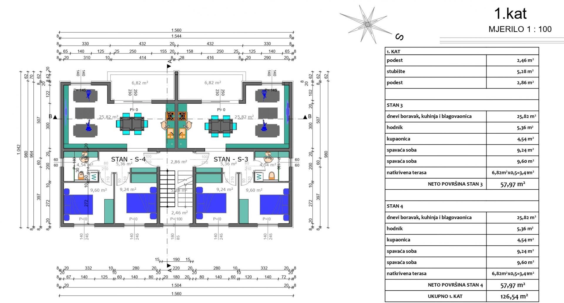 INSEL PAG, ŠIMUNI – Wohnung mit 2 Schlafzimmern + Wohnzimmer in renommierter Lage, GELEGENHEIT ZUM REDUZIERTEN PREIS. Wir verkaufen diese hervorragende Wohnung mit 2 Schlafzimmern + Wohnzimmer, gekennzeichnet mit S-3, im ersten Stock eines neuen Wohngebäudes in außergewöhnlicher und seltener Lage in zweiter Reihe zum Meer, nur 50 Meter vom Strand entfernt. Dieses hochwertige neue Gebäude eines bekannten Investors wurde für fünf Wohneinheiten im Erdgeschoss sowie im ersten und zweiten Stock konzipiert. Wohnung mit zwei Schlafzimmern und Wohnzimmer in Gebäude B, besteht aus Eingangshalle, Bad, offenem Wohnbereich mit Küche und Esszimmer mit Zugang zu einer Terrasse mit wunderschöner Aussicht auf das Meer und die Umgebung und zwei Schlafzimmern, Wohnfläche von 58 m2. Architektur und Bau: Fassade: ETICS-System mit einer Endschicht aus Silikatherstellern wie JUB, CAPAROL, BAUMIT und ähnlichen. Außenschreinerei: PVC-Tischlerei mit dreifachem IZO-Glas für überragende Energieeffizienz und Schalldämmung. Details: Aluminium-Außenfensterbänke, elektrische Aluminium-Rollläden an den Außenwänden, Moskitonetze an allen Fenstern. Sicherheit und Technik: Eingangstür: Einbruch- und schalldichte Türen. Innenausstattung: Innenschreinerei: mit verdeckten Scharnieren und Magnetschlössern. Böden: Alle Räume mit Keramikfliesen der Klasse I ausgelegt. Sanitärausstattung: Elegante Lösungen von renommierten Marken wie LAUFEN und IDEAL STANDARD, GROHE und ähnlichen. Eingebaute Spülkästen: Geberit Komfortheizung und -klimaanlage: Fußbodenheizung in den Badezimmern. Inverter-Klimaanlagen – in jedem Zimmer: Marken wie Samsung, Toshiba, Midea und ähnlichen. Geplanter Einzug: 15.6.2026