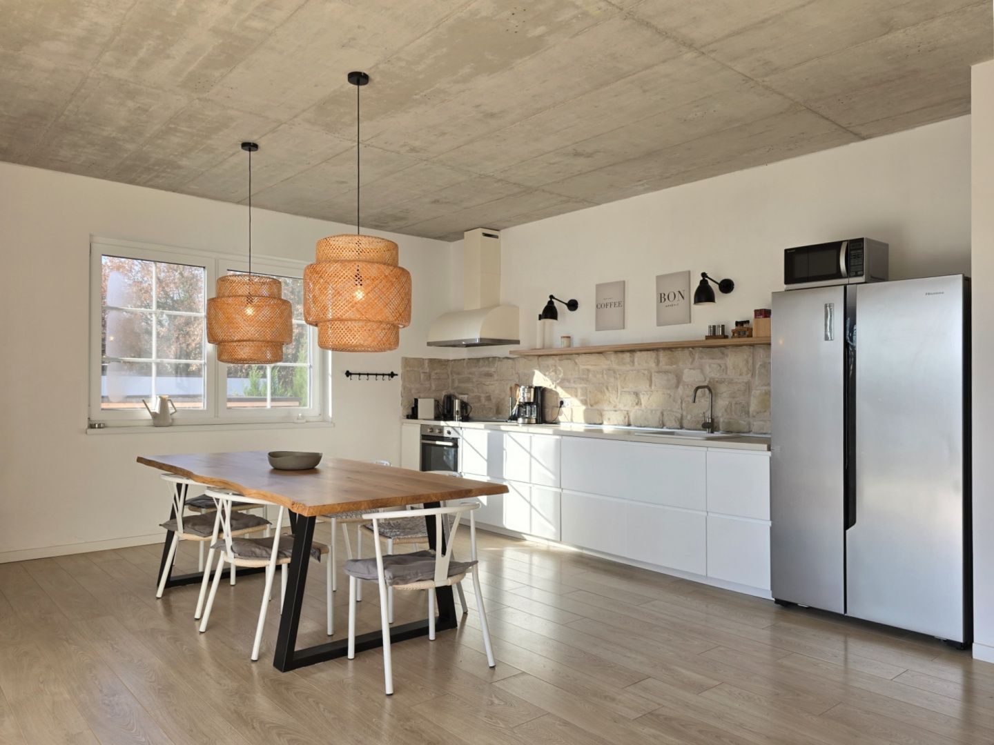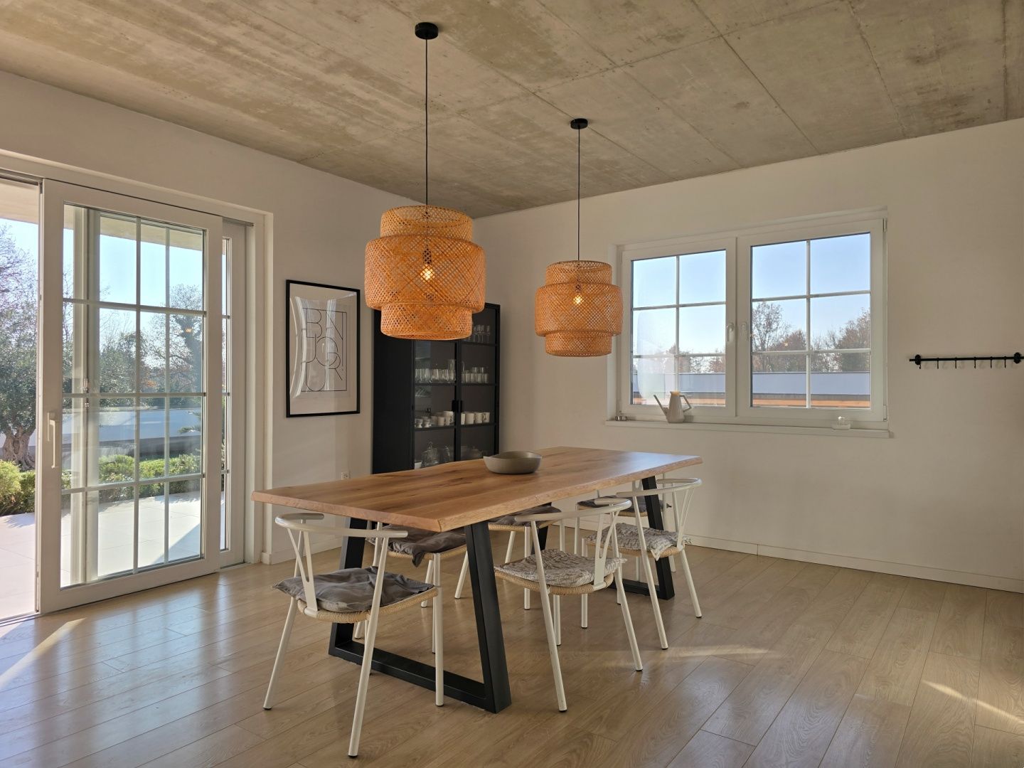 Istrien, Labin – Modernes Architekturhaus mit Pool An der Südostküste Istriens, wo grüne Hügel auf das Meer treffen und Natur und Kulturerbe sich vereinen, liegen zwei Städte ähnlicher Größe mit unterschiedlichem, aber sich ergänzendem Charakter: Labin und Rabac. Das malerische Städtchen Labin erhebt sich auf einem 320 Meter hohen Hügel, nur vier Kilometer von den weißen Kieselstränden Rabacs entfernt. Geprägt von einer reichen Geschichte und dem Bergbau, der diese Region einst formierte, ist Labin, das kurzzeitig eine unabhängige Republik war, heute eine faszinierende Stadt der Gegensätze: Alt und Neu, Geschichte und Gegenwart, Tourismus und Kunst. Unweit von Labin steht ein modernes Architekturhaus mit Pool zum Verkauf. Die Lage bietet ein authentisches Erlebnis einer kleinen istrischen Stadt, Ruhe und Erholung vom Alltagstrubel, und gleichzeitig die Nähe zum Meer und den Annehmlichkeiten der Stadt Labin. Neben der erstklassigen Lage, die höchsten Wohnkomfort bietet, zeichnet sich die Immobilie auch durch ihre hochwertige Bauweise aus, die langfristige Zufriedenheit und Lebensqualität garantiert. Das Haus fügt sich architektonisch harmonisch in die Umgebung ein und schafft eine gelungene Verbindung von Natur und modernem Design. Es handelt sich um eine Wohneinheit, deren Fläche sich über ein elegant möbliertes und bestens ausgestattetes Geschoss erstreckt. Der offene Wohnbereich vereint Küche, Esszimmer und Wohnzimmer und bietet Zugang zu einer überdachten Terrasse. Drei Schlafzimmer, zwei Badezimmer und Abstellräume runden das Angebot ab. Der Garten ist stimmungsvoll gestaltet und umzäunt. Ein beheizter Swimmingpool mit Liegewiese sorgt für ein harmonisches Gesamtbild. Die exzellente Lage und die durchdachte Raumaufteilung im Innen- und Außenbereich bieten ideale Voraussetzungen für ein komfortables Familienleben oder eine Investition in die touristische Vermietung.