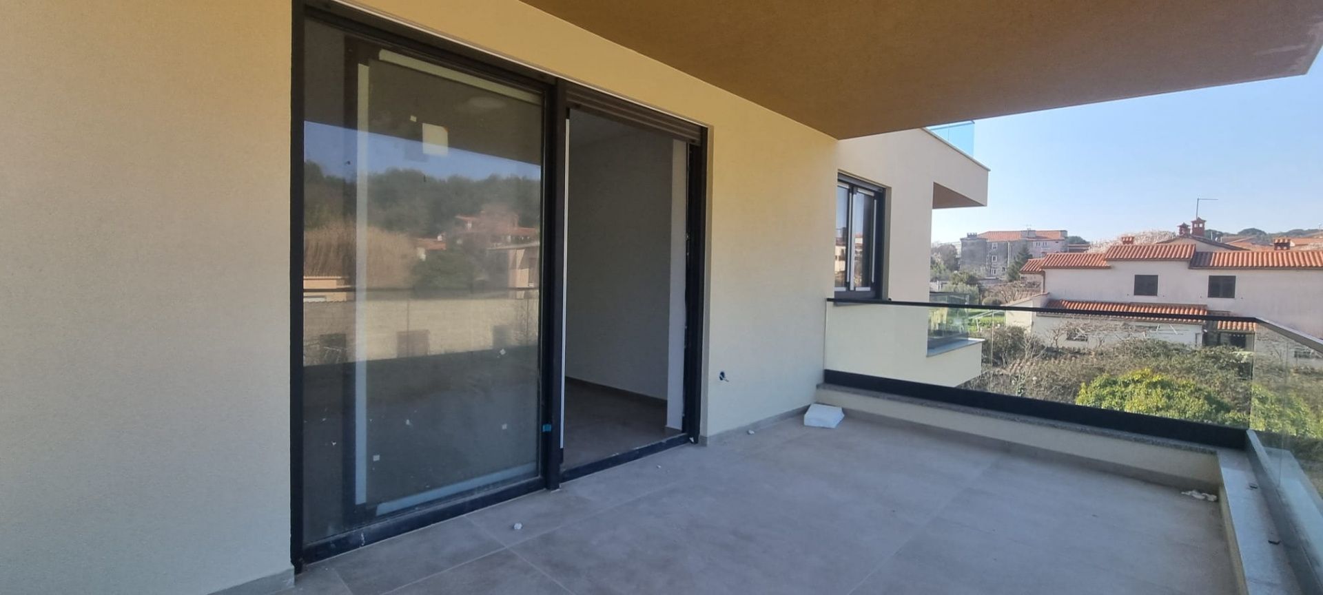 ISTRIA, PULA – Modernes Neubaugebäude in Toplage! Wir freuen uns, Ihnen ein modernes und hochwertiges Neubaugebäude in einer der begehrtesten Lagen von Pula präsentieren zu dürfen. Nur 3 Minuten vom Stadtzentrum und 5 Minuten von den wunderschönen Stränden der Umgebung entfernt, erstreckt sich dieses moderne Apartmentgebäude über vier Etagen. Die Wohnungen variieren in der Größe von 46 m² bis 136 m². Das Gebäude verfügt außerdem über zwei Garagenetagen mit ausreichend Stellplätzen für die Haustiere aller Mieter. WOHNUNGSBESCHREIBUNG: Die Wohnung befindet sich im dritten Obergeschoss und bietet eine Wohnfläche von 81,40 m². Das stilvoll gestaltete Apartment besteht aus einer geräumigen Eingangshalle, einem offenen Wohn-/Essbereich mit Küche und Zugang zu einer großen, überdachten Terrasse – dem idealen Wohnbereich. Die Glaswände zwischen Wohnbereich und Terrasse sorgen für viel Tageslicht. Im privaten Bereich der Wohnung befinden sich zwei Schlafzimmer und ein geräumiges Badezimmer. Jede Wohnung verfügt über eine elektrische Fußbodenheizung und Inverter-Klimaanlagen zur Kühlung. Die Wohnungen sind mit hochwertigen PVC-Fenstern und -Türen in Anthrazit ausgestattet. Zwei Garagenstellplätze sind im Kaufpreis enthalten. Der Käufer ist von der Grunderwerbsteuer befreit! Diese Immobilie sollten Sie sich unbedingt ansehen! Für weitere Informationen und zur Vereinbarung eines Besichtigungstermins kontaktieren Sie bitte Ihren Makler!