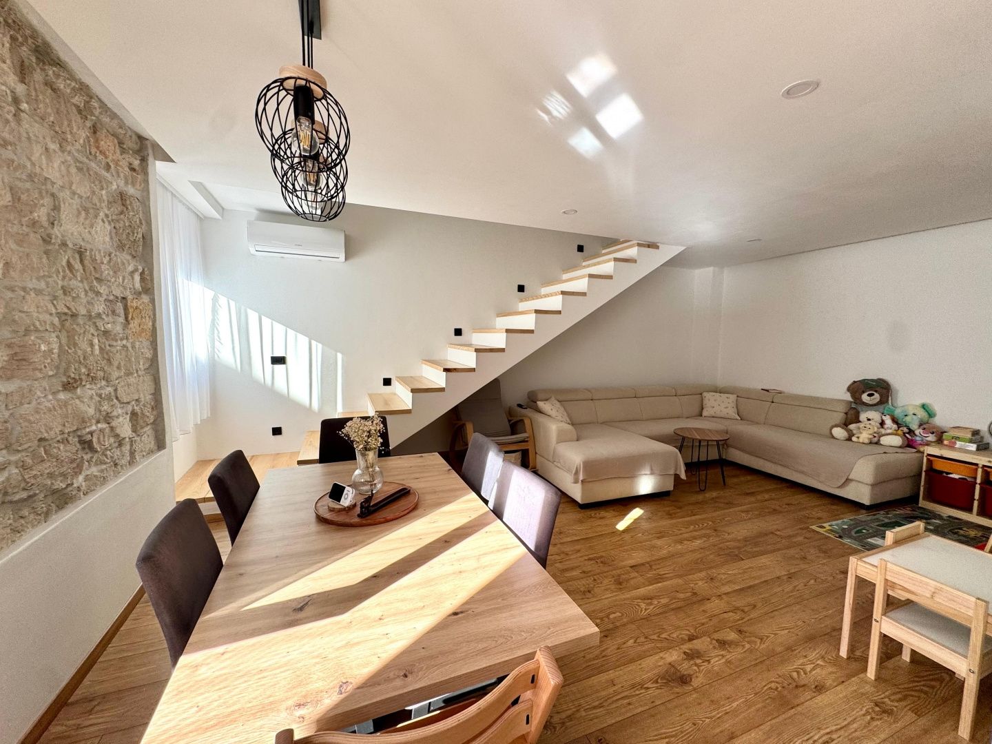 ISTRIEN, PULA – Wunderschöne 5-Zimmer-Wohnung auf zwei Etagen Wir freuen uns, Ihnen eine wunderschöne Wohnung im Herzen von Pula präsentieren zu dürfen, nur wenige Schritte von der berühmten Arena entfernt. Die Wohnung erstreckt sich über zwei Etagen und bietet eine Gesamtfläche von 115 m². Sie befindet sich in einem gepflegten, gut instand gehaltenen und renovierten Gebäude mit insgesamt drei Wohneinheiten. Im Erdgeschoss befinden sich eine Eingangshalle, ein Hauswirtschaftsraum, ein geräumiges Wohnzimmer mit Küche und Essbereich, ein Abstellraum und ein Badezimmer. Eine Innentreppe führt in den ersten Stock, wo sich vier Schlafzimmer und ein weiteres Badezimmer befinden. Die Wohnung wurde 2023 komplett renoviert. Sämtliche Installationen wurden erneuert, neue dreilagige PVC-Fenster und -Türen mit Moskitonetzen und Rollläden wurden eingebaut, was für eine hervorragende Schall- und Wärmedämmung sorgt. Die Böden sind mit modernen Keramikfliesen belegt, und für maximalen Komfort sorgen Fußbodenheizung und Klimaanlage in allen Räumen. Die Immobilie wird komplett möbliert und ausgestattet verkauft und ist sofort bezugsfertig – ohne weitere Investitionen. Die hervorragende Lage macht diese Wohnung zum idealen Zuhause für alle, die zentral wohnen möchten. Schulen, Universitäten, ein Markt, Geschäfte und alle wichtigen Einrichtungen der Stadt befinden sich in unmittelbarer Nähe.