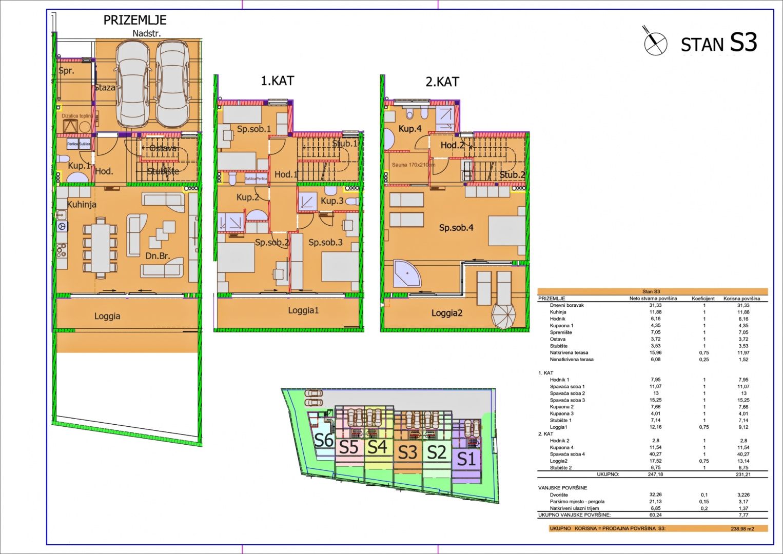 ISTRIEN, UMAG – Apartment mit Garten in einem modernen Neubau Umag ist eine attraktive istrische Stadt im äußersten Westen der kroatischen Küste mit guten Verbindungen zu anderen europäischen Ländern. Umag, ein Ort für Tourismus und Sport, birgt eine reiche Geschichte, die man beim Spaziergang durch die malerischen Straßen und entlang der Strandpromenaden spüren kann. Die alten Gebäude bilden zusammen mit den modernen Küstenabschnitten eine reizvolle Kombination. Die Stadt und ihre Umgebung verwöhnen mit einem milden Mittelmeerklima, vielen Sonnentagen und außergewöhnlich sauberem Meer. Umag besitzt eine abwechslungsreiche Küste mit verschiedenen Strandtypen: von Sand- und Kieselstränden über Stein- und Betonstrände bis hin zu Felsstränden. Im Hinterland erwarten Sie wunderschöne Hügel mit Festungen, atemberaubenden Ausblicken und einer faszinierenden Vergangenheit sowie zahlreiche Agrotourismusbetriebe mit regionalen Spezialitäten und herzlichen Gastgebern. Umag besteht aus 23 Ortschaften. In einem malerischen Dorf nahe Umag entsteht ein modernes Apartmentgebäude mit Erdgeschoss und zwei Obergeschossen, das insgesamt sechs Wohneinheiten umfasst. Für den Bau wurden langlebige und zuverlässige Materialien verwendet, die langfristige Zufriedenheit und Sicherheit garantieren. Die Raumaufteilung jeder Etage ist bis ins Detail durchdacht und bietet ein hochwertiges Raumkonzept. Zum Verkauf steht eine Wohneinheit über Erdgeschoss und zwei Obergeschosse. Das Erdgeschoss besteht aus einem offenen Wohnbereich mit Küche, Ess- und Wohnzimmer sowie Zugang zu einer überdachten Terrasse und einem großen Garten, einem Gäste-WC, einem Abstellraum und Technikräumen. Im ersten Obergeschoss befinden sich drei Schlafzimmer, zwei Badezimmer und eine Loggia, während das zweite Obergeschoss ein geräumiges Schlafzimmer mit eigenem Bad und Loggia bietet. Zur Wohnung gehören zwei überdachte Parkplätze. Dieses moderne Neubaugebäude bietet ideale Voraussetzungen für ein komfortables Familienleben und eignet sich auch hervorragend als Kapitalanlage zur touristischen Vermietung. Der angegebene Preis der Immobilie bezieht sich auf den Rohbauzustand ohne Möbel, sodass Sie die Immobilie nach Ihren Wünschen und Vorlieben einrichten können. Der Verkäufer der Immobilie ist eine juristische Person, und die Mehrwertsteuer ist im angegebenen Preis enthalten.