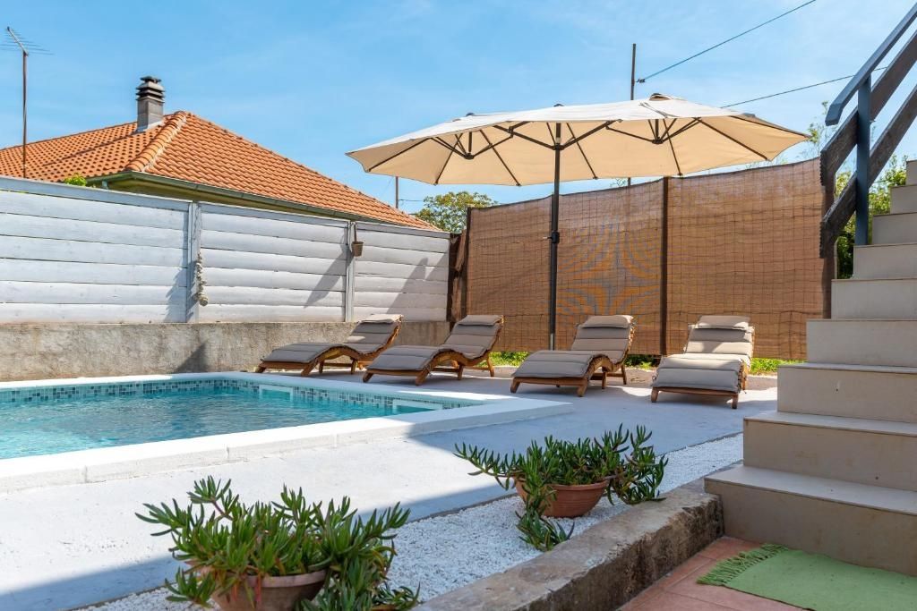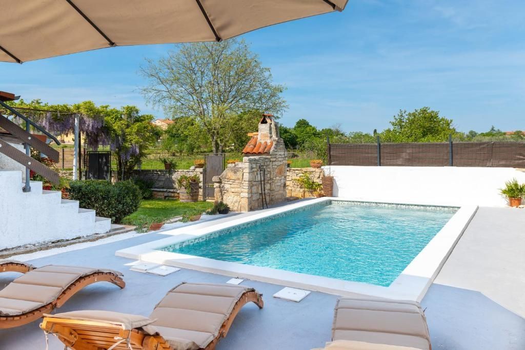 Istrien, Valtura – Haus mit zwei Wohneinheiten und Pool! Im Angebot von DUX Immobilien steht ein freistehendes Haus mit zwei Wohneinheiten und Pool zum Verkauf! Das Haus erstreckt sich über zwei Etagen mit jeweils 63 m² Wohnfläche auf einem 428 m² großen Grundstück. Es handelt sich um eine 2-Zimmer-Wohnung mit Bad pro Etage. Klimaanlagen zum Heizen und Kühlen sind vorhanden, zusätzlich steht ein Holzofen zur Verfügung. Das Haus wird möbliert oder nach Vereinbarung verkauft. Der Garten bietet einen Pool mit Liegewiese. Die Immobilie ist interessant, da sie sich sowohl zum Selbstbezug als auch zur Vermietung eignet. Für weitere Informationen kontaktieren Sie uns bitte.