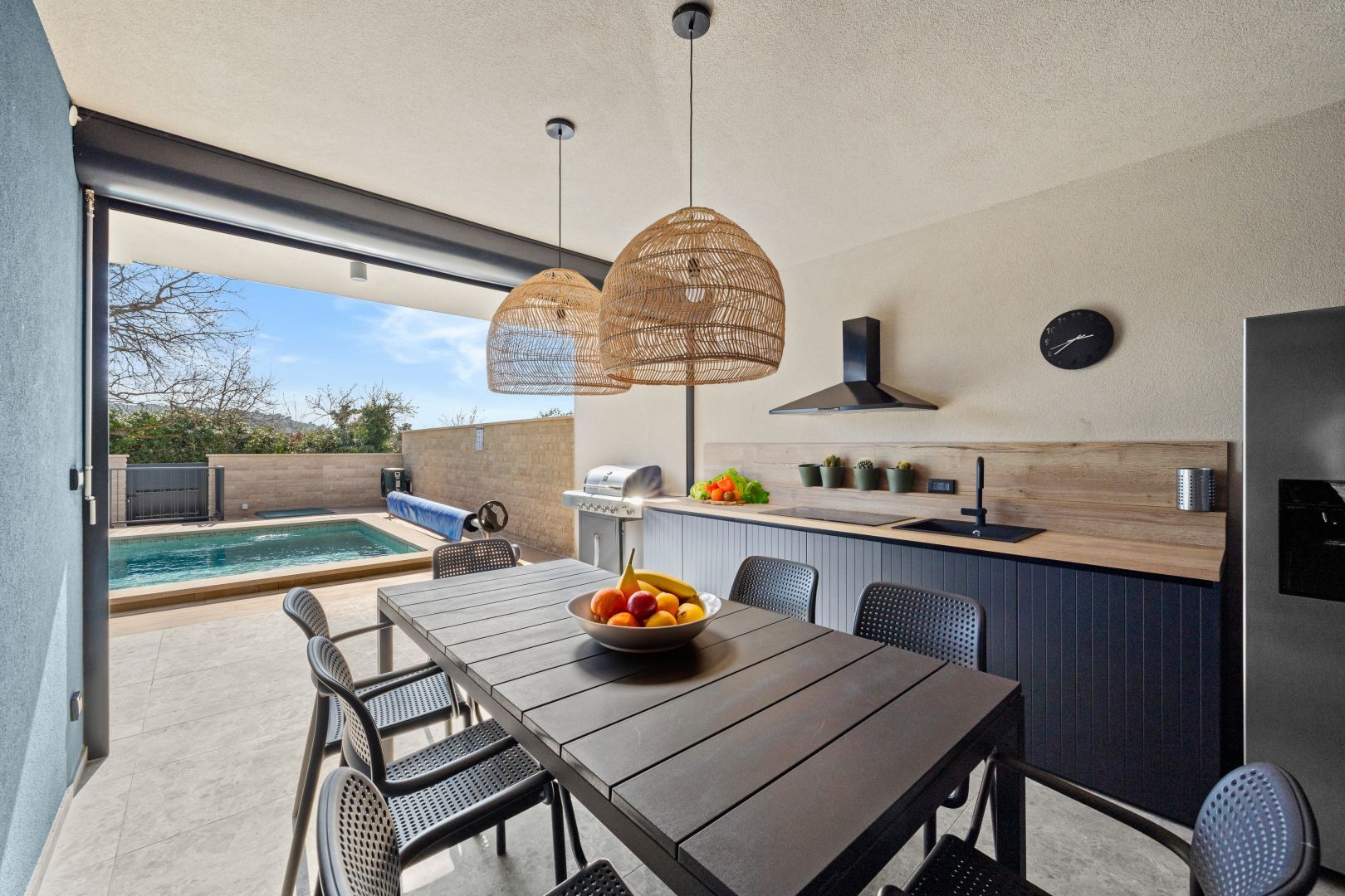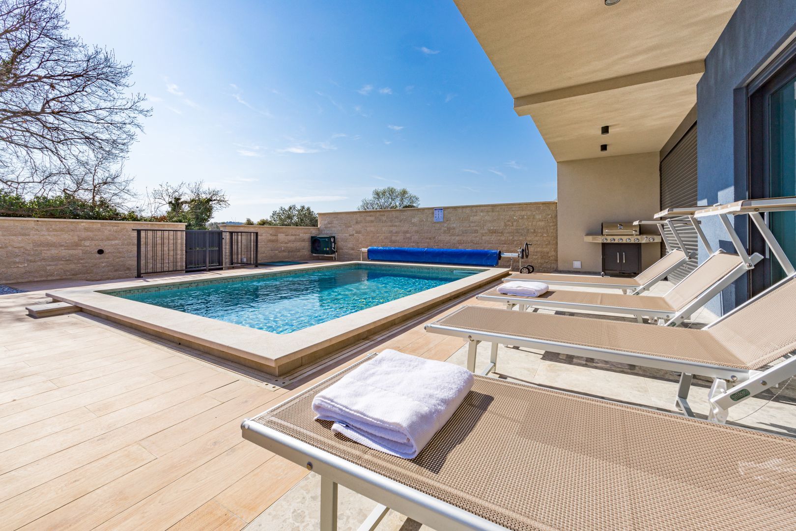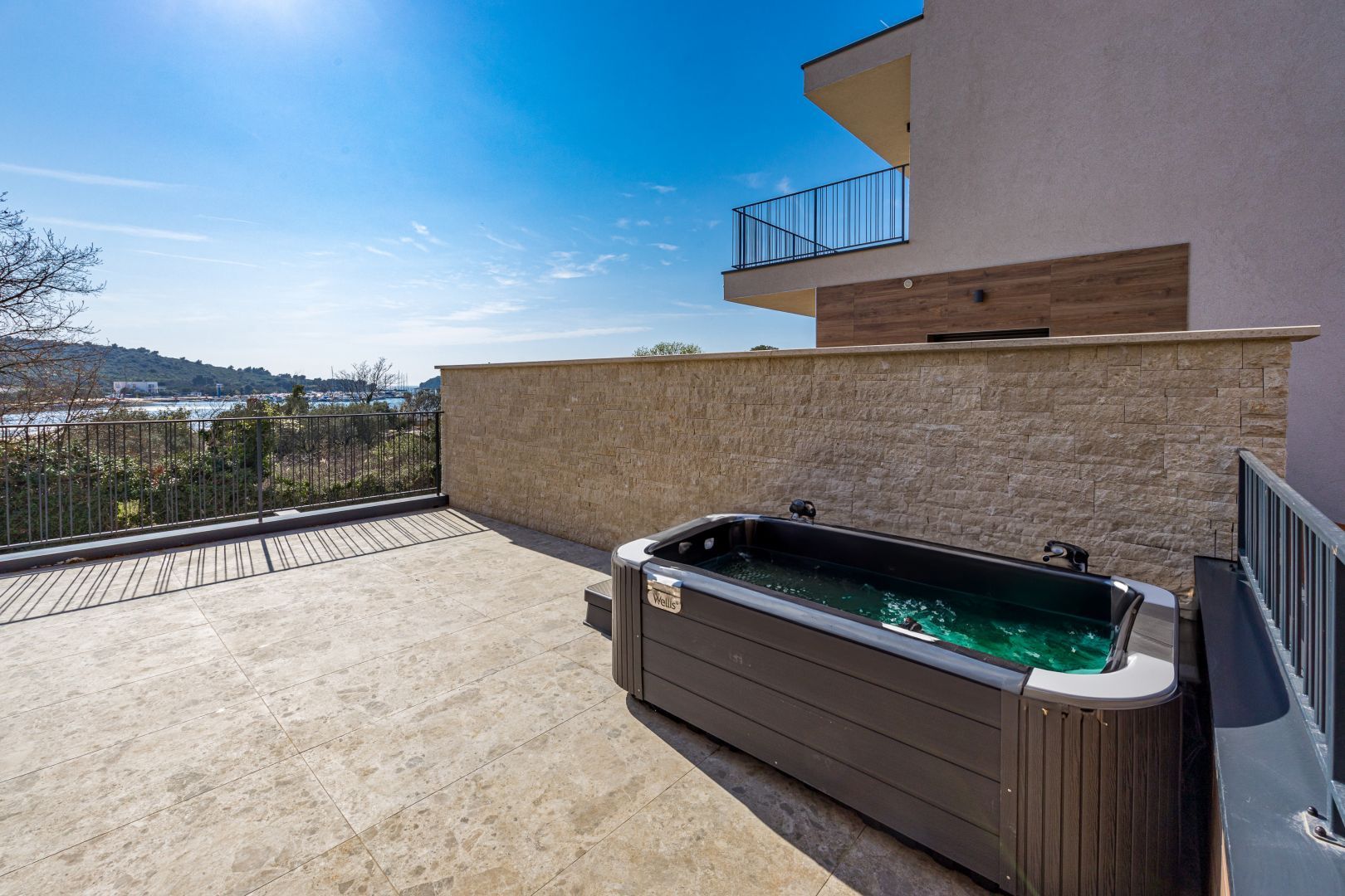 ISTRIEN, BANJOLE - Moderne Doppelhaushälfte am Meer! Im Angebot von D Immobilien haben wir die Ehre, eine moderne Doppelhaushälfte in hervorragender Lage zu präsentieren. Die außergewöhnliche Lage ist genau das, was diese Villa von anderen auf dem Markt unterscheidet, denn es kommt sehr selten vor, dass man eine Villa nur wenige Schritte vom ersten Strand entfernt findet und dennoch Privatsphäre und Ruhe genießt! Konzeptionell erstreckt sich die Villa über drei Etagen und die Raumaufteilung ist wie folgt: Im Erdgeschoss verfügen wir über zwei Schlafzimmer, eines davon mit Zugang zu einer überdachten Terrasse (14m2) am Pool, und zwei Badezimmer. Darüber hinaus bietet das Erdgeschoss auch eine Sommerküche von 41 m2, sodass Platz für geselliges Beisammensein mit Freunden und Familie vorhanden ist. Außerdem gibt es ein zusätzliches Gäste-WC, einen Technikraum und eine Waschküche. Die Raumaufteilung im Projekt dieser modernen Doppelhaushälfte ist nicht klassisch, d. h. wenn wir über eine Treppe in den ersten Stock gelangen, treffen wir auf ein offenes Wohnzimmer, eine Küche und ein Esszimmer mit Zugang zur Terrasse. Die Terrasse ist sehr geräumig und bietet einen Whirlpool sowie einen wunderschönen Blick auf das Meer. Als Teil davon gibt es im ersten Stock der Villa auch ein Badezimmer. Bei der Planung wurde der Schwerpunkt für den Großteil der Residenz auf die erste Etage gelegt, da sich dort der Wohnbereich befindet, was die Villa von den meisten anderen unterscheidet. Die letzte Etage bietet Ihnen zwei Schlafzimmer und zwei Badezimmer sowie eine Terrasse mit wunderschönem Blick auf das Meer! LAGE: - die Lage der Villa trennt Sie 100 Meter vom ersten Strand - in unmittelbarer Nähe befindet sich auch ein Yachthafen für Boote - Geschäfte, Restaurants, Strandbars befinden sich im 3 Autominuten entfernten Ortsteil - unmittelbare Nähe zum Naturpark Kamenjak – der Standort bietet Privatsphäre und eine wunderschöne grüne Umgebung. TECHNISCHE EIGENSCHAFTEN: – Sonnenkollektoren für die Warmwasserbereitung sind vorhanden – Fußbodenheizung in der gesamten Villa – 4 Klimaanlagen in den Schlafzimmern + zusätzliche Klimaanlage für das Wohnzimmer – beheizter Pool – Der Die Villa wird komplett möbliert verkauft – Elektrozaun mit Fernbedienung – das Haus ist an die Kanalisation angeschlossen. Der Innenhof der Villa bietet Platz für Ihre Haustiere sowie den bereits erwähnten beheizten Pool mit Thermoabdeckung. Der Verkäufer ist eine juristische Person. Für alle weiteren Details und einen Rundgang durch diese schöne Doppelhaushälfte kontaktieren Sie uns bitte.