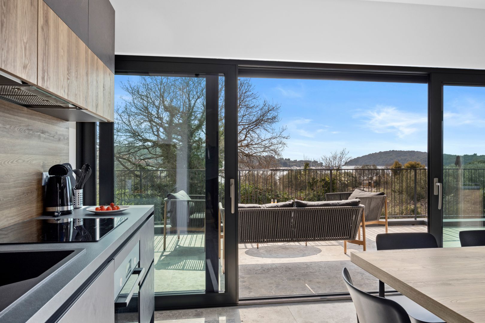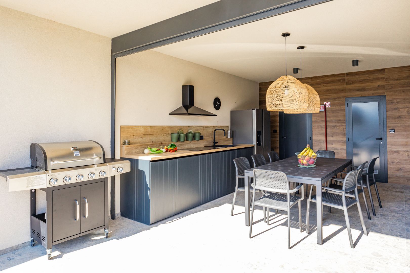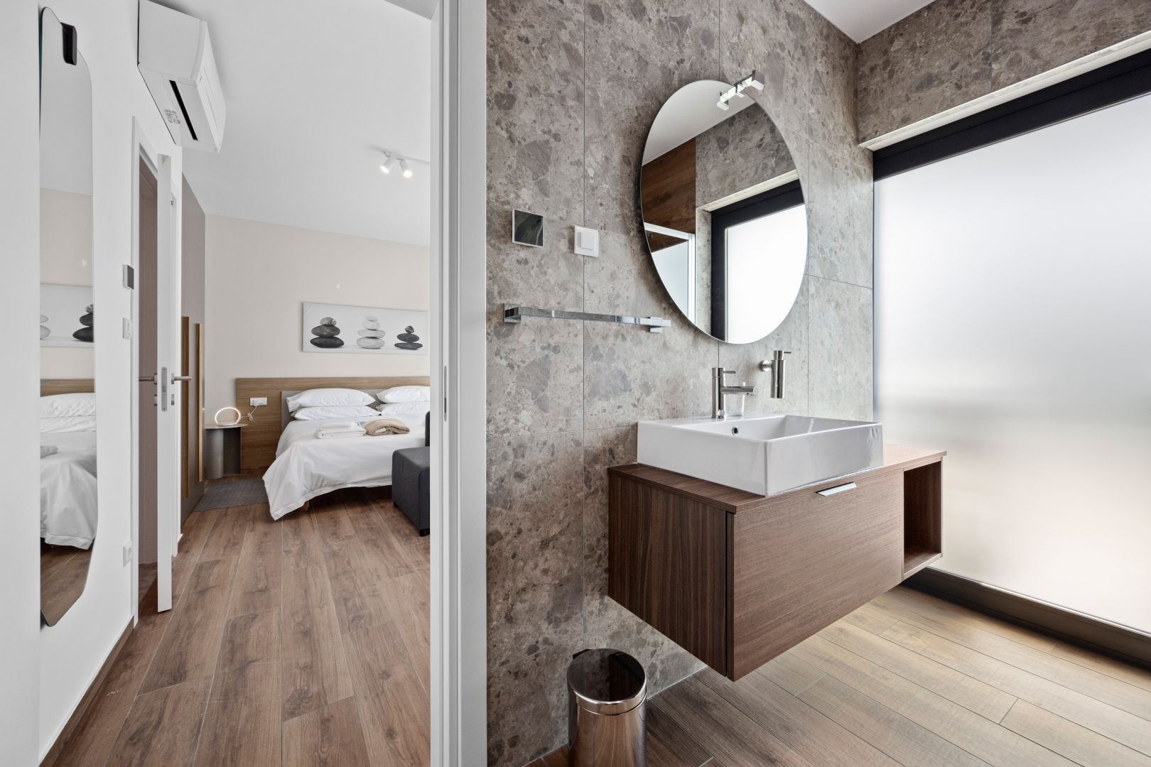 ISTRIEN, BANJOLE - Moderne Doppelhaushälfte am Meer! Im Angebot von D Immobilien haben wir die Ehre, eine moderne Doppelhaushälfte in hervorragender Lage zu präsentieren. Die außergewöhnliche Lage ist genau das, was diese Villa von anderen auf dem Markt unterscheidet, denn es kommt sehr selten vor, dass man eine Villa nur wenige Schritte vom ersten Strand entfernt findet und dennoch Privatsphäre und Ruhe genießt! Konzeptionell erstreckt sich die Villa über drei Etagen und die Raumaufteilung ist wie folgt: Im Erdgeschoss verfügen wir über zwei Schlafzimmer, eines davon mit Zugang zu einer überdachten Terrasse (14m2) am Pool, und zwei Badezimmer. Darüber hinaus bietet das Erdgeschoss auch eine Sommerküche von 41 m2, sodass Platz für geselliges Beisammensein mit Freunden und Familie vorhanden ist. Außerdem gibt es ein zusätzliches Gäste-WC, einen Technikraum und eine Waschküche. Die Raumaufteilung im Projekt dieser modernen Doppelhaushälfte ist nicht klassisch, d. h. wenn wir über eine Treppe in den ersten Stock gelangen, treffen wir auf ein offenes Wohnzimmer, eine Küche und ein Esszimmer mit Zugang zur Terrasse. Die Terrasse ist sehr geräumig und bietet einen Whirlpool sowie einen wunderschönen Blick auf das Meer. Als Teil davon gibt es im ersten Stock der Villa auch ein Badezimmer. Bei der Planung wurde der Schwerpunkt für den Großteil der Residenz auf die erste Etage gelegt, da sich dort der Wohnbereich befindet, was die Villa von den meisten anderen unterscheidet. Die letzte Etage bietet Ihnen zwei Schlafzimmer und zwei Badezimmer sowie eine Terrasse mit wunderschönem Blick auf das Meer! LAGE: - die Lage der Villa trennt Sie 100 Meter vom ersten Strand - in unmittelbarer Nähe befindet sich auch ein Yachthafen für Boote - Geschäfte, Restaurants, Strandbars befinden sich im 3 Autominuten entfernten Ortsteil - unmittelbare Nähe zum Naturpark Kamenjak – der Standort bietet Privatsphäre und eine wunderschöne grüne Umgebung. TECHNISCHE EIGENSCHAFTEN: – Sonnenkollektoren für die Warmwasserbereitung sind vorhanden – Fußbodenheizung in der gesamten Villa – 4 Klimaanlagen in den Schlafzimmern + zusätzliche Klimaanlage für das Wohnzimmer – beheizter Pool – Der Die Villa wird komplett möbliert verkauft – Elektrozaun mit Fernbedienung – das Haus ist an die Kanalisation angeschlossen. Der Innenhof der Villa bietet Platz für Ihre Haustiere sowie den bereits erwähnten beheizten Pool mit Thermoabdeckung. Der Verkäufer ist eine juristische Person. Für alle weiteren Details und einen Rundgang durch diese schöne Doppelhaushälfte kontaktieren Sie uns bitte.