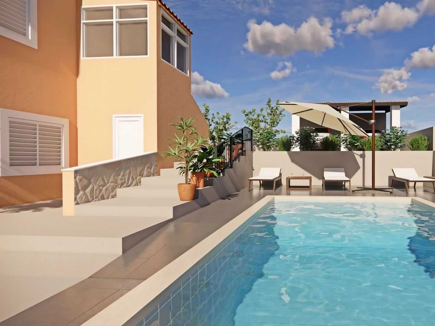 ISTRIEN, BARBAN - Haus mit Swimmingpool Barban ist eine kleine malerische mittelalterliche Siedlung vom Typ Akropolis im südlichen Teil Ostistriens, die sich über dem Tal des Flusses Raša befindet. Gut erhaltene architektonische Bauten aus Barock und Gotik, Fresken und glagolitische Inschriften, Kirchen, Paläste und Stadtmauern, das ritterliche Ringrennen, das traditionelle Weinfest und das Feigenfest machen Barban äußerst attraktiv. Die Gemeinde Barban, die Zugang zum Meer in der Raško-Bucht hat, umfasst eine Fläche von 100 km². Außer Barban gibt es noch 31 weitere Siedlungen im wunderschönen Grün von Barbanština. In einer der Siedlungen der Gemeinde Barban steht ein Haus mit Swimmingpool zum Verkauf. Das elegant renovierte Haus besteht aus einem Untergeschoss und einem Obergeschoss. Im Untergeschoss befindet sich ein Studio-Apartment von 50 m² mit Zugang zu einer überdachten Veranda, und der Grundriss wird durch einen Abstellraum ergänzt. Das Erdgeschoss besteht aus einer Eingangshalle, einem Wohnbereich, der Wohnzimmer, Esszimmer und Küche vereint, zwei Schlafzimmern und einem Badezimmer. Der Hof ist komplett eingezäunt und bietet Privatsphäre und Ruhe. Es umfasst einen Swimmingpool mit Sonnendeck und einen überdachten Parkplatz für zwei Autos. Eine perfekte Gelegenheit für ein friedliches Familienleben sowie eine Investition zum Zweck der touristischen Vermietung.