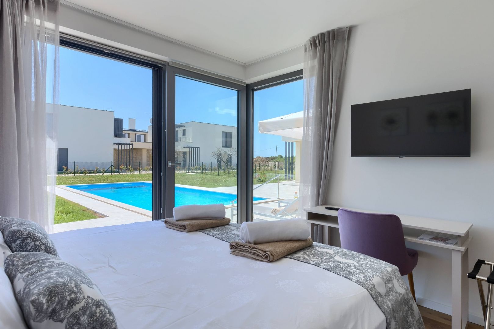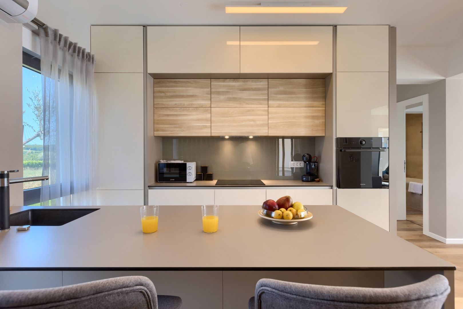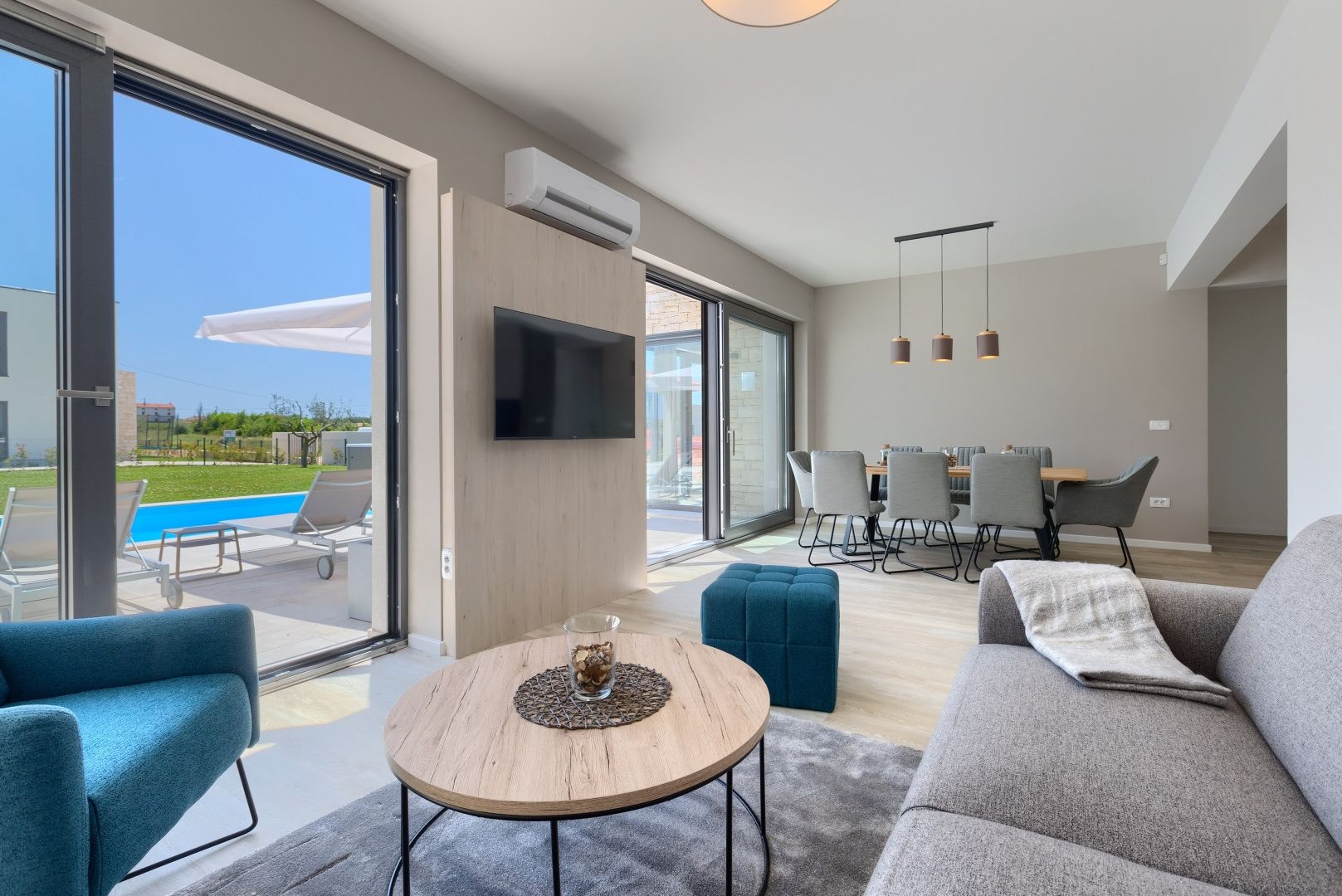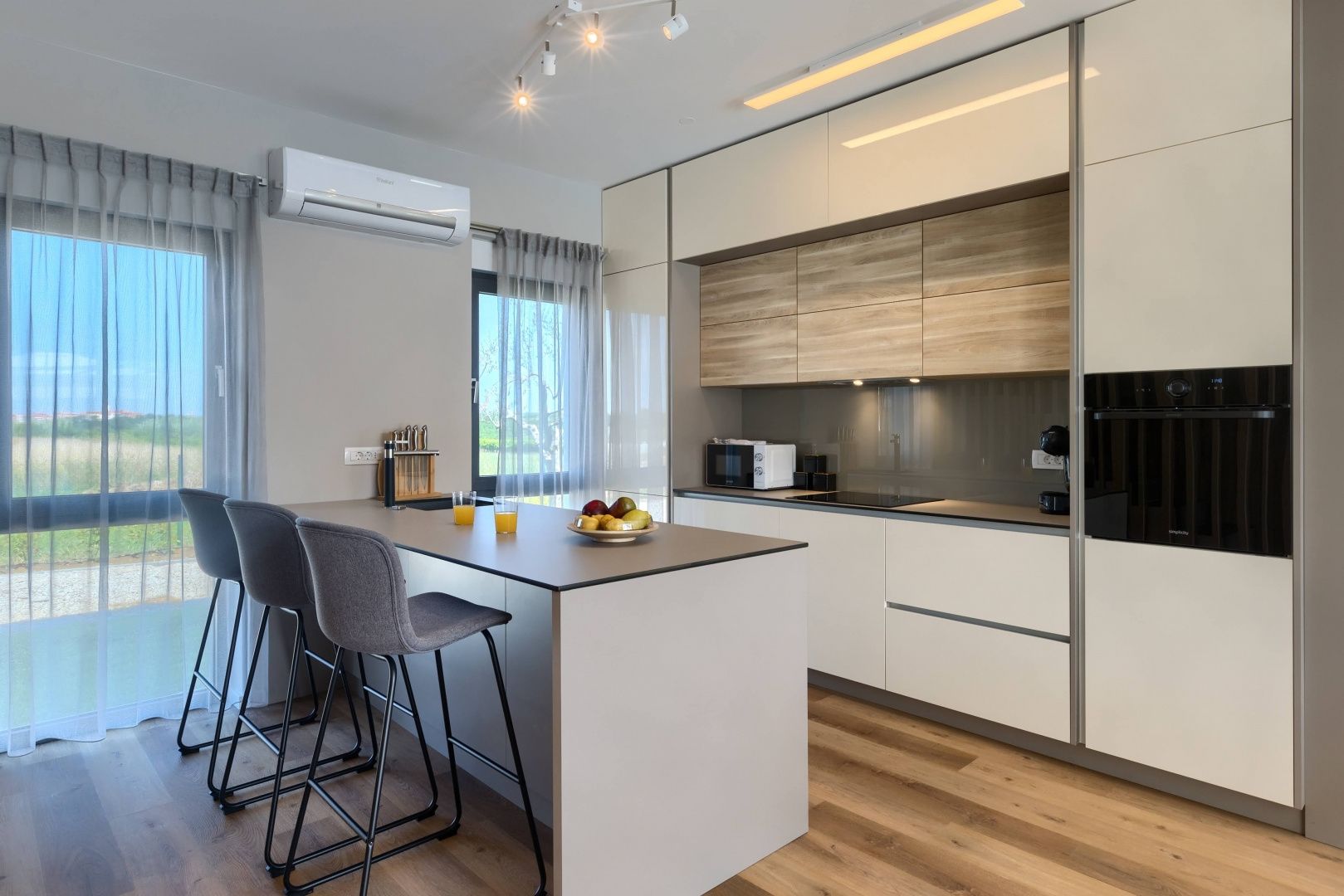 ISTRIEN, BRTONIGLA – Zwei luxuriöse Villen mit Pools in ruhiger Lage Brtonigla ist ein malerisches istrisches Städtchen im grünen Hinterland Westistriens, bekannt für seine erstklassigen Weine, Olivenöle und unberührte Natur. Die Kombination aus traditionellem istrischem Charme und hervorragender Verkehrsanbindung an das Meer, Novigrad, Umag und andere istrische Städte macht Brtonigla zu einem äußerst begehrten Wohnort, ideal für Urlaub und Immobilieninvestitionen. In einem ruhigen, naturnahen Dorf liegt dieses einzigartige Anwesen, bestehend aus zwei separaten Luxusvillen mit 264 m² bzw. 274 m² Wohnfläche. Beide Villen wurden mit Fokus auf Privatsphäre, Komfort und hohe Qualität gestaltet. Jede Villa erstreckt sich über zwei Etagen und bietet ein geräumiges und modern eingerichtetes Interieur. Das Erdgeschoss verfügt über eine Eingangshalle, ein großzügiges, offenes Wohnzimmer mit angrenzender, modern ausgestatteter Küche und Essbereich, einen Abstellraum, einen Technikraum, ein Gäste-WC mit Waschküche sowie ein Schlafzimmer mit eigenem Bad und direktem Zugang zur Terrasse und zum Pool. Im Obergeschoss befinden sich drei Schlafzimmer, jeweils mit eigenem Bad und Zugang zu einer privaten Terrasse. Beide Villen sind mit moderner Technik ausgestattet – Solaranlage, Fußbodenheizung, Klimaanlage in allen Räumen und einer kompletten Infrastruktur für energieeffiziente und wirtschaftliche Nutzung. Jede Villa liegt in einem weitläufigen und liebevoll gestalteten Garten. Der Außenbereich jeder Villa umfasst einen großen, beheizten Swimmingpool mit 40 m² Strandbereich, einen Whirlpool, eine Sonnenterrasse, einen Loungebereich und eine überdachte Sommerküche mit Grill – ideal zum geselligen Beisammensein und Entspannen im Freien. Diese Immobilie stellt eine äußerst seltene Gelegenheit auf dem Markt dar, da sie eine erstklassige Lage, luxuriöse Bauweise, einen funktionalen Grundriss und ein nachweisliches Investitionspotenzial vereint. Das Objekt ist bereits erfolgreich in der Ferienvermietung tätig und verfügt über hervorragende Bewertungen sowie ein etabliertes Geschäft, was dem zukünftigen Eigentümer eine sofortige Rendite ermöglicht. Ob Sie eine sichere Kapitalanlage, ein luxuriöses Privatgrundstück oder eine Kombination aus Eigennutzung und Ferienvermietung suchen – diese Immobilie im Herzen Istriens bietet all das und noch mehr.