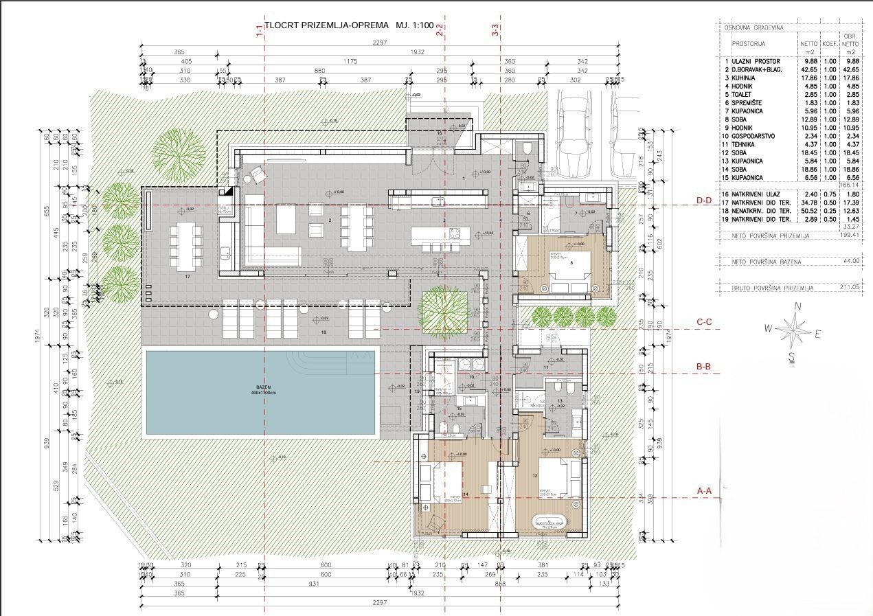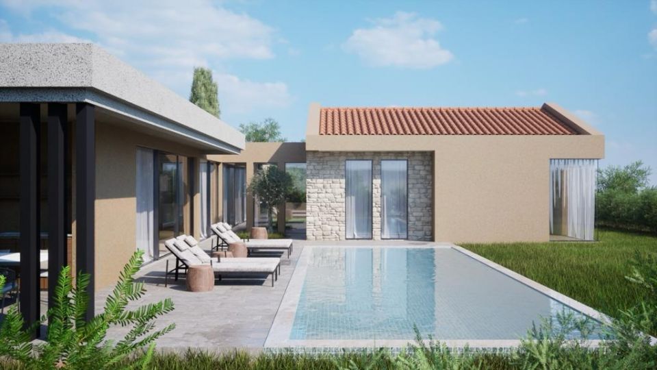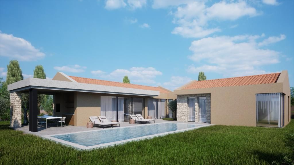 ISTRIEN, BUJE – Luxuriöse, moderne Villa mit Meerblick in einer exklusiven Wohnanlage Buje ist ein malerisches, auf einem Hügel gelegenes Städtchen in Istrien, bekannt für sein authentisches mediterranes Flair, seine exzellente Gastronomie und seine Weinberge. Gleichzeitig liegt es in unmittelbarer Nähe zum Meer sowie zu Slowenien und Italien. Ein idealer Ort für ein ruhiges Leben oder als Kapitalanlage in der Ferienvermietung. In einer neuen, ruhigen und exklusiven Wohnanlage befindet sich diese luxuriöse Villa in erstklassiger Bauweise. Sie bietet die perfekte Kombination aus Privatsphäre, Komfort, modernem Design und einem atemberaubenden Panoramablick bis hin zum Meer. Die gesamte Anlage ist terrassenförmig angelegt, wodurch alle Villen einen unverbaubaren Meerblick und ein hohes Maß an Privatsphäre bieten. Die Villa verfügt über eine Wohnfläche von 211,05 m² und besticht durch ihre funktionale und luftige Raumgestaltung. Das Haus besteht aus einer Eingangshalle, einem geräumigen Wohnzimmer mit angrenzendem Esszimmer und Küche, zwei Fluren, einem Gäste-WC, einem Abstellraum, Hauswirtschafts- und Technikräumen sowie drei Schlafzimmern, jeweils mit eigenem Bad, was maximalen Komfort und Privatsphäre gewährleistet. Zusätzlicher Mehrwert bieten der überdachte Eingang und drei überdachte Terrassen, die sich ideal für ganzjähriges Wohnen im Freien eignen. Das Haus ist in außergewöhnlich hoher Bauqualität errichtet. Das gesamte Haus verfügt über Fußbodenheizung. Der angegebene Preis bezieht sich auf einen sehr weit fortgeschrittenen Bauabschnitt. Die Fassade ist fertiggestellt, die Außenanlagen sind angelegt, alle Installationen sind installiert und alle Bauphasen bis zur Fliesenverlegung sind abgeschlossen. Für ein vollständig fertiggestelltes Haus müssen noch Boden- und Wandbeläge (Fliesen), Beleuchtungskörper, Steckdosen und Schalter sowie die abschließende Installation der Haustechnik (Wärmepumpe und Pooltechnik) vorgenommen werden. Es besteht die Möglichkeit, eine Vereinbarung über die vollständige Fertigstellung aller Bauphasen nach Wunsch des Käufers zu treffen. Die Grundstücksfläche beträgt 1.044 m². Der Garten wurde sorgfältig gestaltet und umfasst einen 44 m² großen Swimmingpool mit Strandbereich, Grünflächen und zwei Parkplätze. Der Bereich bietet absolute Privatsphäre und ist ideal zum Entspannen, geselligen Beisammensein und Genießen des istrischen Klimas. Ein weiterer Vorteil: Das angrenzende Unternehmen steht ebenfalls zum Verkauf und kann von einer Privatperson erworben werden. Auch die benachbarten Villen können separat erworben werden. Diese Villa bietet eine hervorragende Gelegenheit, eine Luxusimmobilie in einer der begehrtesten Regionen Istriens zu erwerben – ob für den Eigenbedarf, als Ferienimmobilie oder als Kapitalanlage mit hohem Potenzial für die touristische Vermietung. Die ruhige Lage, die hochwertige Bauweise, das großzügige Grundstück und die Möglichkeit zur individuellen Gestaltung der Ausstattung machen dieses Angebot selten und äußerst wertvoll.
