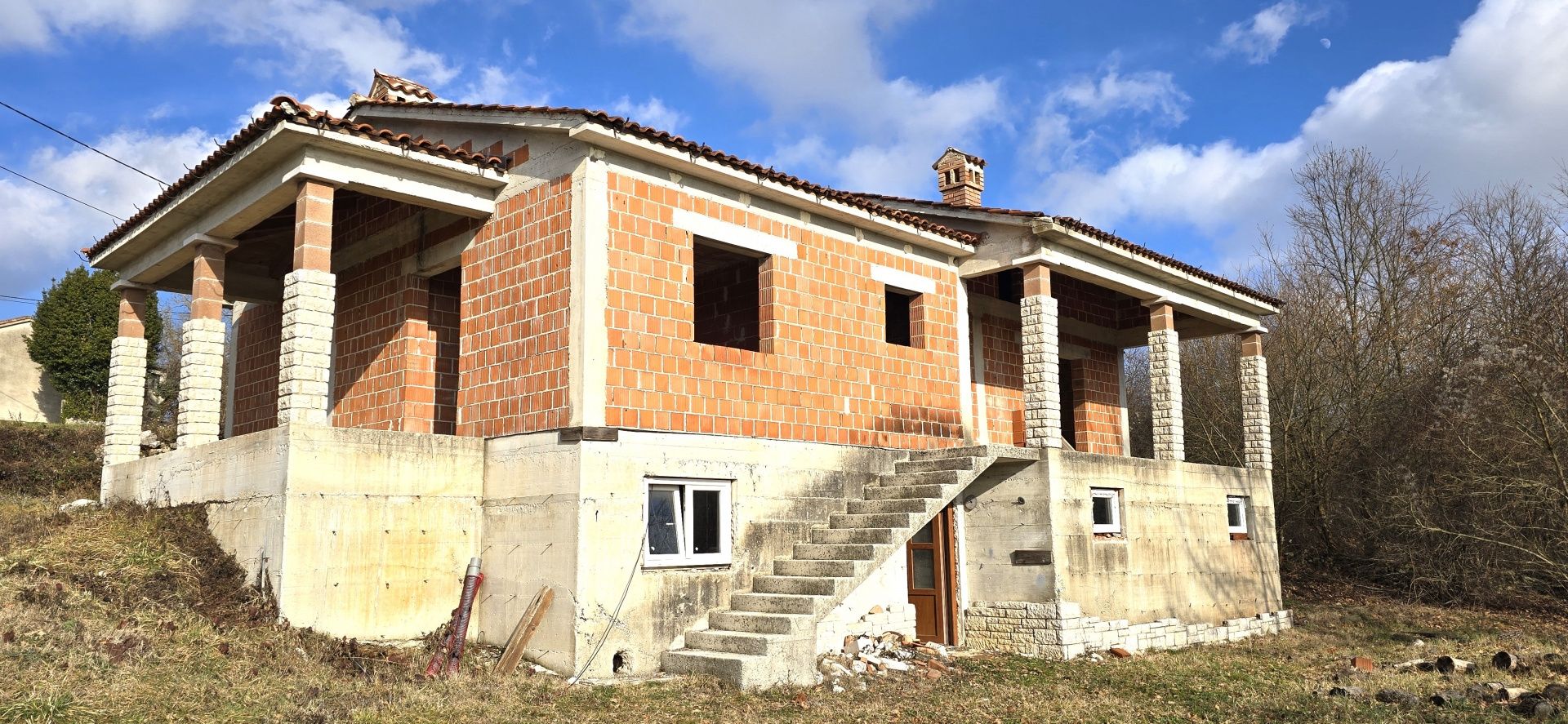 ISTRIEN, GRAČIŠĆE – Exklusive Privatsphäre, Ruhe und Weitblick – Haus mit großem Garten Gračišće ist eine charmante istrische Stadt mit reicher Geschichte, bekannt für ihren ruhigen Lebensstil, ihre authentische Architektur und die naturnahe Umgebung, die einen idealen Rückzugsort vom Alltag bietet und gleichzeitig gute Verbindungen zum restlichen Istrien ermöglicht. In der Nähe der Stadt steht ein Haus mit einer Wohnfläche von 203 m² zum Verkauf. Das hohe, eingeschossige Haus befindet sich auf einem außergewöhnlich großzügigen Grundstück und ist ideal für alle, die Ruhe, Privatsphäre und ausreichend Platz für ein komfortables Leben suchen. Das Haus erstreckt sich über Untergeschoss und Erdgeschoss. Im Erdgeschoss befindet sich eine geräumige, noch nicht fertiggestellte Wohnung im modernen Open-Space-Stil. Küche, Esszimmer und Wohnzimmer bilden eine Einheit mit Zugang zur Terrasse. Im Untergeschoss befinden sich drei Schlafzimmer, von denen zwei Zugang zu einem großen Balkon haben, drei Badezimmer, ein großer Abstellraum und ein separater Hauswirtschaftsraum. Das Untergeschoss ist bereits teilweise ausgebaut und bietet mit einem eingebauten Kamin einen großzügigen Aufenthaltsbereich. Mit geringem Aufwand lässt sich eine kleinere Küche einbauen. Im Untergeschoss befinden sich eine Toilette, ein Raum für einen Weinkeller sowie zwei weitere Räume, die sich nach Ihren Wünschen als Wellnessbereich, Fitnessraum oder Spielzimmer gestalten lassen. Das Untergeschoss ist technisch komplett verputzt, mit Betonwänden und installierten Installationen. Im Erdgeschoss sind die Installationen an einem zentralen Punkt zusammengeführt, was eine einfache Fertigstellung nach Ihren individuellen Bedürfnissen ermöglicht. Eine Klärgrube ist bereits installiert, Strom- und Wasseranschlüsse sind beantragt und werden derzeit angeschlossen. Das 1442 m² große Grundstück liegt vollständig innerhalb der Bauzone. Dies bietet zahlreiche Möglichkeiten für zusätzliche Einrichtungen, und es liegt bereits eine gültige Baugenehmigung für den Bau eines Swimmingpools vor. Das Grundstück ist das letzte in der Bauzone, sodass nicht vor dem Haus gebaut werden darf. Dies garantiert absolute Privatsphäre und einen stets freien Blick, der ein Gefühl von Weite und Freiheit vermittelt. Dieses Haus bietet eine seltene Kombination aus Privatsphäre, Ruhe, freiem Ausblick und großzügigem Wohnraum. Es ist ideal für Familien, aber auch als Kapitalanlage geeignet und bietet zahlreiche Gestaltungsmöglichkeiten nach Ihren Wünschen.