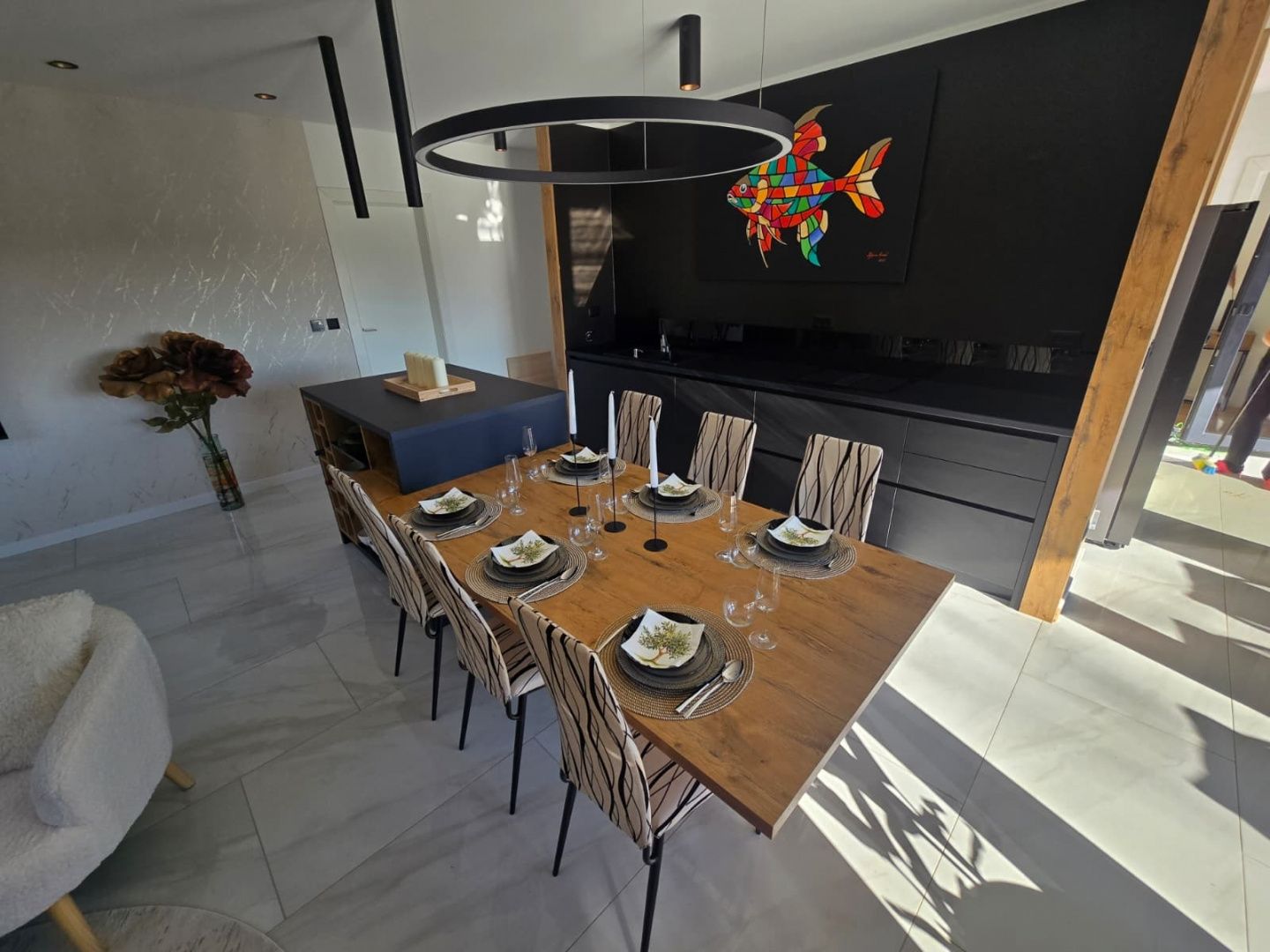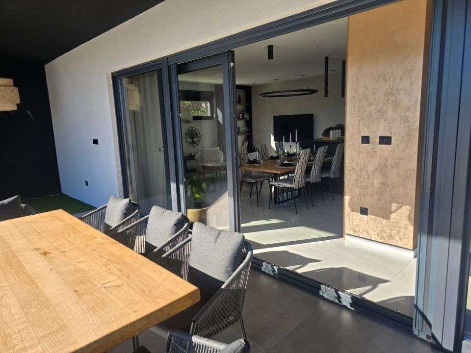 ISTRIEN, LABIN - Moderner Neubau mit Schwimmbad An der südöstlichen Küste Istriens, dort, wo die grünen Hügel auf das Meer treffen, wo Natur und Erbe zusammenkommen, liegen zwei Städte ähnlicher Größe, aber mit unterschiedlichem, sich aber gegenseitig ergänzendem Charakter – Labin und Rabac. Die malerische Stadt Labin erhebt sich auf einem 320 m hohen Hügel, nur fünf Kilometer von den weißen Kiesstränden in Rabac entfernt. Labin, das für kurze Zeit zur unabhängigen Republik erklärt wurde, ist eng mit der reichen Geschichte und dem Bergbau verbunden, die diese Region prägten, und ist heute eine faszinierende Stadt voller Widersprüche. alt und neu, Geschichte und Gegenwart, Tourismus und Kunst. In der Nähe der Stadt Labin steht ein moderner Neubau mit Schwimmbad zum Verkauf. Das Anwesen stellt eine Verschmelzung von moderner Architektur und natürlicher Umgebung dar und die Bau- und Ausstattungsqualität dieses Fertighauses garantiert langfristige Zufriedenheit und Wohnqualität. Die Beheizung/Kühlung des Hauses erfolgt über Klimaanlagen und eine Fußbodenheizung, außerdem ist die Installation für Photovoltaikpaneele vorbereitet. Das Innere des Hauses besticht durch seine Schlichtheit und Ausstattung sowie eine hervorragende räumliche Organisation. Es besteht aus einem offenen Raumkonzept, das Wohnzimmer, Esszimmer und Küche mit Zugang zur überdachten Terrasse vereint, auf der sich die Sommerküche befindet. Ergänzt wird der Grundriss durch drei Schlafzimmer mit en-suite Badezimmern, ein Gäste-WC und einen Abstellraum. Der Garten ist gärtnerisch und ökologisch gestaltet, komplett eingezäunt und verfügt über einen beheizten Pool von 32 m² mit Sonnendeck und Parkplätzen mit Ladestation für Elektrofahrzeuge. Diese Immobilie in einer ruhigen Gegend ist eine perfekte Gelegenheit für ein komfortables Familienleben sowie eine Investition in ein touristisches Vermietungsunternehmen.