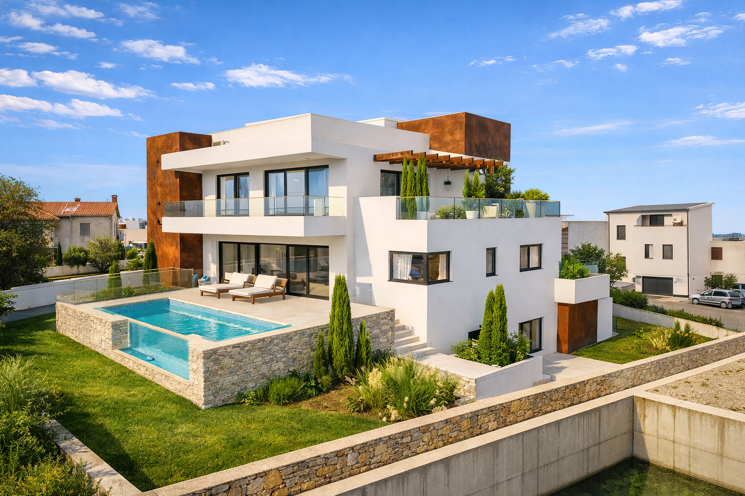 ISTRIEN, LIŽNJAN – Moderne Luxuswohnung Möglichkeit der Zusammenlegung zu einer luxuriösen Einheit. Das Angebot umfasst eine außergewöhnlich gut gestaltete Wohneinheit mit einer Gesamtfläche von 149,92 m² in ruhiger und attraktiver Lage in Ližnjan. Sie bietet einen weiten Ausblick und ein hohes Maß an Privatsphäre. Das Objekt besteht aus zwei Wohnungen, die entweder zusammen oder separat erworben werden können. Bei einem Kauf beider Wohnungen hat der zukünftige Eigentümer in Absprache mit dem jetzigen Eigentümer/Investor die volle Freiheit, Grundriss und Raumaufteilung zu verändern. Die Wohnungen befinden sich derzeit im Rohbauzustand. Die wichtigsten Infrastruktur- und Installationsarbeiten sind bereits abgeschlossen. Der Verkauf erfolgt jedoch im fertigen Zustand, ganz nach Vereinbarung und Wünschen des Käufers. Flexible Raumaufteilung – individuell anpassbar an die Wünsche des Käufers Aktuelle Raumaufteilung (2 Wohnungen): 4 geräumige Schlafzimmer, jeweils mit eigenem Bad 2 Gäste-WCs 2 offene Wohnbereiche mit Küche und Essbereich Direkter Zugang zur überdachten Terrasse Privater, beheizter Pool, ideal für die ganzjährige Nutzung und Vermietung Optionen für den Kauf in Teilen: Zusammenlegung einer luxuriösen 4-Zimmer-Wohnung Individuelle Raumaufteilung nach individuellen Bedürfnissen Kombination aus privatem Wohnsitz und Ferienvermietung Vollständige individuelle Gestaltung des Interieurs Die Immobilie entspricht den Kriterien der 5-Sterne-Kategorisierung und ist somit eine ausgezeichnete Wahl für die gehobene Ferienvermietung oder als hochwertiges Wohnobjekt. Technische Merkmale und Ausstattung Bauweise mit hochwertigen und bewährten Materialien Alle Infrastrukturanschlüsse sind fertiggestellt Die erste Phase der Fußbodenheizung mit Wärmepumpe ist installiert Hochwertige PVC-Außenfenster und -türen mit dreifach verglaster Isolierverglasung Der gesamte Raum ist für Keramikfliesen ausgelegt (Fliesen sind bereits bestellt und bereit zur Verlegung) Vorteile der Immobilie Ganzjährig bewohnbar Hohe Attraktivität für die luxuriöse Ferienvermietung Privatsphäre, Ruhe und Luxus bei geringen Instandhaltungskosten Flexible Raumaufteilung Die Lage bietet außergewöhnliche Vorteile wie unberührte Natur und ruhige Umgebung, die Nähe zum kristallklaren Meer und gepflegten Stränden, authentisches mediterranes Flair und hervorragende Verkehrsanbindung Pula und Flughafen – ca. 15 Minuten Medulin – wenige Autominuten Dank geplanter Entwicklung, steigender touristischer Nachfrage und begrenzter Neubauprojekte gilt Ližnjan als Gebiet mit großem Wertsteigerungspotenzial in den kommenden Jahren und bietet eine ideale Gelegenheit für Investitionen oder die Verwirklichung eines Traumhauses. Dank der Möglichkeit zur individuellen Innenausstattung, der sicheren und langfristigen Kapitalanlage, des hohen Renditepotenzials durch luxuriöse Ferienvermietung und eines ruhigen und hochwertigen Wohnorts werden Sie zum Gestalter Ihrer eigenen Geschichte – eines Zuhauses oder einer Investition mit Zukunft. Zahlungsbedingungen: 70 % bei Unterzeichnung des Vorvertrags 20 % nach Fertigstellung/Einzug 10 % nach Erhalt der Nutzungsgenehmigung