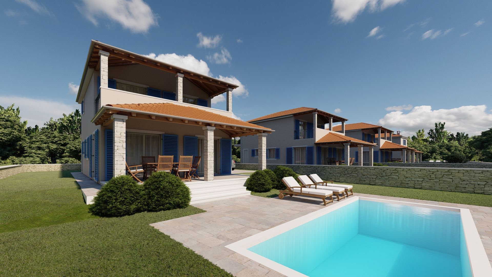 ISTRIEN, LIŽNJAN – Eine Villa mit mediterranem Charme und Meerblick! Im Angebot Real Estate präsentieren wir Ihnen das beginnende Bauprojekt eines wunderschön gestalteten Projekts, das Tradition respektiert und moderne Elemente in einer großartigen Lage kombiniert! LAGE: Die Villa befindet sich im Baukonzept von insgesamt 6 Häusern, die als kleine Siedlung fungieren werden. Sie befindet sich in ruhiger Lage mit Blick auf das Meer und in unmittelbarer Nähe der Strände in Liznjan und Medulin. PROJEKT: Das Projektkonzept und die Lage selbst sind an der Südküste Istriens so nah am Meer selten. Das Projekt sieht an jedem Haus Holzläden vor, die dem authentischen istrischen Geist folgen, und es ist geplant, die Häuser im Außenbereich entsprechend anzuordnen. Alle erforderlichen Genehmigungen, Anschlüsse und Versorgungsbeiträge wurden eingeholt. Der angegebene Preis bezieht sich auf die ROH BAU PHASE. Er umfasst: Haus unter dem Dach, Zaunmauern, Blech, Außenschreinereiarbeiten. Es besteht die Möglichkeit, dass der Investor das Gebäude mit einer Vereinbarung für Sie fertigstellt, aber grundsätzlich wird es in der ROH BAU-Phase verkauft. Der Hauspreis beinhaltet 25 % Mehrwertsteuer, sodass Sie eine Mehrwertsteuerrückerstattung für ein in Kroatien eröffnetes Unternehmen erhalten können. Die betreffende Villa bietet Ihnen 156,98 m2 Wohnfläche, die sich über das Erdgeschoss und den ersten Stock erstreckt. Das Erdgeschoss besteht aus einer Küche mit Esszimmer, einem geräumigen Wohnzimmer mit Zugang zur Terrasse und zum Pool, einem Schlafzimmer und einem Badezimmer. Im ersten Stock sind zwei Schlafzimmer geplant, jedes mit eigenem Bad. Der Hof bietet einen 7,00 x 3,00 großen Swimmingpool und genügend Gartenfläche, um Ihre eigene Oase der Ruhe ohne großen Wartungsstress zu haben. Für alle weiteren Informationen und Besichtigungen stehen wir Ihnen gerne zur Verfügung!