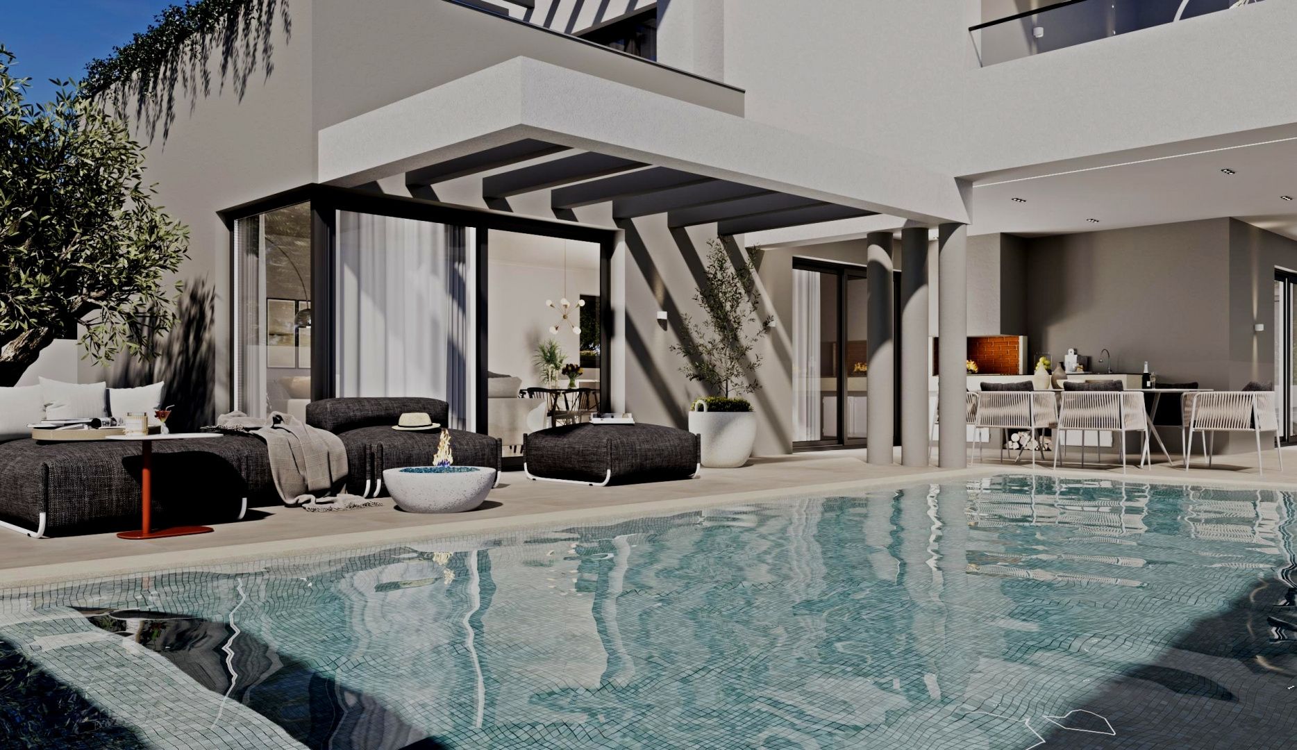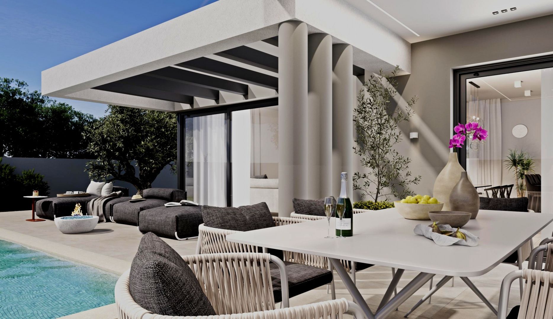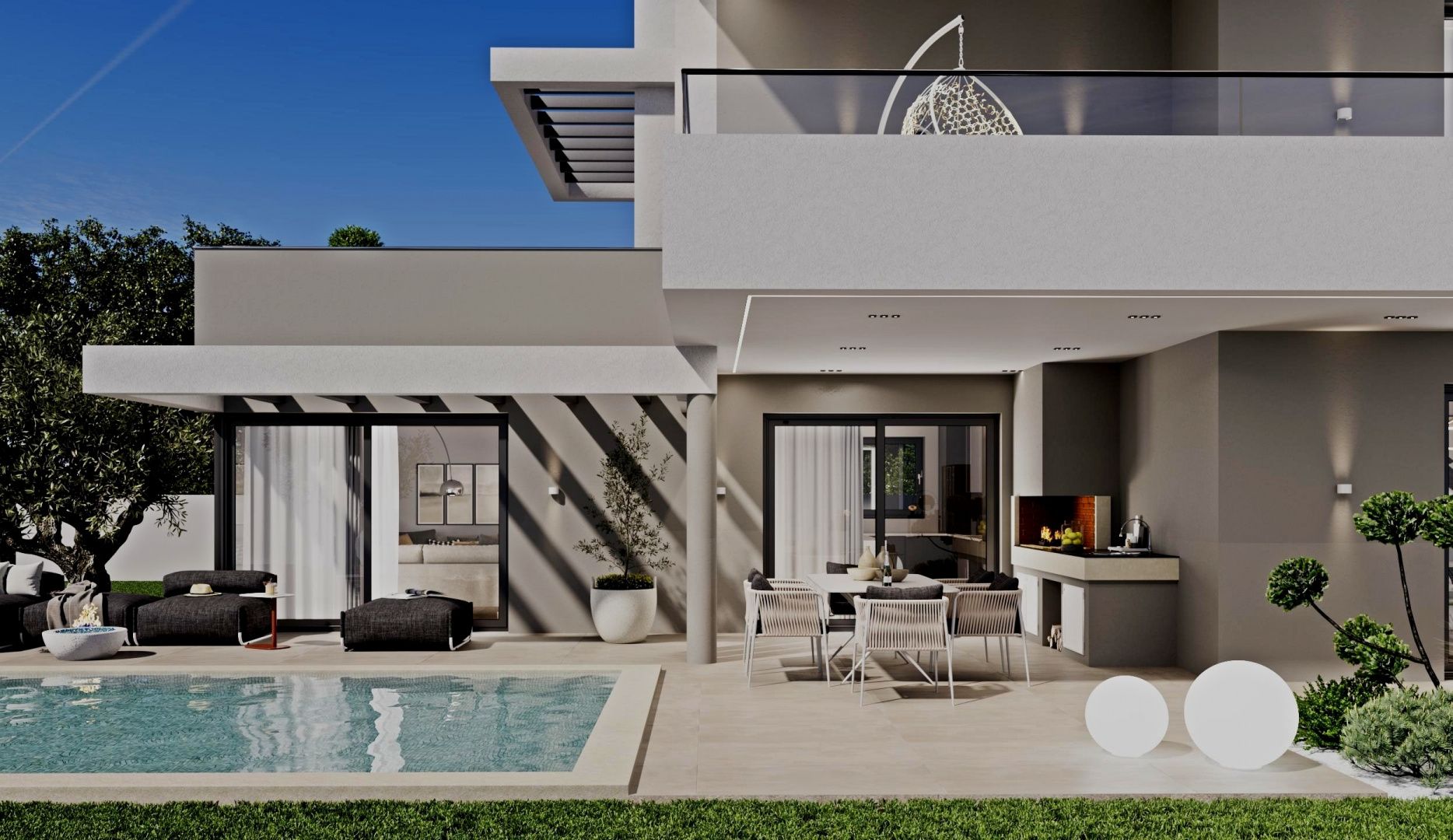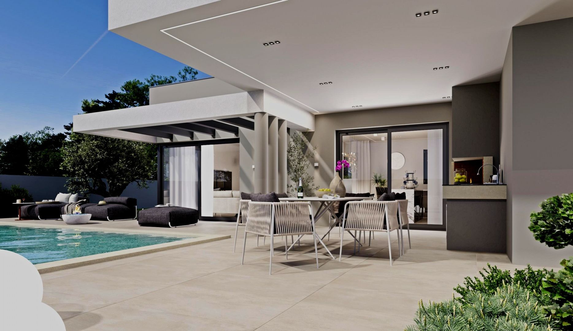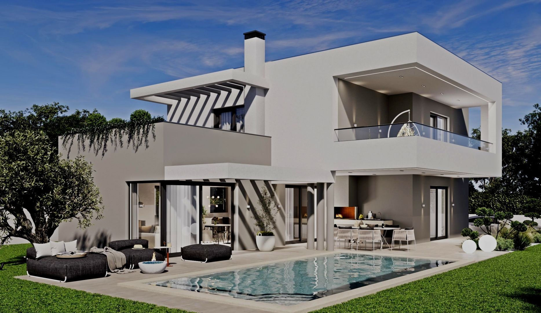 ISTRIEN, MARČANA – Modernes Haus mit Pool Marčana ist eine Gemeinde im Südosten der istrischen Halbinsel. Sie liegt etwa 12 Kilometer nordöstlich von Pula, der größten Stadt Istriens. Marčana ist bekannt für seine Küstenorte, den Urlaub, den Wein und das Olivenöl. Die kulturell vielfältige Gemeinde besticht durch kristallklares Wasser und eine fast unwirkliche Landschaft mit traumhaften Buchten und grünen Halbinseln. Ihre 36 Kilometer lange Küste ist die am wenigsten urbanisierte Küstenregion Istriens. Marčana mit ihren fruchtbaren Feldern, sanften Hügeln, die zu versteckten Felsbuchten und malerischen Dörfern und Städten abfallen, ist der unentdeckte Schatz der istrischen Ostküste. In dieser idyllischen Landschaft steht ein modernes Haus mit Pool zum Verkauf. Die Lage bietet ein authentisches Erlebnis einer kleinen istrischen Stadt: Ruhe, Abgeschiedenheit und Erholung vom Alltagstrubel, und das in unmittelbarer Nähe zum Meer und den dynamischen Städten Istriens mit ihren vielfältigen Annehmlichkeiten. Neben der idealen Lage zeichnet sich das Anwesen durch seine hochwertige Bauweise aus, die langfristige Zufriedenheit und hohen Wohnkomfort garantiert. Das Haus fügt sich mit seiner Architektur in Form und Farbe harmonisch in die Umgebung und Landschaft ein und schafft so eine gelungene Verbindung von Natur und modernem Design. Es handelt sich um eine Wohneinheit, deren Fläche sich über zwei Etagen mit einem funktionalen Grundriss erstreckt. Das Erdgeschoss besteht aus einem offenen Wohnbereich, der Küche, Esszimmer und Wohnzimmer vereint und Zugang zu einer überdachten Terrasse mit Sommerküche bietet. Hier befinden sich außerdem Schlafzimmer mit jeweils eigenem Bad, ein Gäste-WC, ein Abstellraum und Technikräume. Im Obergeschoss befinden sich zwei Schlafzimmer mit jeweils eigenem Bad, ein Ankleidezimmer und eine Waschküche. Klimaanlagen in allen Räumen und eine elektrische Fußbodenheizung sorgen ganzjährig für ein angenehmes Raumklima. Der Garten ist stimmungsvoll und gärtnerisch gestaltet und umzäunt. Ein Swimmingpool mit Liegewiese sorgt für vollkommene Harmonie. Der angegebene Preis bezieht sich auf den Rohbauzustand ohne Möbel, sodass Sie die Immobilie ganz nach Ihren Wünschen und Vorlieben einrichten können. Die hervorragende Lage und die durchdachte Raumaufteilung im Innen- und Außenbereich bieten ideale Voraussetzungen für ein komfortables Familienleben oder als Investition in die Ferienvermietung.