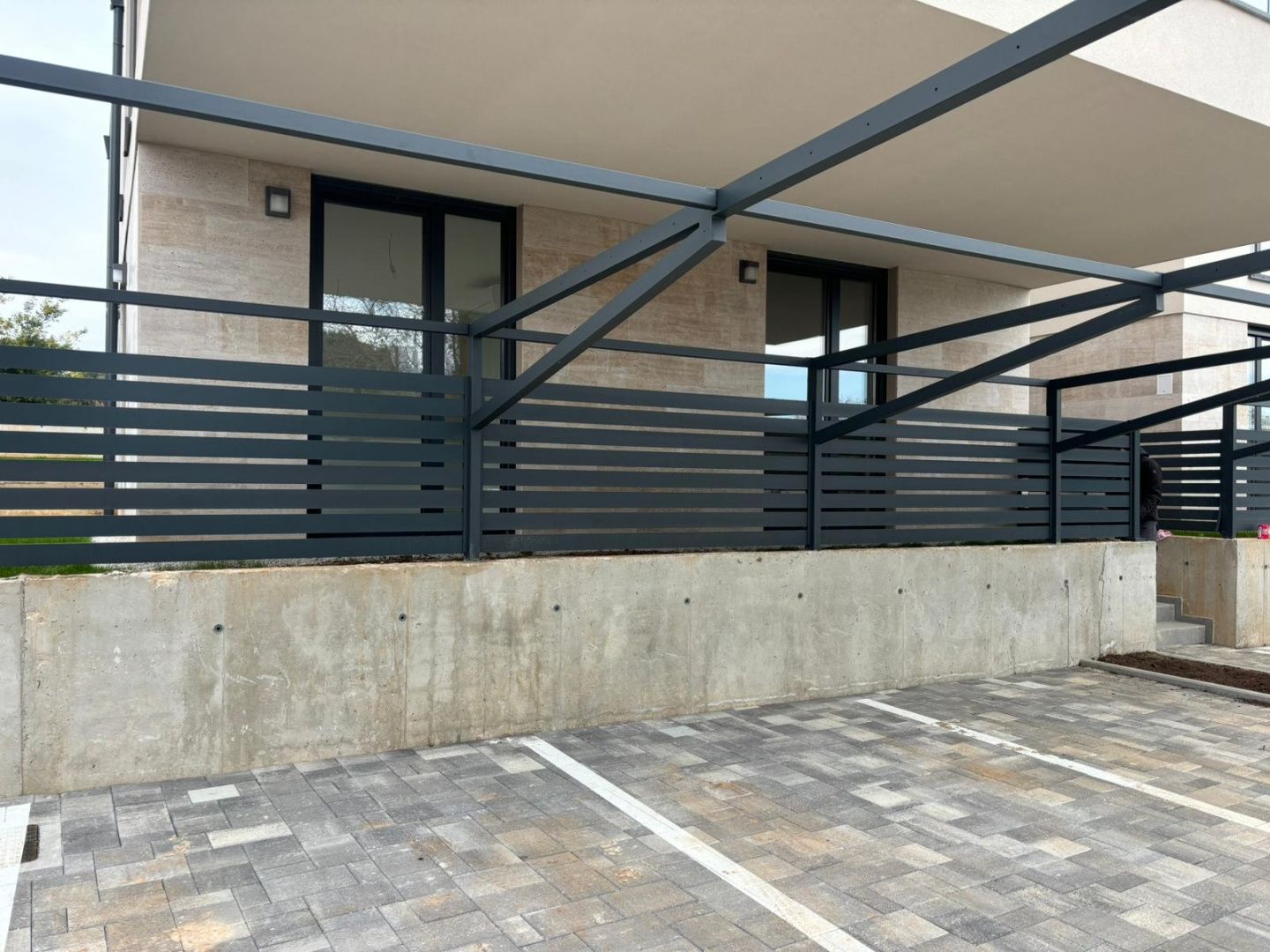Istrien, Medulin (Banjole) – Grüne Oase mit Garten – Neubauwohnung! Nutzungsgenehmigung vorhanden! DUX Immobilien bietet eine Wohnung mit Garten in traumhafter Lage, nur 200 Meter vom Meer entfernt. Das Gebäude liegt inmitten einer grünen Oase, umgeben von Einfamilienhäusern – eine Seltenheit auf dem Immobilienmarkt! Die Wohnung bietet 59,10 m² Wohnfläche plus 51,16 m² Garten (entspricht ca. 5,12 m² pro Quadratmeter). Die Wohnung besteht aus Eingangsbereich, Schlafzimmer, Badezimmer und einem schönen, offenen Wohn- und Küchenbereich mit Blick ins Grüne. Zwei Glaswände führen in den Garten. Zur Wohnung gehört außerdem ein Stellplatz. Die in der Anzeige gezeigten Visualisierungen wurden speziell für diese Wohnung erstellt. So können Sie sofort sehen, wie realistisch Sie die Wohnung einrichten können. Sie haben außerdem die Möglichkeit, mit dem Inneneinrichtungsstudio in Kontakt zu treten, das die Visualisierungen erstellt hat! AUSSTATTUNG DER WOHNUNG: Außenfenster und -türen: PVC mit Dreifachverglasung und elektrisch betriebenen Aluminium-Jalousien Fassade: 12 cm dicker Putz im ersten Obergeschoss, 8 cm plus 2 cm Travertin Bianco im Erdgeschoss Kühlung und Heizung: Mitsubishi-Klimaanlagen und elektrische Fußbodenheizung in allen Räumen mit WLAN-Thermostaten Bodenbeläge: Keramikfliesen von Marca Corona Käufer sind von der Grunderwerbsteuer befreit!