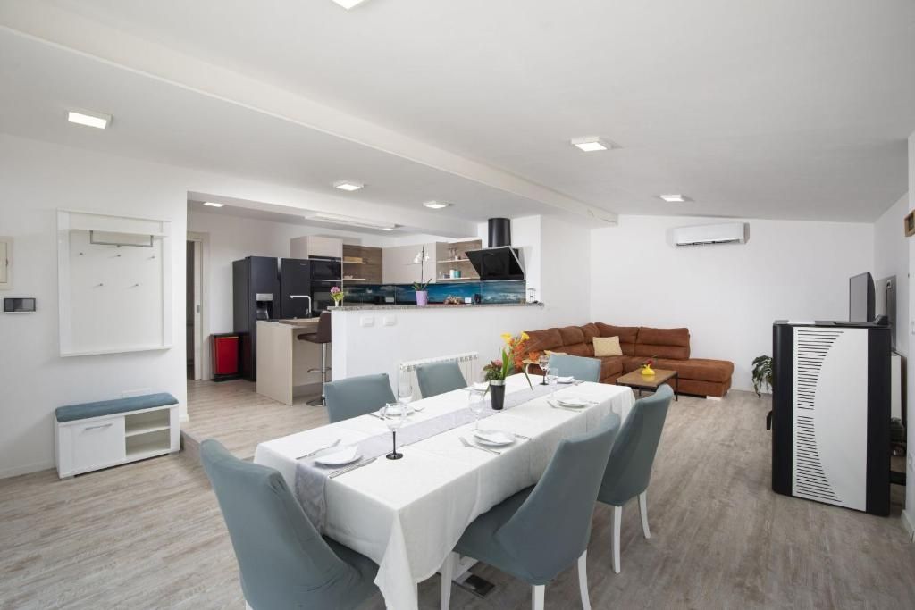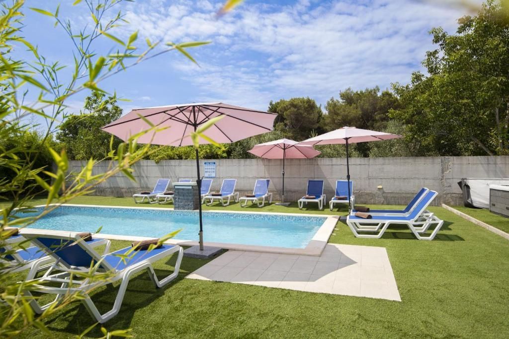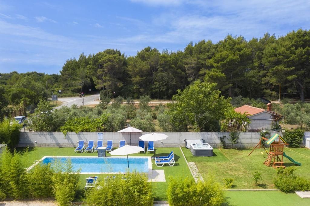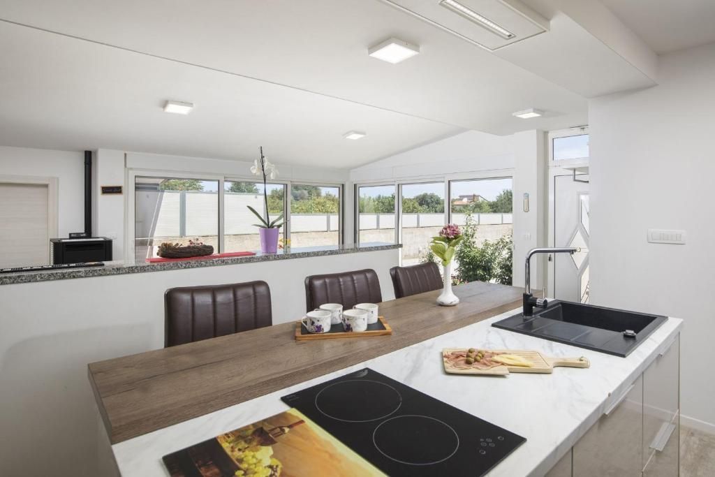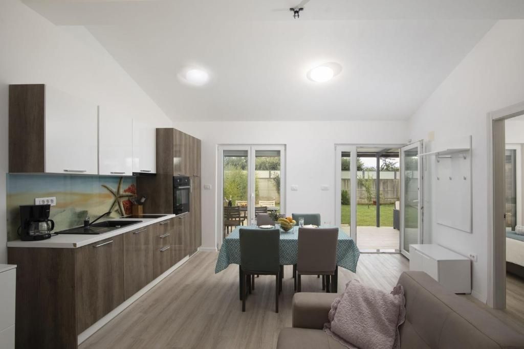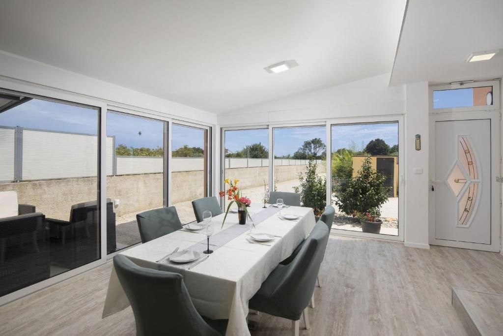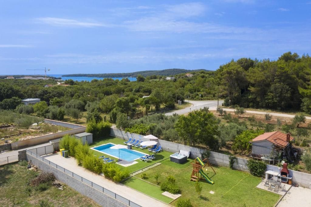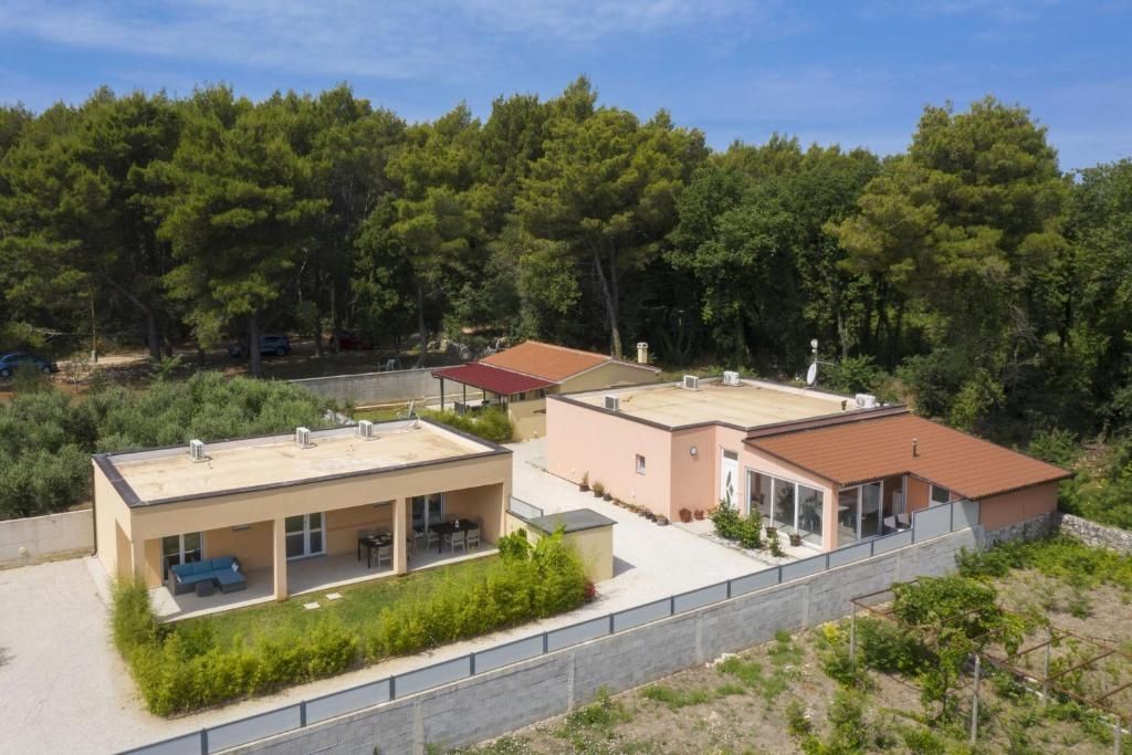Istrien, Medulin – Drei ebenerdige Häuser in Meeresnähe zur Langzeitmiete! DUX Immobilien bietet drei ebenerdige Häuser zur Langzeitmiete ab einem Jahr an. Die Häuser bieten Platz für bis zu 12 Personen und sind somit ideal für große Familien oder Unternehmen mit beruflich vielreisenden Mitarbeitern. Das größte Haus hat 144 m² Wohnfläche und drei Schlafzimmer. Das zweite Haus ist 84 m² groß und verfügt über zwei Schlafzimmer, das dritte 54 m² und ein Schlafzimmer. Der angegebene Preis bezieht sich auf die monatliche Miete und beinhaltet keine Nebenkosten. Der Vermieter übernimmt die Kosten für die Instandhaltung des Grundstücks und die Poolpflege in den Sommermonaten. Für Heizung und Kühlung sorgen eine Klimaanlage und ein Pelletofen. Der Garten bietet viel Platz zum gemeinsamen Entspannen rund um den Pool, den Whirlpool, den Grill und das Kinderspielzimmer. Die Lage ist sehr ruhig und naturnah, dennoch sind Strände, Geschäfte, Restaurants und das Zentrum von Pula schnell zu erreichen. Die Kaution entspricht einer Monatsmiete. Für weitere Informationen kontaktieren Sie uns!
