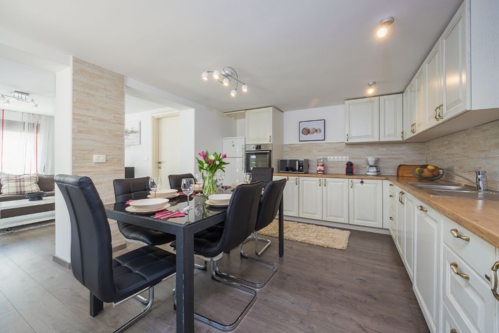ISTRIEN, MEDULIN – Freistehendes Haus mit drei Wohneinheiten und Pool! DUX Real Estate präsentiert eine attraktive Investitionsmöglichkeit! Wir bieten ein freistehendes Haus mit drei Wohneinheiten und Pool an. Das Haus wurde 2023 komplett renoviert und befindet sich in ruhiger Lage in Medulin, nur 1 km von den Stränden entfernt! Es bietet eine Wohnfläche von 180 m² und ein 599 m² großes Grundstück. Der Garten verfügt über einen 6 x 3 m großen Pool, eine Liegewiese, eine Pergola und einen Entspannungsbereich. Mehrere Parkplätze sowie eine Ladestation für Elektroautos sind vorhanden. Die größten Vorteile der Immobilie: * Solaranlage zur Warmwasserbereitung * Neue Installationen (Strom und Wasser) * Keine zusätzlichen Investitionen * Städtischer Abwasseranschluss * Kapazität für 11 Personen (Kategorie 3) Das Haus erstreckt sich über drei Etagen, die durch eine Außentreppe miteinander verbunden sind. Das Untergeschoss verfügt über ein Wohnzimmer, eine Wohnküche und ein Badezimmer. Das Hochparterre bietet ein großes Wohnzimmer mit Zugang zur Terrasse, drei Schlafzimmer und zwei Badezimmer. Das Obergeschoss bietet ein Wohnzimmer mit Zugang zur Terrasse, eine Küche und zwei Schlafzimmer. Klimaanlagen sind zum Heizen und Kühlen installiert. DOKUMENTATION: Eigentumsnachweis (1/1). Rechtliche Person. Vollständige Unterlagen. Für weitere Informationen und zur Vereinbarung eines Besichtigungstermins kontaktieren Sie uns bitte!