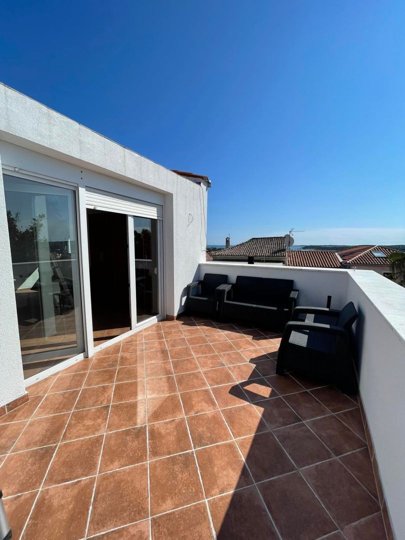 ISTRIEN, MEDULIN – Haus mit 2 Wohnungen, Parkplatz, Meerblick Medulin, einst ein kleines Fischerdorf, hat sich dank seiner Vorzüge – mildes Mittelmeerklima, klares Meer und zerklüftete Küste – zu einem modernen Touristenzentrum entwickelt. Mit seiner reichen Kulturgeschichte, der atemberaubenden Küste und dem vielfältigen Angebot an Aktivitäten und Sehenswürdigkeiten zählt es zu den beliebtesten Reisezielen an der Adria. Als modernes Touristenzentrum bietet Medulin einen abwechslungsreichen und dynamischen Urlaub. Für Unterhaltungssuchende organisiert die Stadt zahlreiche kulturelle Veranstaltungen wie Sommerkonzerte, Folklorefeste, Fischerabende und Kunsthandwerksmärkte. Im Herzen von Medulin steht ein Haus mit zwei separaten Wohnungen zum Verkauf – ideal für Familien oder zur Ferienvermietung. Im Erdgeschoss befindet sich eine funktionale Wohnung mit Eingangsbereich, offenem Wohn-, Küchen- und Essbereich, separatem Badezimmer und einem Schlafzimmer. Über eine Außentreppe gelangt man in den ersten Stock, wo sich eine geräumige Maisonette-Wohnung befindet. Im ersten Stock befinden sich ein Wohnzimmer mit Küche und Essbereich, ein Badezimmer und ein Schlafzimmer. Eine Innentreppe führt in den zweiten Stock, der als zusätzliches Schlafzimmer oder Mehrzweckraum genutzt werden kann. Die Terrassen verleihen dieser Immobilie einen besonderen Wert – eine mit Meerblick und eine weitere mit Panoramablick über ganz Medulin und das Meer. Das Haus verfügt außerdem über einen umzäunten Parkplatz, was in dieser zentralen Lage eine echte Rarität ist. Hauptvorteile: Ausgezeichnete Lage im Zentrum von Medulin Zwei separate Wohnungen Meerblick und Panoramablick Gesicherter Parkplatz Ideal für die Ferienvermietung oder als Familienwohnsitz Diese Immobilie bietet eine hervorragende Investitionsmöglichkeit in einer der begehrtesten Urlaubsregionen an der Adria.