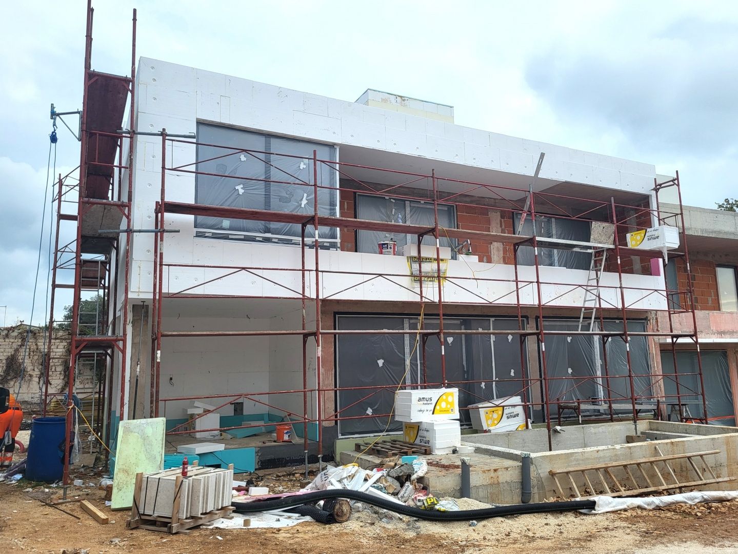 ISTRIEN, MEDULIN – Haus mit Pool, Dachterrasse und Meerblick Medulin ist ein Dorf und eine Gemeinde im Süden der istrischen Halbinsel, nur 10 km vom Zentrum Pulas entfernt, der größten Stadt Istriens, die auch für ihre römischen Ruinen und das Arena-Amphitheater bekannt ist. Medulin ist ein beliebtes Reiseziel, das Besuchern eine Kombination aus Naturschönheit, kulturellem Erbe und Freizeitaktivitäten bietet. Es ist bekannt für seine schönen Strände, das klare Meer und die historischen Stätten. Zum Verkauf steht ein modernes, zweistöckiges Haus mit Pool. Das Gebäude hat eine Wohnfläche von 200 m². Im Erdgeschoss befinden sich ein Gäste-WC sowie eine offene Küche mit Ess- und Wohnbereich und direktem Zugang zum Pool. Im Obergeschoss befinden sich drei Schlafzimmer und zwei Badezimmer. Eine Innentreppe führt zu einer geräumigen Dachterrasse mit herrlichem Blick auf das Meer und die Umgebung. Auf der Terrasse ist Platz für einen Whirlpool. Große Glaswände und Fenster im Treppenhaus sorgen für viel Tageslicht in allen Räumen. Das Haus verfügt über Fußbodenheizung und Klimaanlage in jedem Zimmer. Der Preis bezieht sich auf ein komplett fertiggestelltes Gebäude mit Einbaukeramik und Sanitäranlagen, jedoch ohne Möbel. Die geplante Fertigstellung ist März 2026. Diese moderne Immobilie mit Swimmingpool, Whirlpool, Dachterrasse und Meerblick bietet eine attraktive Gelegenheit für ein modernes Familienleben oder zur touristischen Vermietung.