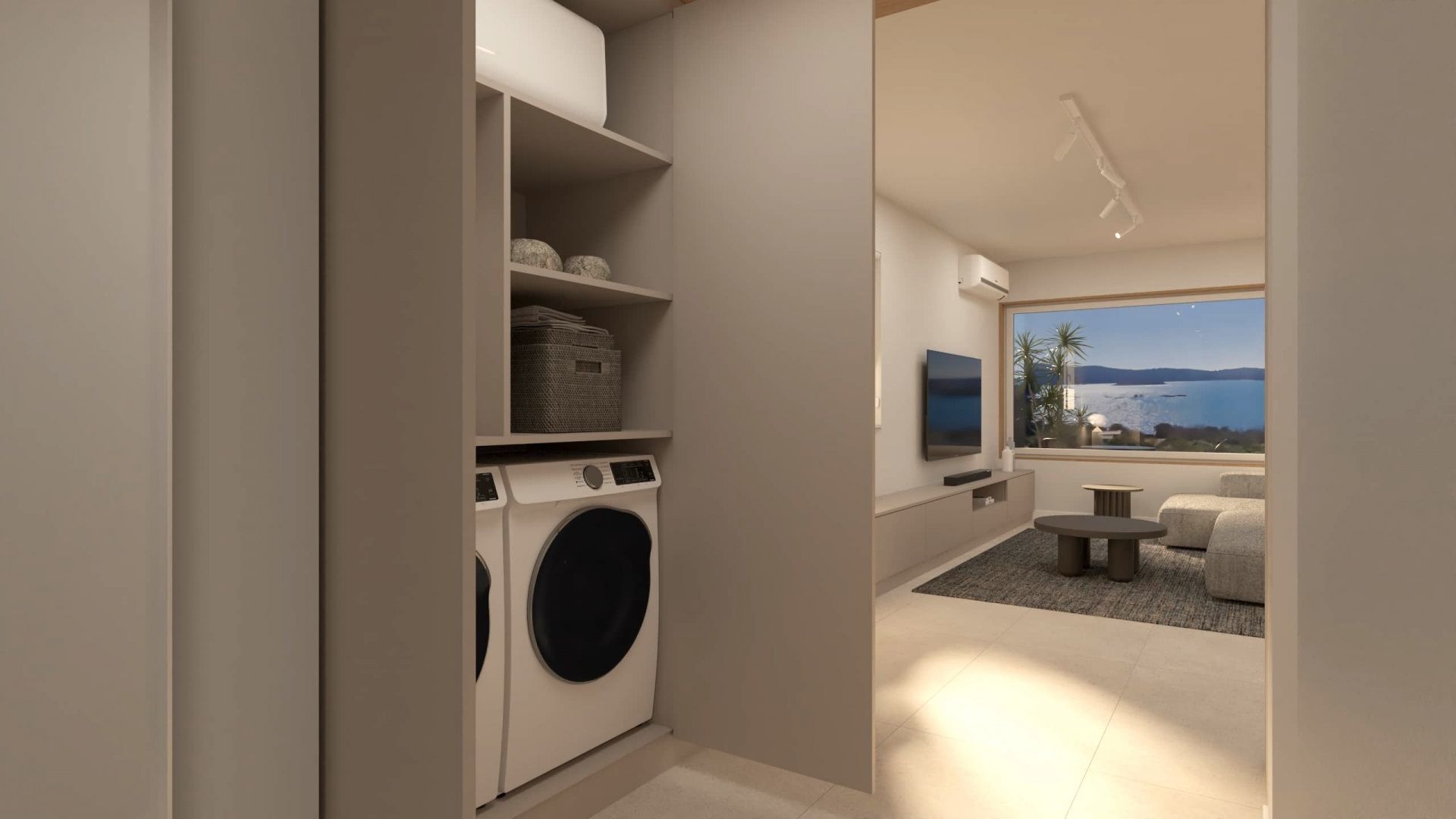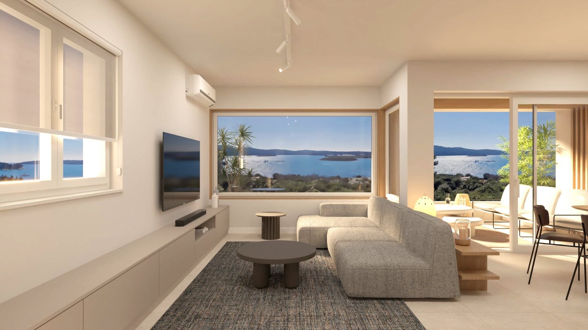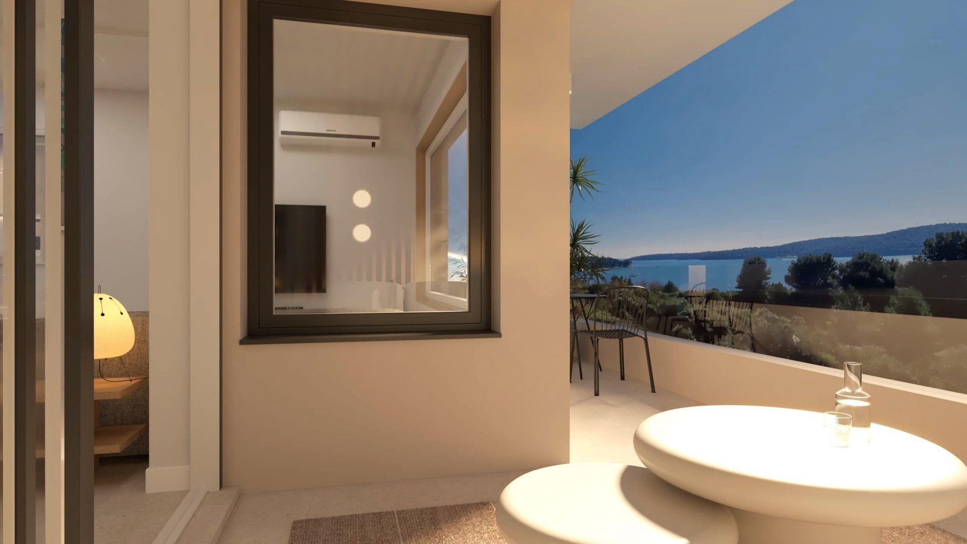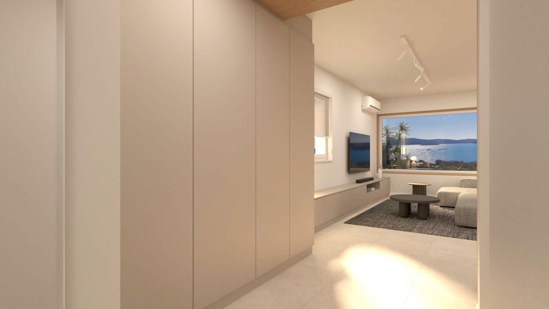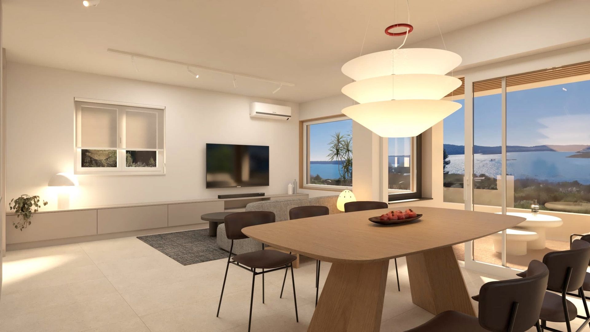 ISTRIEN, MEDULIN – Neubau in erster Reihe zum Meer Zum Verkauf steht eine moderne Wohnung im ersten Obergeschoss eines Neubaus in einer attraktiven Lage von Medulin. Die Wohnung befindet sich in erster Reihe. Vor dem Gebäude erstreckt sich eine Grünfläche, in der keine Bebauung erlaubt ist. Dies garantiert dauerhafte Offenheit und eine ruhige Umgebung. Das Gebäude umfasst nur drei Wohneinheiten und bietet somit Ruhe und Exklusivität. Die Wohnung im ersten Obergeschoss mit einer Wohnfläche von 82,66 m² ist funktional aufgeteilt und verfügt über zwei Schlafzimmer, darunter ein Hauptschlafzimmer mit Bad, einen offenen Wohn-/Essbereich mit Küche und Meerblick sowie einen Balkon, der zum Entspannen und Genießen der Natur einlädt. Besonders wertvoll ist diese Wohnung aufgrund des bezaubernden Meerblicks, der sich von Küche und Wohnzimmer aus erstreckt. Der Alltag hier wird von einer natürlichen Kulisse aus Blau und Licht begleitet, die ein Gefühl von Weite und Verbundenheit mit der Natur schafft. Große Glasflächen betonen den Meerblick, lassen viel Tageslicht in die Räume und ermöglichen es Ihnen, die Aussicht den ganzen Tag über zu genießen – vom Sonnenaufgang bis zu den ruhigen Abendstunden. Zur Wohnung gehören außerdem zwei Außenstellplätze. Diese Immobilie bietet eine hervorragende Gelegenheit für komfortables Wohnen, Urlaub oder die Vermietung an Feriengäste in unmittelbarer Nähe zum Meer und allen Annehmlichkeiten des täglichen Bedarfs. AUSSTATTUNG: - Hochwertige PVC-Fenster und -Türen mit dreifach verglastem 4S-Glas von Saint-Gobain - Fußbodenheizung - Die Wohnung ist mit einer Mitsubishi-Split-Klimaanlage ausgestattet, die für effiziente Kühlung und Heizung sorgt. Die Klimaanlage befindet sich im Wohn- und Schlafzimmer. Das Badezimmer ist mit hochwertigen Sanitärobjekten von Hansgrohe ausgestattet, die für ihre Qualität, ihr Design und ihre Langlebigkeit bekannt sind. Elektrische Jalousien sind vorhanden. Die gesamte Wohnung ist mit italienischen Keramikfliesen ausgestattet. Die lackierten Innentüren verfügen über verdeckte Einbruchsicherungen und Verstärkungen für eine bessere Schalldämmung. Dierre-Sicherheitstüren befinden sich am Eingang jeder Wohnung. Das Treppenhaus ist mit Brač-Stein verkleidet. Die Eingangstür des Gebäudes ist aus hochwertigem Aluminium gefertigt. Die Fassade und das Flachdach verfügen über eine hervorragende Wärmedämmung. Neben dem Parkplatz ist eine Ladestation für Elektrofahrzeuge geplant, die eine einfache Anpassung an moderne Bedürfnisse ermöglicht. Weitere Informationen: Das Gebäude verfügt über einen Energieausweis der Klasse A+. Im Preis enthalten ist eine vollständige konzeptionelle Innenarchitektur mit Designbroschüre und Visualisierungen. 1/1-Eigentum. Das Gebäude befindet sich in der Endphase des Baus – die Schreinerarbeiten sind bereits abgeschlossen. Zahlung: - Zahlungsmodalitäten: 40 % bei Vertragsabschluss, 40 % bei Einzug, 20 % nach Erhalt der Betriebsgenehmigung Bezugsfertig im Sommer 2026 Für weitere Informationen und zur Vereinbarung eines Besichtigungstermins kontaktieren Sie uns bitte.