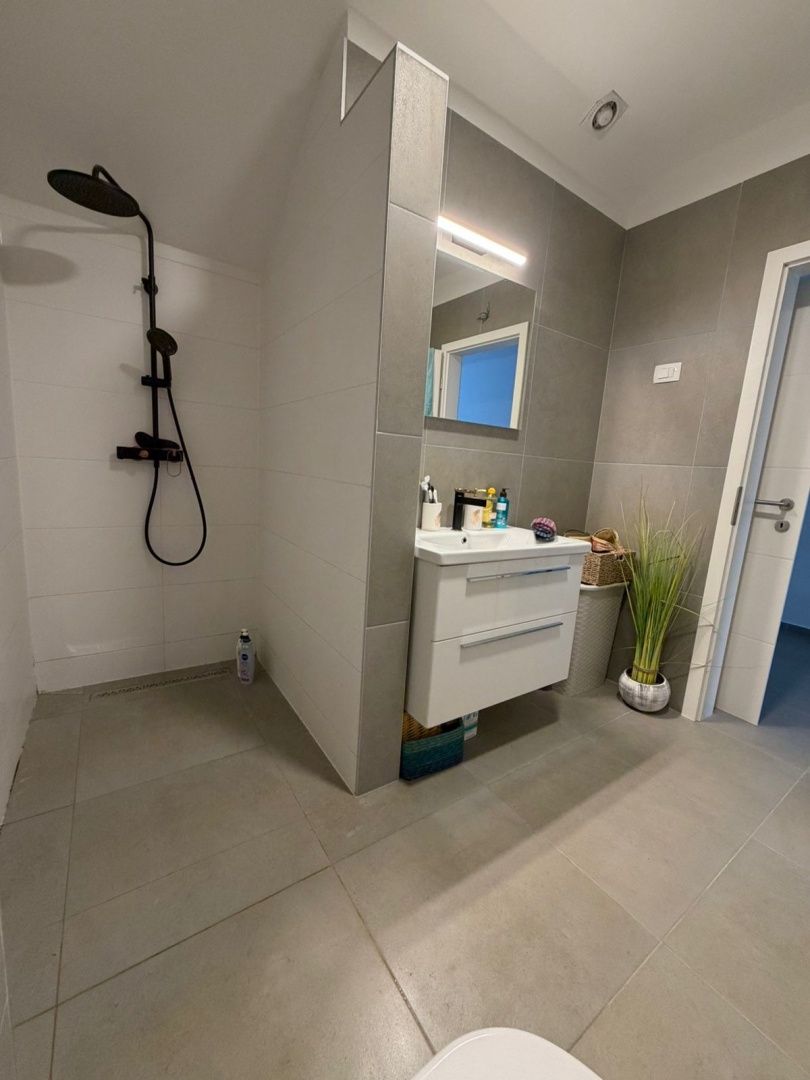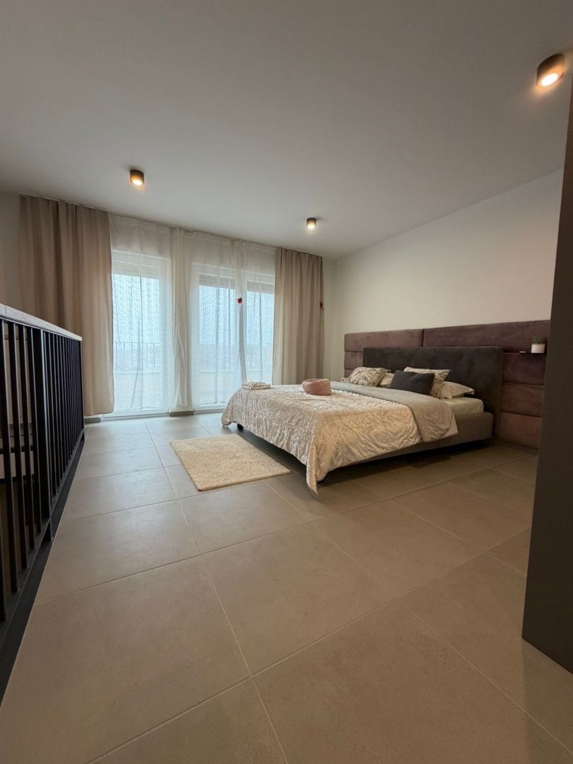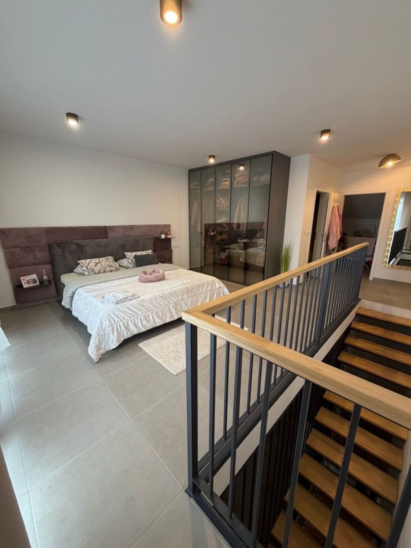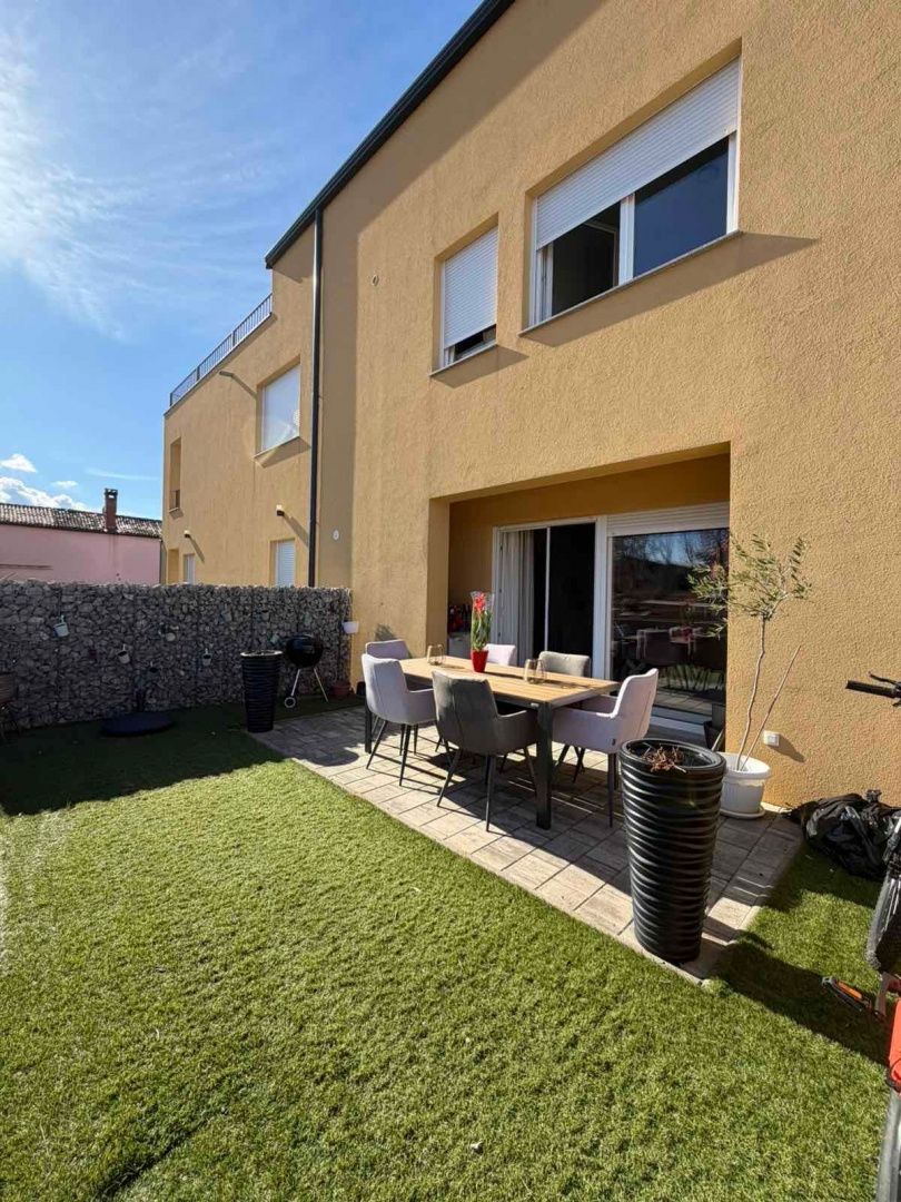 Istrien, Novigrad – Modernes Haus mit Meerblick In einer der begehrtesten Lagen Novigrads, nur 2 Kilometer vom Meer und gepflegten Stränden entfernt, befindet sich dieses moderne Reihenhaus, das zeitgenössisches Design, Funktionalität und mediterranes Lebensgefühl perfekt vereint. Es liegt in ruhiger Umgebung und ist ideal für Familien, aber auch eine hervorragende Investition zur touristischen Vermietung. Das Haus wurde 2022 erbaut und bietet auf drei Etagen 129 m² Wohnfläche. Es befindet sich inmitten einer Terrasse, was für zusätzliche Privatsphäre und Energieeffizienz sorgt. Im Erdgeschoss befinden sich eine Eingangshalle, ein Gäste-WC und ein geräumiges Wohnzimmer mit offener Küche und Essbereich. Dank großer Glasfronten, die in den umzäunten Garten führen, ist der Raum lichtdurchflutet – ein perfekter Ort zum Entspannen, Grillen oder geselligen Beisammensein mit Familie und Freunden. Im ersten Stock befinden sich drei komfortable Schlafzimmer und ein modernes Badezimmer, die ausreichend Platz für eine größere Familie oder Gäste bieten. Das Obergeschoss ist der Privatsphäre und dem Luxus vorbehalten und bietet ein geräumiges Hauptschlafzimmer mit eigenem Bad, zusätzlichem Stauraum und Zugang zu einer Terrasse mit Meerblick. Diese Terrasse verleiht dem Anwesen einen besonderen Charme und ein exklusives Ambiente. Das Haus ist mit einer Fußbodenheizung ausgestattet, die ganzjährig für angenehme Temperaturen sorgt. Zwei Parkplätze sind ein zusätzlicher Pluspunkt. Diese Immobilie ist die ideale Gelegenheit für alle, die ein modernes Zuhause in Meeresnähe suchen, in einer Stadt mit erstklassiger Gastronomie, gepflegten Promenaden und authentisch istrischem Flair.