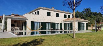 ISTRIEN, VIŠNJAN - Luxus-Steinvilla mit Swimmingpool Eine schöne Villa zum Verkauf, nur etwa 10 km von der Stadt Poreč und ihren Stränden entfernt. Es befindet sich in ruhiger Lage umgeben von Olivenbäumen auf einem Grundstück von 1200 m2. Die Villa besteht aus zwei Etagen: Erdgeschoss und erster Stock. Im Erdgeschoss befindet sich ein geräumiges Wohnzimmer, eine Küche im rustikalen Stil mit Essbereich und direktem Zugang zur Außenküche, Terrasse und Pool. Es gibt auch zwei Schlafzimmer, zwei Badezimmer, einen Abstellraum und einen Maschinenraum. Vom Wohnzimmer im Erdgeschoss, der Küche, dem Esszimmer und dem Schlafzimmer im Erdgeschoss gibt es einen direkten Zugang zum 42 m² großen Swimmingpool, der mit hochwertiger italienischer Keramik ausgekleidet ist, mit einem Sonnendeck und einem Essbereich und eine grüne Rasenfläche. Im Obergeschoss befinden sich 3 Schlafzimmer, 2 Badezimmer, ein Kleiderschrank und eine Terrasse mit herrlichem Blick auf die Natur und das Meer. Beheizt wird das Haus über eine zentrale Fußbodenheizung, Gebläsekonvektoren und einen Kamin im Wohnzimmer. Die Villa ist ideal für ein authentisches Erlebnis Istriens. Unter Berücksichtigung aller oben genannten Eigenschaften und Vorteile dieser einzigartigen Immobilie wird sie das ganze Jahr über erfolgreich vermietet und ist auch eine gute Investitionsmöglichkeit für touristische Zwecke.