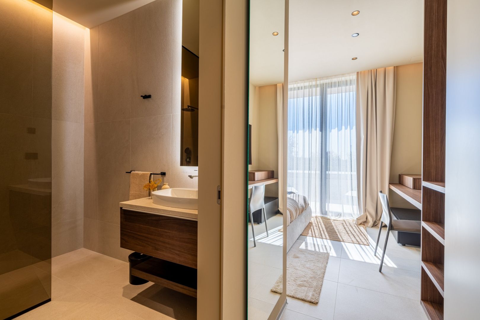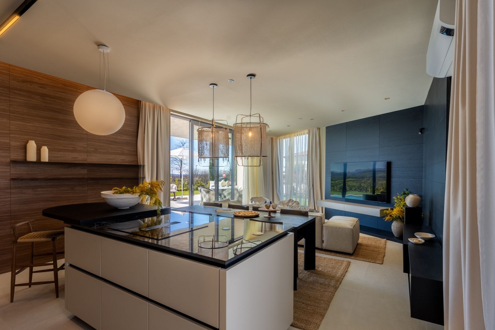 ISTRIEN, POREČ – Luxushaus mit Pool am Ortsrand Die antike Stadt Poreč liegt im Herzen der Westküste Istriens und ist von einem angenehmen mediterranen Klima umgeben. Ihre Küste besticht durch unberührte Naturschönheiten, angelegte Parks, Pinien- und Eichenwälder, die bis ans Meer reichen. An ihr wechseln sich klares Meer, Strände, Buchten und Inseln ab. Die 139 km² große Stadt besteht aus 58 Dörfern. Mit der Identität einer urbanen Küstenstadt ist Poreč eine Stadt der Kultur, des Sports, der Unterhaltung, des Tourismus und der wahren Gastfreundschaft. Sie ist eine der attraktivsten Städte Kroatiens und vereint auf einzigartige Weise die natürliche Schönheit Istriens, das reiche kulturelle und historische Erbe und die modernsten Annehmlichkeiten eines Top-Reiseziels. Die Harmonie des alten Stadtkerns, der ein Kulturdenkmal ist, mit einem der berühmtesten Kulturdenkmäler Istriens, der Euphrasius-Basilika, die zum UNESCO-Weltkulturerbe gehört, und den am besten erhaltenen und ausgestatteten Touristendörfern an der Adria bildet ein Mosaik unvergesslicher Erlebnisse. Poreč ist auch eine Stadt, die viel mehr ist als ein Sommerziel mit Sonne und Meer. Poreč ist eine Stadt, die auf die Bedürfnisse der Menschen zugeschnitten ist. Eine Stadt, in der es einen ständigen Impuls gibt, die Lebensbedingungen zu verbessern und den Fortschritt in verschiedenen Bereichen voranzutreiben. Eine Stadt, die ein angenehmer, sicherer und gepflegter Ort zum Leben ist, an dem jeder seinen Platz findet, eine Stadt ohne Zusatzsteuern mit hoher sozialer Sensibilität für alle Generationen. Unweit der Stadt Poreč steht am Rande der Siedlung ein Luxushaus mit Swimmingpool zum Verkauf. Die Immobilie verkörpert eine Harmonie aus Raum, Bedürfnissen, Funktionen, Bauweise und Schönheit. Die Mikrolage bietet das authentische Erlebnis einer istrischen Kleinstadt, Intimität, Erholung von jeglicher Hektik und Lärm bei gleichzeitiger Nähe zum Meer und städtischen Annehmlichkeiten. Neben der Lage, die umfassenden Komfort und einen Blick auf die Umgebung und das Meer in der Ferne bietet, zeichnet sich die Immobilie durch modernes Design und Architektur aus, die Modernität und Eleganz widerspiegeln, sowie durch hochwertige Bauweise und Ausstattung, die langfristige Zufriedenheit und Lebensqualität garantieren. Zur Ausstattung gehören: STO-Fassadensystem, 280 cm hohe Decken, raumhohe Aluminiumfenster und WICONA-Türen, Lestur-Innentüren mit verdeckten Aluminiumpfosten, Lea Ceramiche-Keramik, Catalano-Sanitärkeramik, Hansgrohe/AXOR-Armaturen, Whirlpool-Geräte, Möbel von Alf Da Frè, Bonaldo, Doimo Salotti und Désirée, Varaschin-Gartenmöbel, Dorelan Millenaire R2-Matratzen, Beleuchtungssysteme von Flos und Ay Illuminate, Samsung WindFree-Klimaanlagen, Uponor-Fußbodenheizung, Vaillant aroTHERM plus-Wärmepumpe, Glasfaser-Internet, Sicherheitskameras mit Alarmanlage, Loxone-Smart-Home, Loxone-Ladestation für Elektrofahrzeuge, Husqvarna-Mähroboter und automatisches Bewässerungssystem. Das Haus ist einstöckig angelegt und legt Wert auf Funktionalität und Ästhetik. Der Wohnbereich bietet ein harmonisches, lichtdurchflutetes Wohnumfeld, das Eleganz und Komfort ausstrahlt. Es besteht aus einem offenen Raumkonzept, das Küche, Esszimmer und Wohnzimmer mit Zugang zu einer überdachten Terrasse mit Sommerküche, vier Schlafzimmern mit eigenem Bad, einem Gäste-WC, einer Waschküche und Technikräumen vereint. Der Garten ist stimmungsvoll und gärtnerisch gestaltet und eingezäunt. Ein beheizter Pool mit Liegewiese sorgt für vollkommene Harmonie. Die hervorragende Lage und die räumliche Aufteilung des Innen- und Außenbereichs dieser Luxusimmobilie bieten die Möglichkeit für ein komfortables Familienleben oder eine Investition in ein touristisches Vermietungsgeschäft. Der Verkäufer der betreffenden Immobilie ist eine juristische Person, und der angegebene Preis enthält keine Mehrwertsteuer.