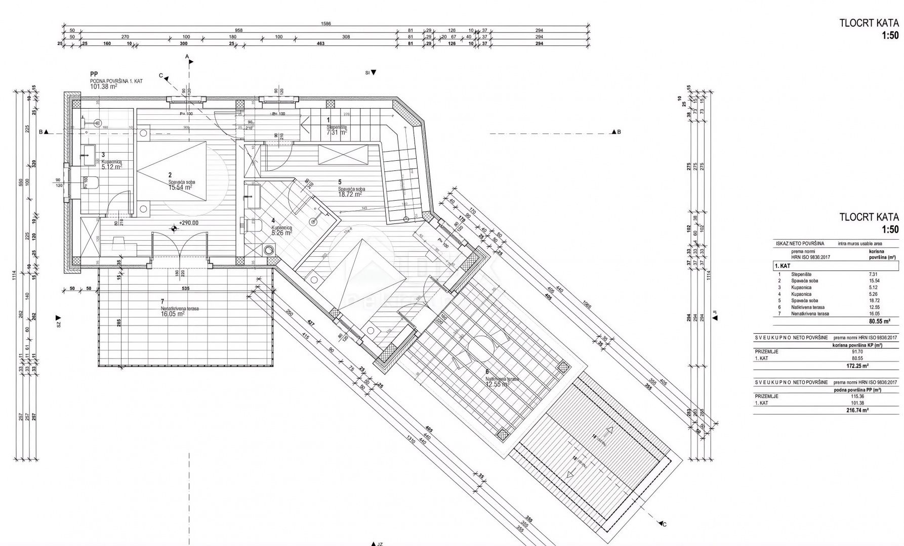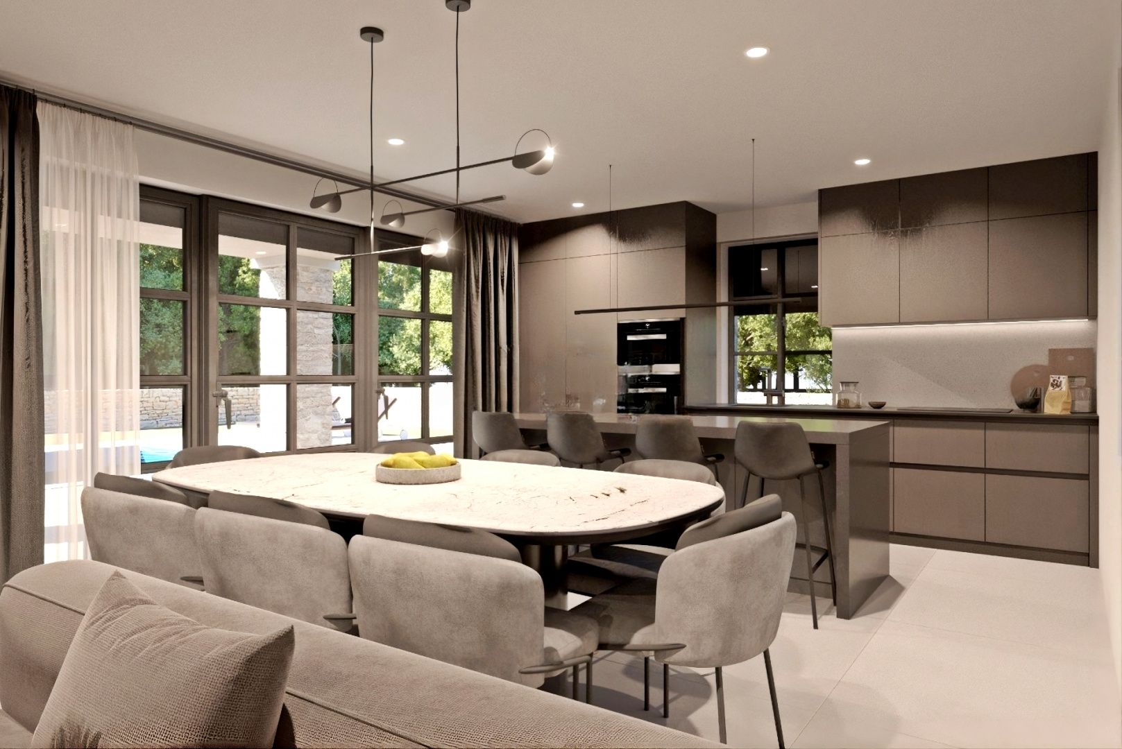 ISTRIEN, POREČ – Mediterranes Haus mit Pool Eingebettet in ein angenehmes mediterranes Klima, im Herzen der westistrischen Küste, erstreckt sich die historische Stadt Poreč mit ihrer unberührten Küstenlinie, gepflegten Parks, Pinien- und Eichenhainen, die bis ans Meer reichen, über eine Fläche von 139 km² und besteht aus 58 Ortschaften. Entlang dieser Küste wechseln sich klares Wasser, Strände, Buchten und Inseln ab. Poreč ist eine lebendige Küstenstadt mit vielfältigen Kultur-, Sport- und Unterhaltungsmöglichkeiten sowie herzlicher Gastfreundschaft. Sie zählt zu den attraktivsten Städten Kroatiens und vereint auf einzigartige Weise die natürliche Schönheit Istriens, ein reiches kulturelles und historisches Erbe und modernste Annehmlichkeiten eines Top-Reiseziels. Doch Poreč ist weit mehr als nur ein Sommerurlaubsort mit Sonne und Meer. Poreč ist eine Stadt, die auf die Bedürfnisse ihrer Bewohner zugeschnitten ist. Eine Stadt, in der ständig nach Verbesserungen der Lebensbedingungen und Fortschritt in verschiedenen Bereichen gestrebt wird. Eine angenehme, sichere und gepflegte Stadt, in der sich jeder wohlfühlt und alle Generationen willkommen sind. In der Nähe von Poreč steht ein mediterranes Haus mit Pool zum Verkauf. Die Lage bietet ein authentisches Erlebnis einer kleinen istrischen Stadt: Ruhe und Abgeschiedenheit vom Alltag, und gleichzeitig die Nähe zum Meer und den Annehmlichkeiten von Poreč. Neben der komfortablen Lage zeichnet sich die Immobilie durch ihre hochwertige Bauweise aus, die langfristige Zufriedenheit und hohe Wohnqualität garantiert. Das Haus mit seinem zeitlosen Charme und seiner teilweise mit Stein verkleideten Architektur fügt sich harmonisch in die Umgebung ein. Es ist als Wohneinheit auf zwei Etagen mit funktionalem Grundriss konzipiert. Das Erdgeschoss besteht aus einem offenen Wohnbereich mit Küche, Esszimmer und Wohnzimmer sowie Zugang zu einer überdachten Terrasse, einem Schlafzimmer mit eigenem Bad, einem Gäste-WC und einem Technikraum. Das erste Obergeschoss besteht aus zwei Schlafzimmern mit jeweils eigenem Bad und eigener Terrasse. Der Garten ist gärtnerisch gestaltet und umzäunt. Der Pool mit Liegewiese sorgt für ein harmonisches Ambiente. Lage, Ausstattung und Komfort machen diese Immobilie ideal für ein ruhiges Familienleben oder als Kapitalanlage zur touristischen Vermietung. Der angegebene Preis bezieht sich auf den Rohbauzustand ohne Möbel. Sie können die Immobilie somit ganz nach Ihren Wünschen und Vorlieben einrichten.