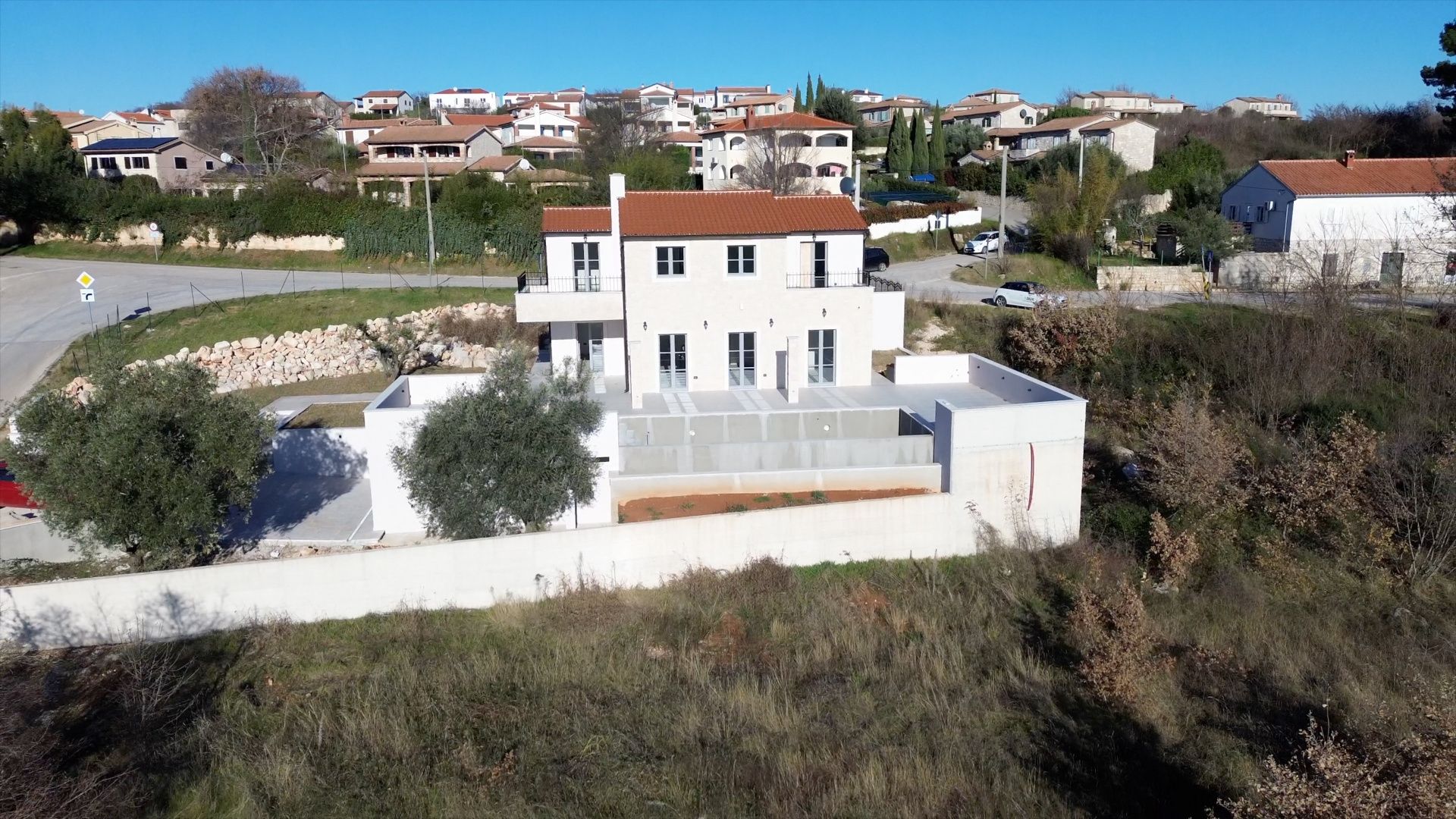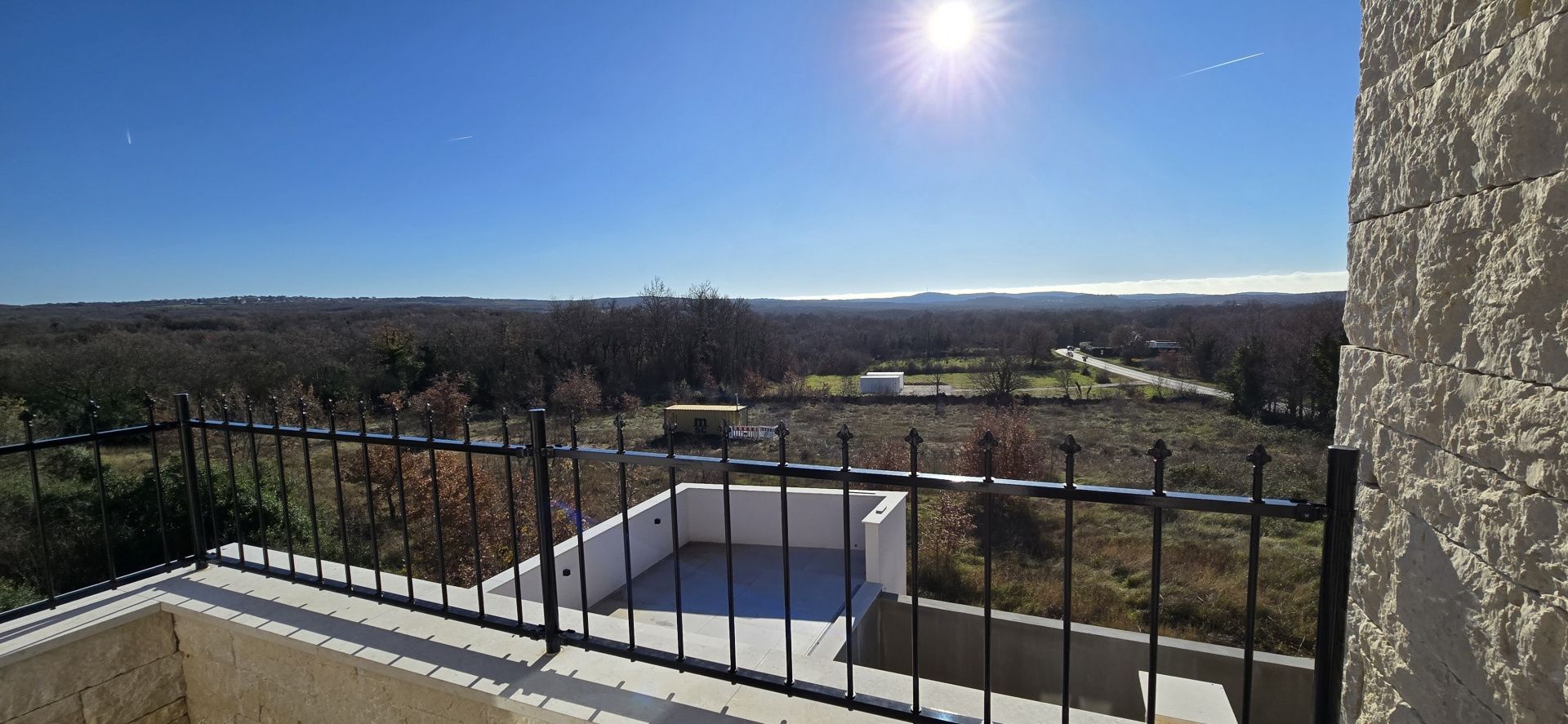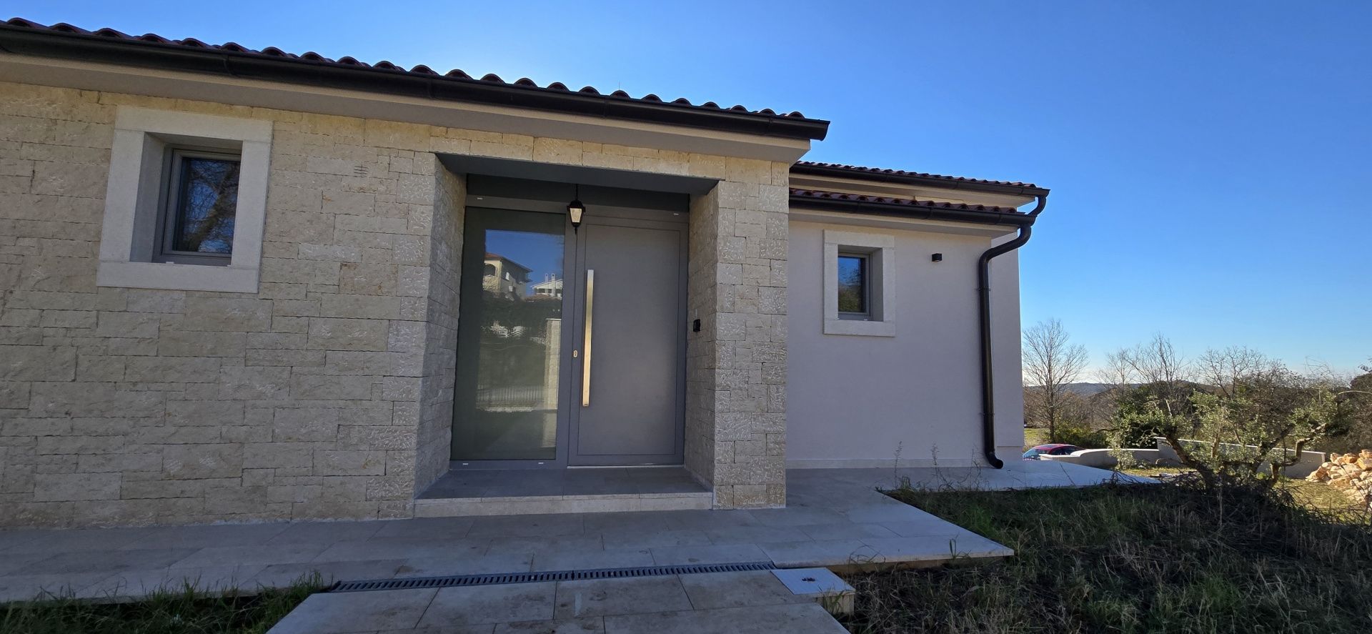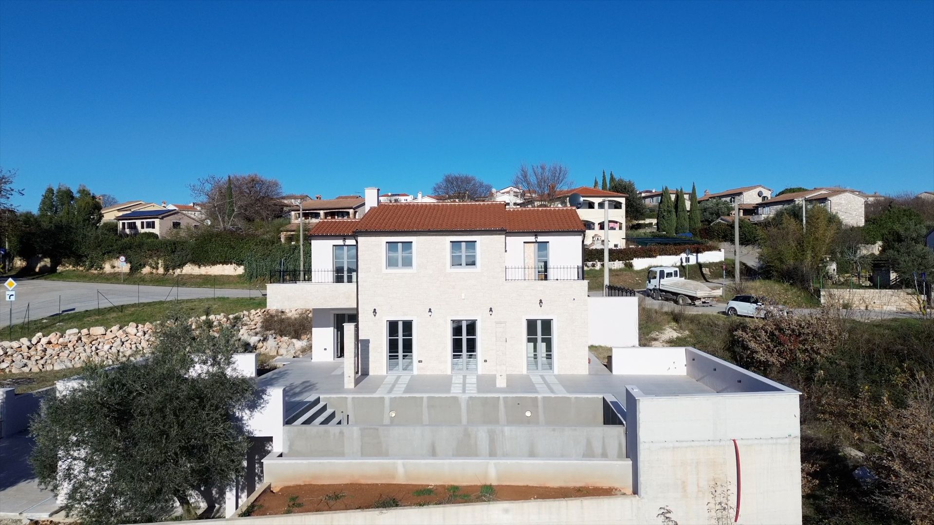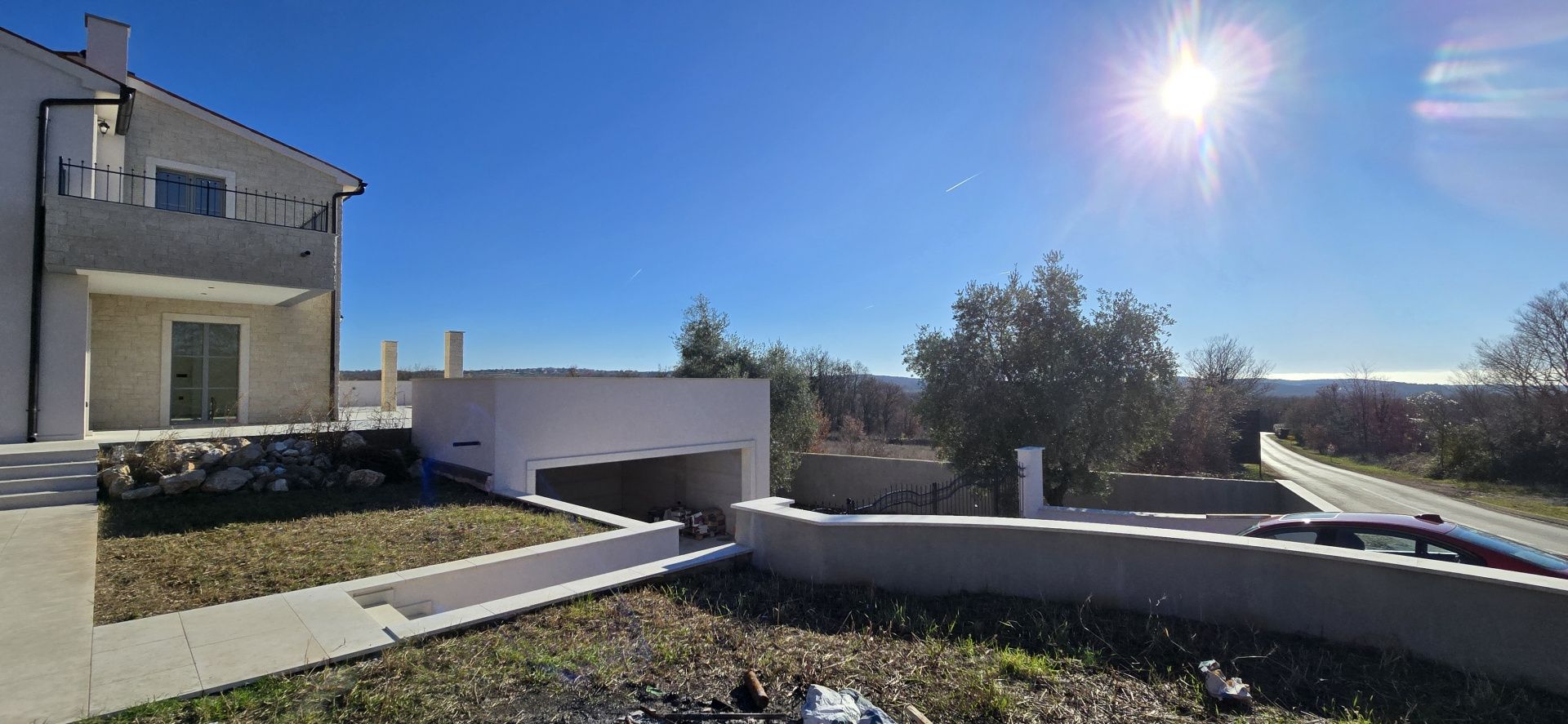 ISTRIEN, Poreč – Neubau-Villa mit Infinity-Pool, privater Tiefgarage und traumhaftem Blick auf das Meer Unweit von Poreč auf einem sanften Hügel in Sv. Lovreč gelegen, befindet sich diese traumhafte Neubau-Villa im mediterran Stil traditioneller Steinhäuser. Das Haus bietet einen unverbaubaren Meerblick auf die Bucht von Vrsar und Poreč. Die Villa bietet eine absolute Top-Ausstattung mit riesigem Infinity-Pool, weitläufige Terrassenflächen, umlaufende große dem Landesstil typische Fenster, im Erdgeschoss alle bodentief. Als weiteres besonderes Highlight verfügt die Villa über sehr seltene Tiefgarage in welcher 2 Fahrzeuge Platz finden, 2 weitere Fahrzeuge können auf der großen Einfahrt vor der Garage abgestellt werden. Das Garagentor öffnet elektrisch. Ein weiterer Stellplatz bspw. für den Housekeeping-Service befindet sich gleich neben dem Haupteingang der Villa. Eine Treppenanlage und Zuwegung aus Naturstein verbindet die Tiefgarage mit dem Hauptgebäude. Auf dem Grundstück von 1171 m2 befindet sich ein Neubau mit Schwimmbad und Garage mit einer Wohn- und Nutzfläche von 303,10 m2 inkl. Garagenfläche. Die reine Wohnfläche des Hauses beträgt 210,51 m2, die Garage hat eine Nutzfläche von 31,35 m2. Zusätzlich gibt es noch eine Nutzfläche mit rund 61,24 m2. Zusätzlich zu diversen Balkonen und überdachten Terrassen bietet die Villa eine Sonnenterrasse von weiteren 92,59 m2 rund um den knapp 10m langen Swimmingpool der als echter Überlauf-Pool (Infinity-Pool) in Richtung Meer ausgeführt wurde. Die Eingangsebene mit dem Hausanschlussraum und Hauswirtschaftsraum sowie einem Gäste-WC bietet eine Garderobe und eröffnet im Splitt-Level Bau den Weg in die offen gestaltete Wohnebene (Erdgeschoss) und die Privatebene (Obergeschoss). Das Erdgeschoss besteht aus einem Flur mit Treppe, zwei Schlafzimmern mit direktem Bad en-Suite, einem Wohnzimmer mit Esszimmer und offener Küche. Die Schlafzimmer verfügen zudem über direkten Zugang zu Terrassenflächen. Küche mit Esszimmer und das geräumige Wohnzimmer nach dem Open-Space-Konzept mit direktem Zugang zur Terrasse, wo sich eine Sommerküche und ein großer Infinity-Pool mit einer Gesamtfläche von 34,56 m2 befinden, ein Garten, der sich ideal zum Unterhalten und Entspannen eignet mit Freunden und Familie. Die erste Etage dieser schönen Villa besteht aus einem Flur, drei Schlafzimmern und zwei Badezimmern. Ein Schlafzimmer verfügt über ein eigenes Bad und Zugang zur Terrasse mit wunderschönem Blick in die Natur und Meerblick. Der Familienbereich besteht aus 2 Schlafzimmern mit einem großen gemeinsamen Bad, jeweils en-suite. Ein weiteres Schlafzimmer für einen weiteren Gästebereich verfügt über ein weiteres Bad und eine gemütliche Dachterrasse. Alle Bäder verfügen über Dusche und WC. Insgesamt stehen somit 5 Schlafzimmer für 10 Personen zur Verfügung sowie insgesamt 3 Bäder und 1 zusätzliches Gäste-WC. Insgesamt verfügt das Anwesen über 4 Toiletten. ZUSÄTZLICHE INFORMATIONEN: - Wärmepumpen zum Heizen und Kühlen des gesamten Objektes - 3-fach verglaste Fenster - Wärmedämmverbundsystem - Videoüberwachung rundum - Satellitenanlage mit Anschluss für 6 TV - Hochwertiges Schalterprogramm in der Farbe Anthrazit - Die umliegenden Wege Das Haus aus Naturstein wie an der Fassade - Hochwertige Porzellan Keramik aus Indien (Format 120x60cm) im gesamten Objekt - Hochwertiger gefliester Infinity-Pool (Objektkeramik) - Terrassen ebenfalls mit gleicher Objektkeramik - gemauerter Schornstein zum Anschluss eines Indoor sowie Outdoor Kamins - umfangreiche Aussenbeleuchtung Die Fertigstellung der Bauarbeiten ist für Ende 2024 geplant. Der angegebene Preis gilt für das fertige Haus. Die Gartengestaltung sowie die Malerarbeiten im Inneren des Hauses sind in diesem Preis nicht enthalten. Alle Einrichtungen, wie Geschäfte, Restaurants, Schulen und andere befinden sich in unmittelbarer Nähe. Diese Villa stellt eine ausgezeichnete Gelegenheit für das Familienleben, einen luxuriösen Urlaub im mediterranen Klima oder als finanzielle Investition zur Vermietung dar.