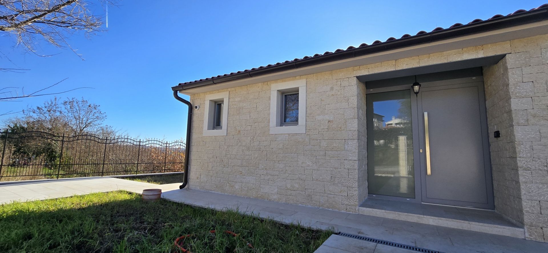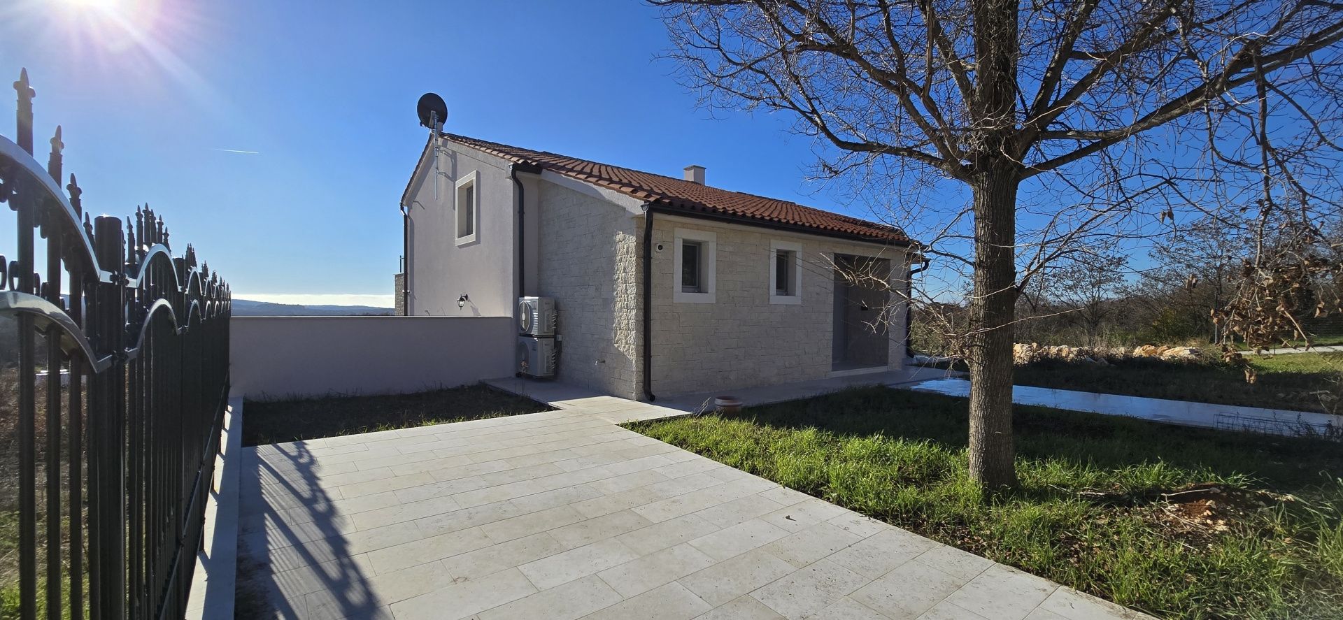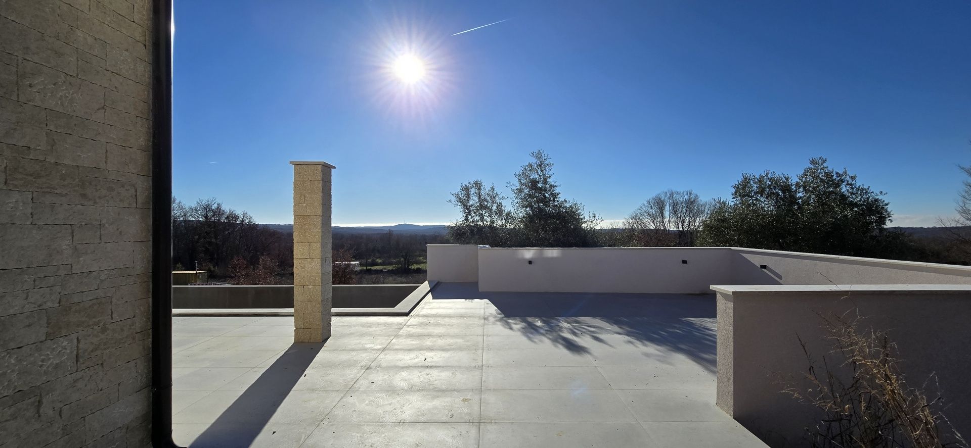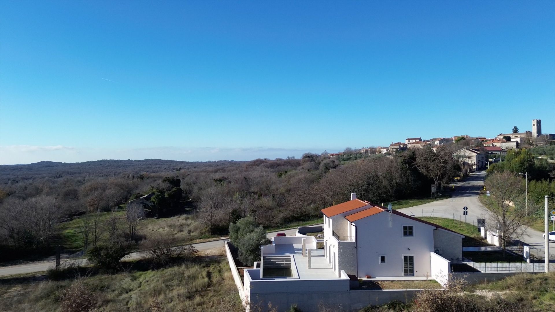 ISTRIEN, Poreč – Neubau-Villa mit Infinity-Pool, privater Tiefgarage und traumhaftem Blick auf das Meer Unweit von Poreč auf einem sanften Hügel in Sv. Lovreč gelegen, befindet sich diese traumhafte Neubau-Villa im mediterran Stil traditioneller Steinhäuser. Das Haus bietet einen unverbaubaren Meerblick auf die Bucht von Vrsar und Poreč. Die Villa bietet eine absolute Top-Ausstattung mit riesigem Infinity-Pool, weitläufige Terrassenflächen, umlaufende große dem Landesstil typische Fenster, im Erdgeschoss alle bodentief. Als weiteres besonderes Highlight verfügt die Villa über sehr seltene Tiefgarage in welcher 2 Fahrzeuge Platz finden, 2 weitere Fahrzeuge können auf der großen Einfahrt vor der Garage abgestellt werden. Das Garagentor öffnet elektrisch. Ein weiterer Stellplatz bspw. für den Housekeeping-Service befindet sich gleich neben dem Haupteingang der Villa. Eine Treppenanlage und Zuwegung aus Naturstein verbindet die Tiefgarage mit dem Hauptgebäude. Auf dem Grundstück von 1171 m2 befindet sich ein Neubau mit Schwimmbad und Garage mit einer Wohn- und Nutzfläche von 303,10 m2 inkl. Garagenfläche. Die reine Wohnfläche des Hauses beträgt 210,51 m2, die Garage hat eine Nutzfläche von 31,35 m2. Zusätzlich gibt es noch eine Nutzfläche mit rund 61,24 m2. Zusätzlich zu diversen Balkonen und überdachten Terrassen bietet die Villa eine Sonnenterrasse von weiteren 92,59 m2 rund um den knapp 10m langen Swimmingpool der als echter Überlauf-Pool (Infinity-Pool) in Richtung Meer ausgeführt wurde. Die Eingangsebene mit dem Hausanschlussraum und Hauswirtschaftsraum sowie einem Gäste-WC bietet eine Garderobe und eröffnet im Splitt-Level Bau den Weg in die offen gestaltete Wohnebene (Erdgeschoss) und die Privatebene (Obergeschoss). Das Erdgeschoss besteht aus einem Flur mit Treppe, zwei Schlafzimmern mit direktem Bad en-Suite, einem Wohnzimmer mit Esszimmer und offener Küche. Die Schlafzimmer verfügen zudem über direkten Zugang zu Terrassenflächen. Küche mit Esszimmer und das geräumige Wohnzimmer nach dem Open-Space-Konzept mit direktem Zugang zur Terrasse, wo sich eine Sommerküche und ein großer Infinity-Pool mit einer Gesamtfläche von 34,56 m2 befinden, ein Garten, der sich ideal zum Unterhalten und Entspannen eignet mit Freunden und Familie. Die erste Etage dieser schönen Villa besteht aus einem Flur, drei Schlafzimmern und zwei Badezimmern. Ein Schlafzimmer verfügt über ein eigenes Bad und Zugang zur Terrasse mit wunderschönem Blick in die Natur und Meerblick. Der Familienbereich besteht aus 2 Schlafzimmern mit einem großen gemeinsamen Bad, jeweils en-suite. Ein weiteres Schlafzimmer für einen weiteren Gästebereich verfügt über ein weiteres Bad und eine gemütliche Dachterrasse. Alle Bäder verfügen über Dusche und WC. Insgesamt stehen somit 5 Schlafzimmer für 10 Personen zur Verfügung sowie insgesamt 3 Bäder und 1 zusätzliches Gäste-WC. Insgesamt verfügt das Anwesen über 4 Toiletten. ZUSÄTZLICHE INFORMATIONEN: - Wärmepumpen zum Heizen und Kühlen des gesamten Objektes - 3-fach verglaste Fenster - Wärmedämmverbundsystem - Videoüberwachung rundum - Satellitenanlage mit Anschluss für 6 TV - Hochwertiges Schalterprogramm in der Farbe Anthrazit - Die umliegenden Wege Das Haus aus Naturstein wie an der Fassade - Hochwertige Porzellan Keramik aus Indien (Format 120x60cm) im gesamten Objekt - Hochwertiger gefliester Infinity-Pool (Objektkeramik) - Terrassen ebenfalls mit gleicher Objektkeramik - gemauerter Schornstein zum Anschluss eines Indoor sowie Outdoor Kamins - umfangreiche Aussenbeleuchtung Die Fertigstellung der Bauarbeiten ist für Ende 2024 geplant. Der angegebene Preis gilt für das fertige Haus. Die Gartengestaltung sowie die Malerarbeiten im Inneren des Hauses sind in diesem Preis nicht enthalten. Alle Einrichtungen, wie Geschäfte, Restaurants, Schulen und andere befinden sich in unmittelbarer Nähe. Diese Villa stellt eine ausgezeichnete Gelegenheit für das Familienleben, einen luxuriösen Urlaub im mediterranen Klima oder als finanzielle Investition zur Vermietung dar.