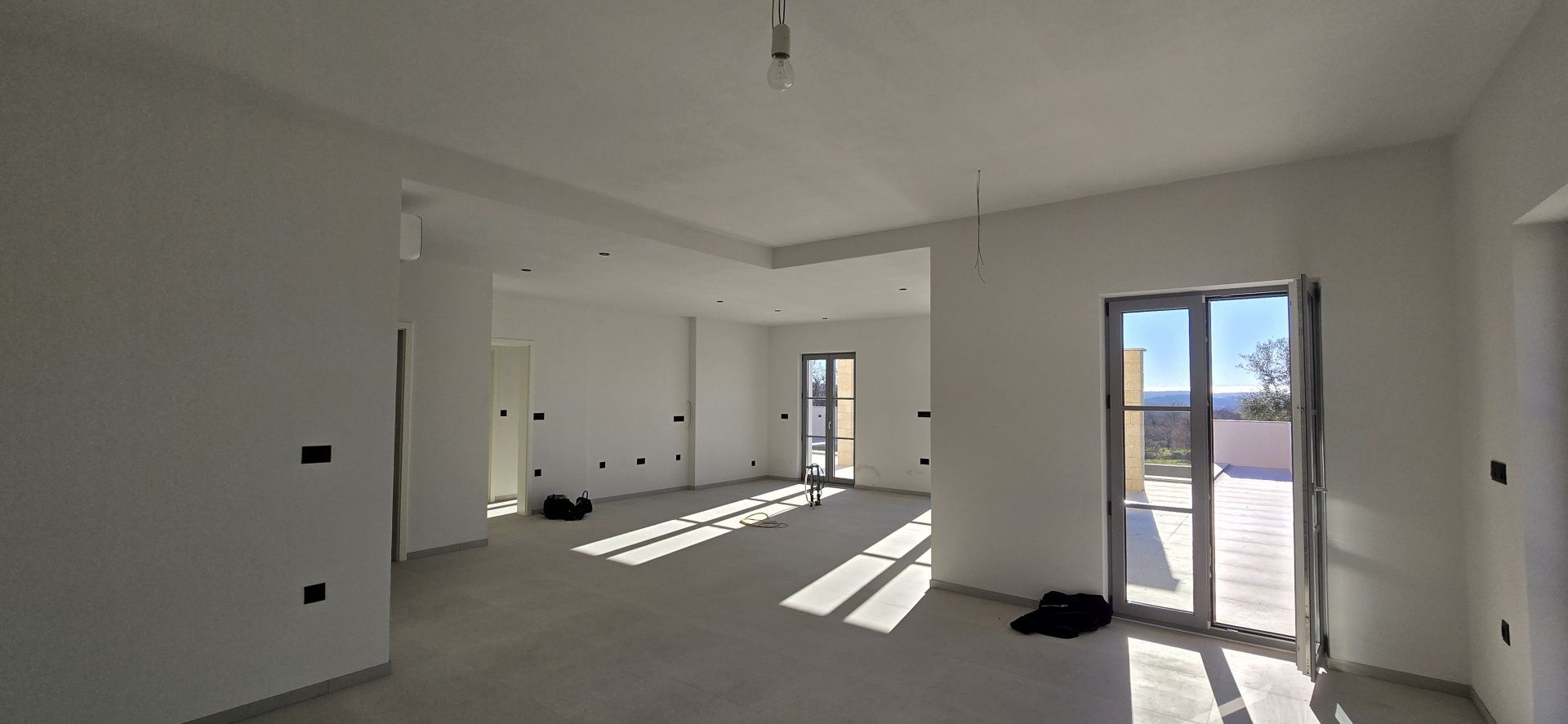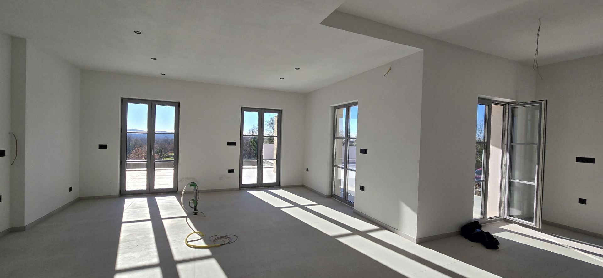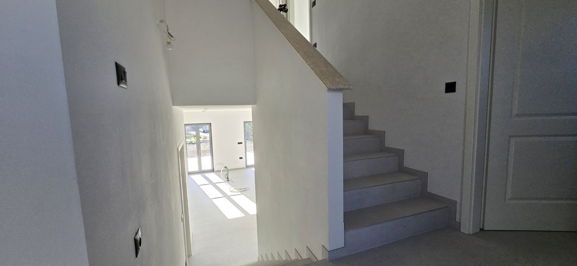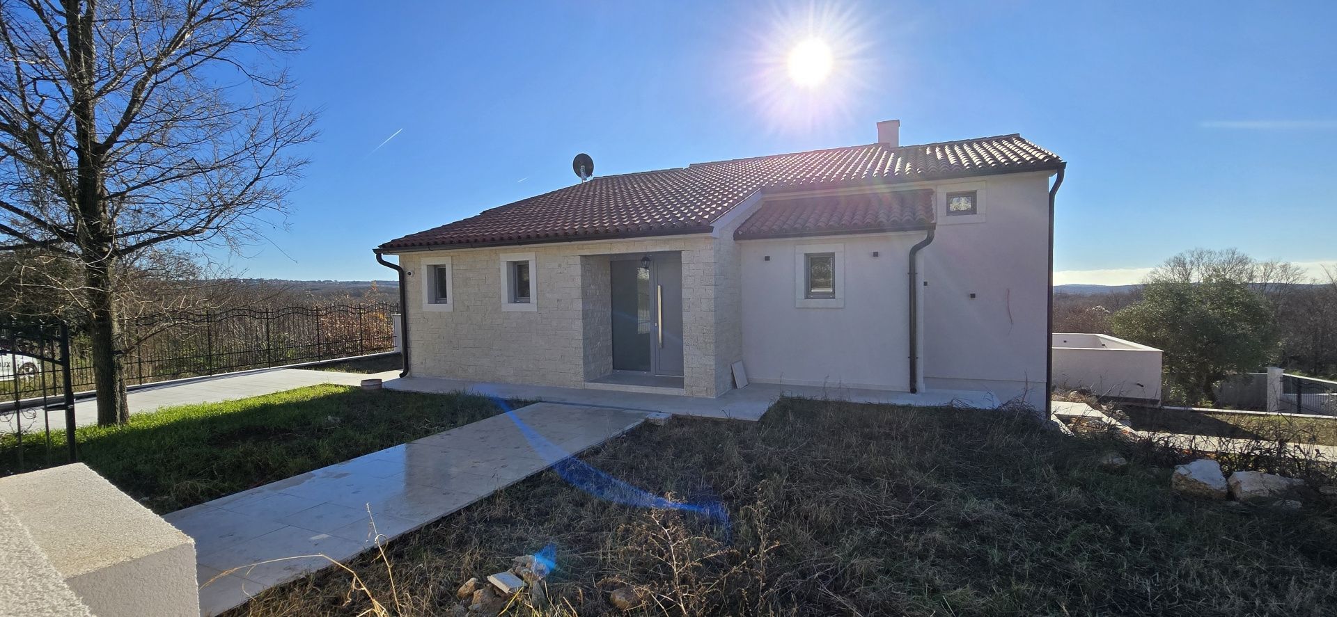 ISTRIEN, Poreč – Neubau-Villa mit Infinity-Pool, privater Tiefgarage und traumhaftem Blick auf das Meer Unweit von Poreč auf einem sanften Hügel in Sv. Lovreč gelegen, befindet sich diese traumhafte Neubau-Villa im mediterran Stil traditioneller Steinhäuser. Das Haus bietet einen unverbaubaren Meerblick auf die Bucht von Vrsar und Poreč. Die Villa bietet eine absolute Top-Ausstattung mit riesigem Infinity-Pool, weitläufige Terrassenflächen, umlaufende große dem Landesstil typische Fenster, im Erdgeschoss alle bodentief. Als weiteres besonderes Highlight verfügt die Villa über sehr seltene Tiefgarage in welcher 2 Fahrzeuge Platz finden, 2 weitere Fahrzeuge können auf der großen Einfahrt vor der Garage abgestellt werden. Das Garagentor öffnet elektrisch. Ein weiterer Stellplatz bspw. für den Housekeeping-Service befindet sich gleich neben dem Haupteingang der Villa. Eine Treppenanlage und Zuwegung aus Naturstein verbindet die Tiefgarage mit dem Hauptgebäude. Auf dem Grundstück von 1171 m2 befindet sich ein Neubau mit Schwimmbad und Garage mit einer Wohn- und Nutzfläche von 303,10 m2 inkl. Garagenfläche. Die reine Wohnfläche des Hauses beträgt 210,51 m2, die Garage hat eine Nutzfläche von 31,35 m2. Zusätzlich gibt es noch eine Nutzfläche mit rund 61,24 m2. Zusätzlich zu diversen Balkonen und überdachten Terrassen bietet die Villa eine Sonnenterrasse von weiteren 92,59 m2 rund um den knapp 10m langen Swimmingpool der als echter Überlauf-Pool (Infinity-Pool) in Richtung Meer ausgeführt wurde. Die Eingangsebene mit dem Hausanschlussraum und Hauswirtschaftsraum sowie einem Gäste-WC bietet eine Garderobe und eröffnet im Splitt-Level Bau den Weg in die offen gestaltete Wohnebene (Erdgeschoss) und die Privatebene (Obergeschoss). Das Erdgeschoss besteht aus einem Flur mit Treppe, zwei Schlafzimmern mit direktem Bad en-Suite, einem Wohnzimmer mit Esszimmer und offener Küche. Die Schlafzimmer verfügen zudem über direkten Zugang zu Terrassenflächen. Küche mit Esszimmer und das geräumige Wohnzimmer nach dem Open-Space-Konzept mit direktem Zugang zur Terrasse, wo sich eine Sommerküche und ein großer Infinity-Pool mit einer Gesamtfläche von 34,56 m2 befinden, ein Garten, der sich ideal zum Unterhalten und Entspannen eignet mit Freunden und Familie. Die erste Etage dieser schönen Villa besteht aus einem Flur, drei Schlafzimmern und zwei Badezimmern. Ein Schlafzimmer verfügt über ein eigenes Bad und Zugang zur Terrasse mit wunderschönem Blick in die Natur und Meerblick. Der Familienbereich besteht aus 2 Schlafzimmern mit einem großen gemeinsamen Bad, jeweils en-suite. Ein weiteres Schlafzimmer für einen weiteren Gästebereich verfügt über ein weiteres Bad und eine gemütliche Dachterrasse. Alle Bäder verfügen über Dusche und WC. Insgesamt stehen somit 5 Schlafzimmer für 10 Personen zur Verfügung sowie insgesamt 3 Bäder und 1 zusätzliches Gäste-WC. Insgesamt verfügt das Anwesen über 4 Toiletten. ZUSÄTZLICHE INFORMATIONEN: - Wärmepumpen zum Heizen und Kühlen des gesamten Objektes - 3-fach verglaste Fenster - Wärmedämmverbundsystem - Videoüberwachung rundum - Satellitenanlage mit Anschluss für 6 TV - Hochwertiges Schalterprogramm in der Farbe Anthrazit - Die umliegenden Wege Das Haus aus Naturstein wie an der Fassade - Hochwertige Porzellan Keramik aus Indien (Format 120x60cm) im gesamten Objekt - Hochwertiger gefliester Infinity-Pool (Objektkeramik) - Terrassen ebenfalls mit gleicher Objektkeramik - gemauerter Schornstein zum Anschluss eines Indoor sowie Outdoor Kamins - umfangreiche Aussenbeleuchtung Die Fertigstellung der Bauarbeiten ist für Ende 2024 geplant. Der angegebene Preis gilt für das fertige Haus. Die Gartengestaltung sowie die Malerarbeiten im Inneren des Hauses sind in diesem Preis nicht enthalten. Alle Einrichtungen, wie Geschäfte, Restaurants, Schulen und andere befinden sich in unmittelbarer Nähe. Diese Villa stellt eine ausgezeichnete Gelegenheit für das Familienleben, einen luxuriösen Urlaub im mediterranen Klima oder als finanzielle Investition zur Vermietung dar.