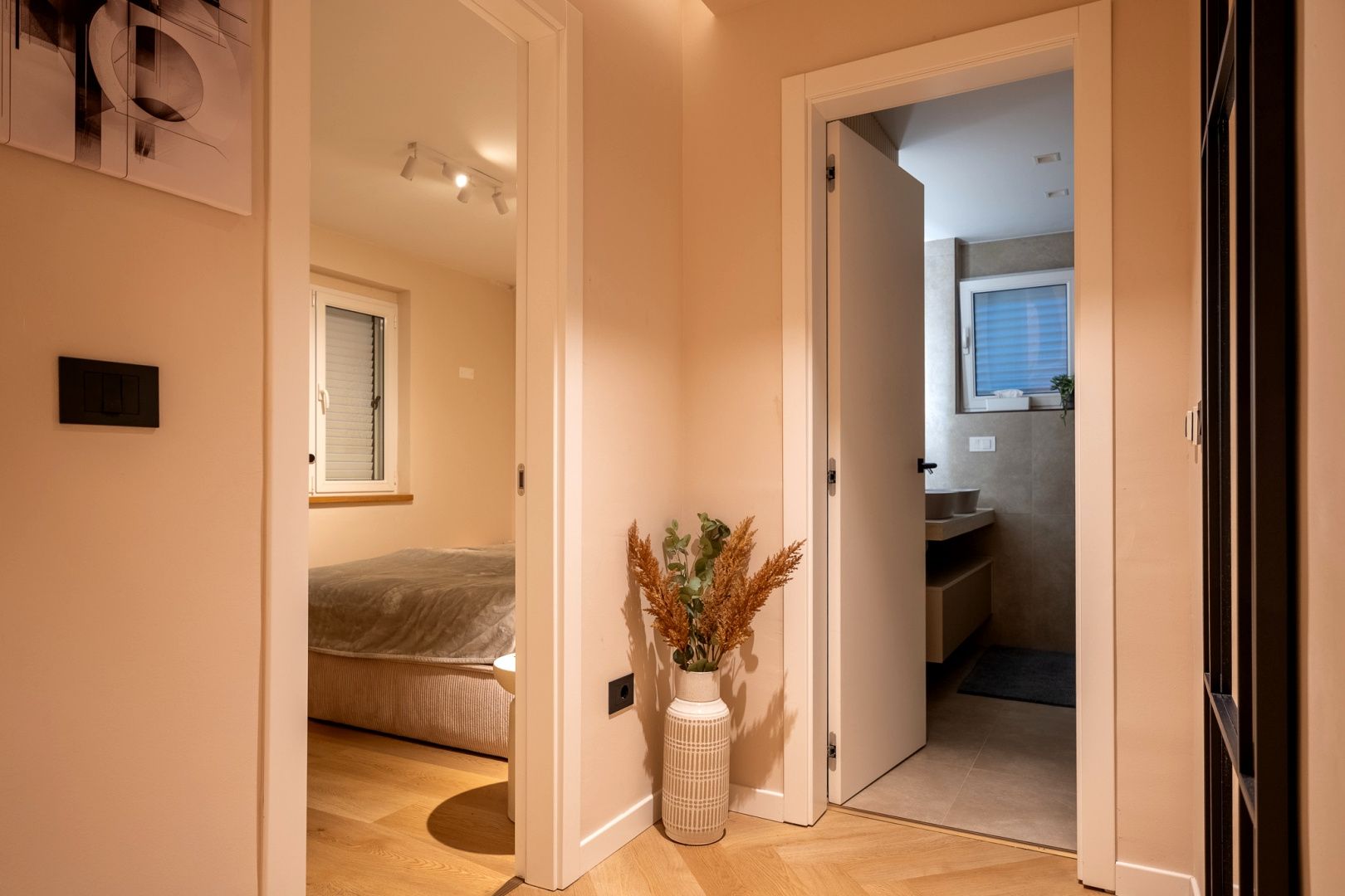 ISTRIEN, POREČ – Haus mit großzügigem Garten Eingebettet in ein angenehmes mediterranes Klima, im Herzen der westistrischen Küste, erstreckt sich die historische Stadt Poreč mit ihrer unberührten Küstenlinie, gepflegten Parks, Pinien- und Eichenhainen, die bis ans Meer reichen, über eine Fläche von 139 km² und besteht aus 58 Ortschaften. Hier wechseln sich kristallklares Wasser, Strände, Buchten und Inseln ab. Poreč ist eine lebendige Küstenstadt mit vielfältigen Kultur-, Sport- und Unterhaltungsmöglichkeiten sowie herzlicher Gastfreundschaft. Sie zählt zu den attraktivsten Städten Kroatiens und vereint auf einzigartige Weise die natürliche Schönheit Istriens, ein reiches kulturelles und historisches Erbe mit modernstem Komfort. Die harmonische Verbindung der Altstadt, einem Kulturdenkmal, mit einem der berühmtesten istrischen Kulturdenkmäler, der Euphrasius-Basilika (UNESCO-Welterbe), und den bestens gepflegten und ausgestatteten Ferienanlagen an der Adria bildet ein Mosaik unvergesslicher Erlebnisse. Poreč ist weit mehr als nur ein Sommerreiseziel mit Sonne und Meer. Poreč ist eine Stadt, die auf die Bedürfnisse ihrer Bewohner zugeschnitten ist. Eine Stadt, in der ständig nach Verbesserungen der Lebensbedingungen und Fortschritt in verschiedenen Bereichen gestrebt wird. Eine angenehme, sichere und gepflegte Stadt, in der sich jeder wohlfühlt – eine Stadt ohne Zusatzsteuern und mit hohem sozialen Engagement für alle Generationen. Unweit von Poreč steht ein Haus mit großem Garten zum Verkauf. Es liegt in einer ruhigen, naturnahen Gegend, umgeben von Einfamilienhäusern und Ferienhäusern und bietet die perfekte Balance zwischen ländlicher Idylle und der Nähe zum Meer sowie städtischen Annehmlichkeiten. Das komfortable Einfamilienhaus erstreckt sich über zwei Etagen: Erdgeschoss und Obergeschoss. Das Erdgeschoss umfasst ein Wohnzimmer, eine Küche, ein Esszimmer, zwei Schlafzimmer, ein Badezimmer, einen Hauswirtschaftsraum und einen Abstellraum. Das Obergeschoss besteht aus einem Flur, vier Zimmern und zwei Badezimmern. Jede Etage verfügt über einen separaten Eingang. Das Erdgeschoss wurde komplett renoviert, während das Obergeschoss renovierungsbedürftig ist, um das Potenzial der Immobilie optimal auszuschöpfen. Der großzügige Garten mit 24 Olivenbäumen befindet sich vollständig innerhalb des bebauten Gebiets einer Wohnsiedlung. Der angegebene Preis bezieht sich auf den unmöblierten Ausbau, inklusive Einbauküche, elektrischer Fußbodenheizung im gesamten Erdgeschoss, Samsung Wind-Free Klimaanlage, Einbauschränken, Badezimmerschränken und Sanitäreinrichtungen des renommierten Herstellers Ideal Standard im Erdgeschoss. So können Sie die Immobilie ganz nach Ihren Wünschen und Vorlieben gestalten. Es besteht die Möglichkeit, die Immobilie komplett ausgestattet und möbliert zu erwerben. Der Preis wird entsprechend angepasst.
