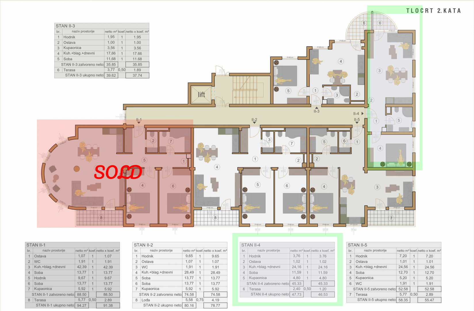 ISTRIEN, PULA – Nicht weit vom Stadtzentrum und der berühmten Veruda entfernt befindet sich in einer ruhigen Straße ein hochwertiges neues Gebäude. Wir sind stolz, Ihnen ein neues Bauprojekt an einem interessanten Ort in der Stadt Pula vorstellen zu können. Das Gebäude liegt nämlich nur 3 Autominuten vom Stadtzentrum entfernt und auch nur 5 Autominuten vom berühmten Touristenort Verudela. Das Gebäude befindet sich in ruhiger Lage, ohne viel Verkehr in der Nähe seiner für den täglichen Bedarf notwendigen Inhalte. Das Gebäude besteht aus mehreren Wohneinheiten, die sich vom Erdgeschoss des Gebäudes bis zum 3. Obergeschoss erstrecken. Neben dem Gebäude gibt es Parkplätze im Garten des Gebäudes sowie in der Garage des Gebäudes. Zukünftige Wohnungseigentümer haben die Möglichkeit, einen Parkplatz für ihre Haustiere zu wählen. BESCHREIBUNG DER WOHNUNG; Somit sind wir stolz, Ihnen in diesem Gebäude eine Wohnung im 2. Obergeschoss präsentieren zu können, die insgesamt über 46,53m2 Nettonutzfläche verfügt. Die Wohnung ist so organisiert, dass der Eingang zur Wohnung über einen Flur verfügt, der den Wohnungsraum in einen privaten Raum und einen Raum für das tägliche Leben und Unterhaltung trennt. So befinden sich im privaten Bereich der Wohnung 1 geräumiges Schlafzimmer, ein größeres Badezimmer und ein kleinerer Abstellraum. Der Raum für das tägliche Leben ist als größerer „Open Space“-Raum konzipiert und verfügt über eine geräumige Küche, ein gemütliches Esszimmer und ein größeres Wohnzimmer. Der gesamte Raum ist mit natürlichem Licht durchflutet, das durch große Glaswände in die Wohnung eindringt. Vom Wohnzimmer gibt es einen Ausgang zur Außenterrasse. * Kunden haben die Möglichkeit, einen Parkplatz entweder im Garten des Gebäudes oder im Garten des Gebäudes zu kaufen; - Parkplatz im Garten des Gebäudes; 8.290,00 € - Parkplatz im Garten je nach Quadratmeterzahl: von 21.670,00 € bis 49.390,00 € - Abstellraum je nach Quadratmeterzahl; von 10.430,00 € bis 13.990,00 € TECHNISCHE UND WEITERE DATEN; * Jede Wohnung im Gebäude wird mit einer elektrischen Fußbodenheizung ausgestattet. * Hochwertige PVC-Tischlerei wird installiert. * Fassadendämmung 10 cm. * Das Gebäude verfügt über einen Aufzug, der die Garage mit jeder Etage des Gebäudes verbindet. * Hochwertige Keramik wird installiert auf den Böden installiert (Kunden haben vorerst die Möglichkeit, Einfluss zu nehmen!) * Einzugsmöglichkeit ist für Anfang 2025 geplant. STANDORTBESCHREIBUNG; Das Gebäude befindet sich in ruhiger Lage in der Stadt Pula, nur 3 Autominuten vom Stadtzentrum und nur 5 Autominuten vom berühmten Touristenort Verudela entfernt. Auf Verudela finden Sie zahlreiche Fels- und Steinstrände mit kristallklarem Meer, und in unmittelbarer Nähe des Gebäudes gibt es zahlreiche Restaurants, Cafés, sowie einen Markt, neben dem Gebäude gibt es auch einen kleinen Laden, sowie alles, was Sie für einen sicheren und ruhigen Alltag des modernen Menschen benötigen. Kurz gesagt, es handelt sich um eine Immobilie, die Ihre Aufmerksamkeit verdient und als ideale Option für eine private Investition oder als Option für ein echtes Einfamilienhaus dienen kann. Für weitere Fragen, notwendige Informationen oder den Wunsch, einen Termin zur Besichtigung des Standortes und des aktuellen Baustatus zu vereinbaren, nehmen Sie gerne Kontakt mit uns auf!