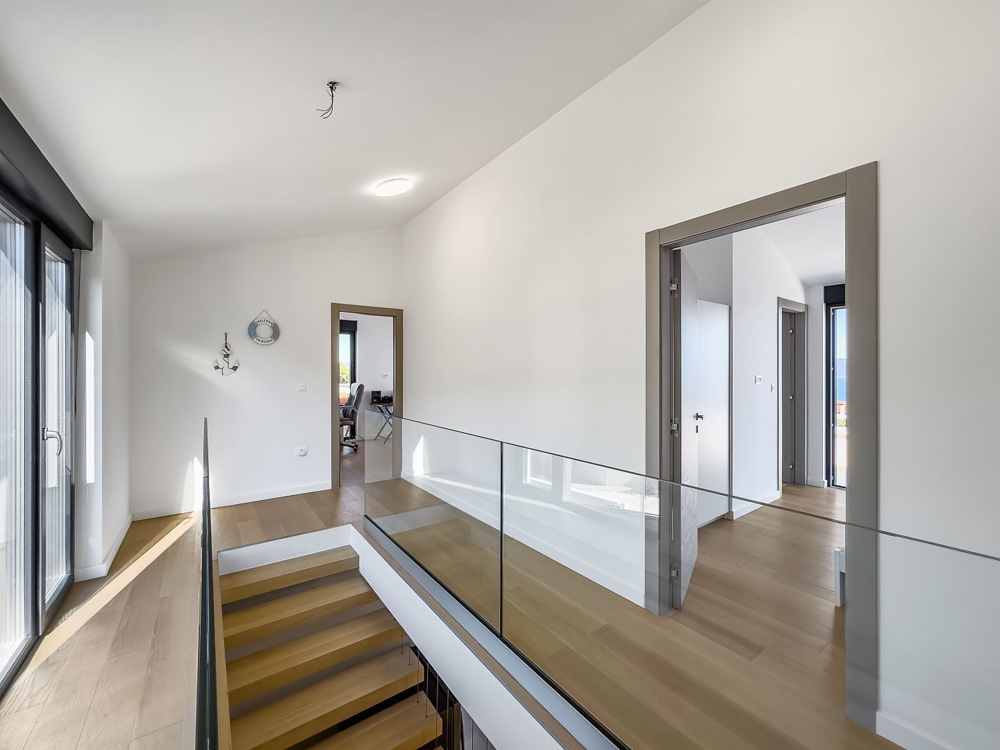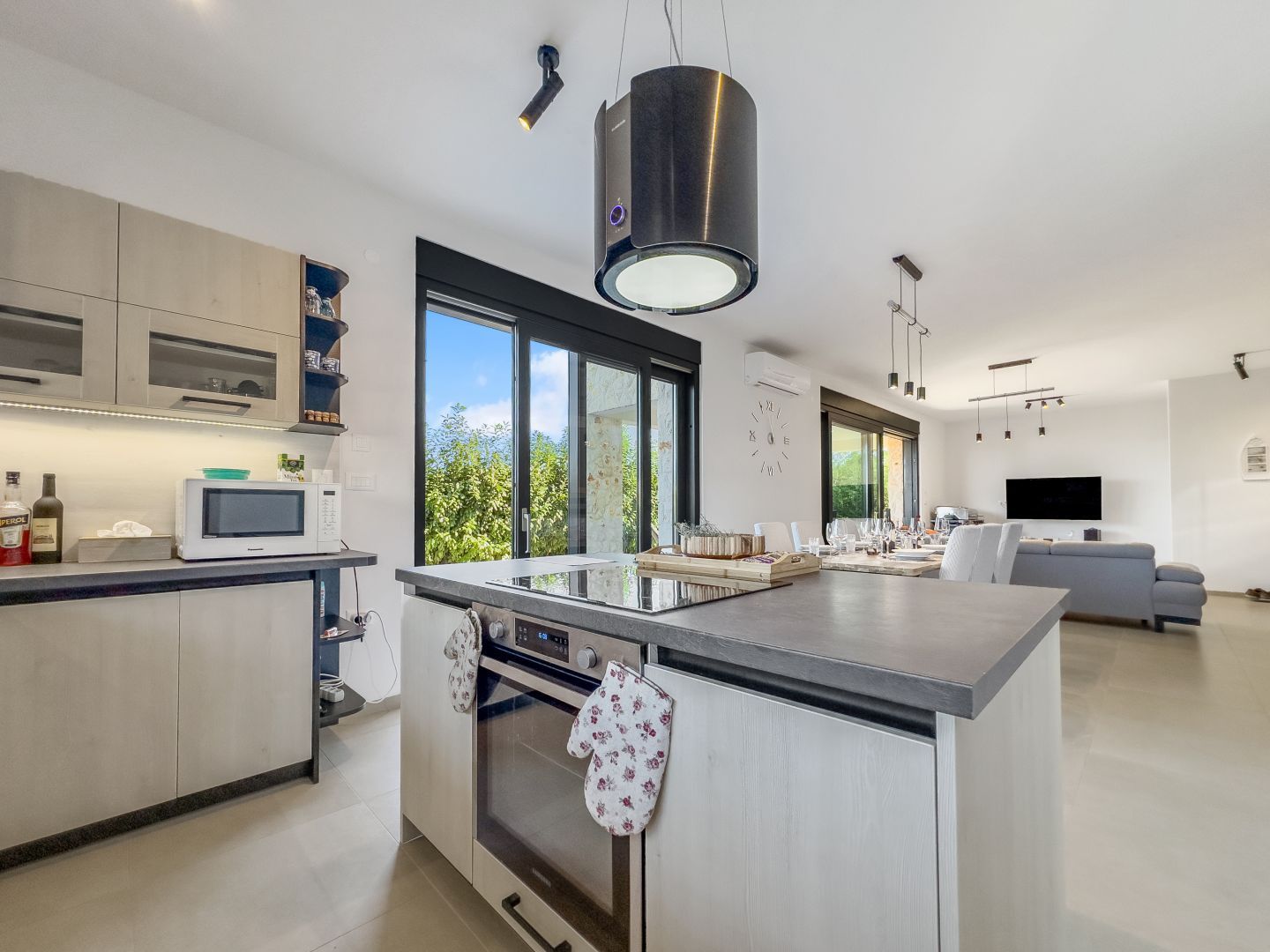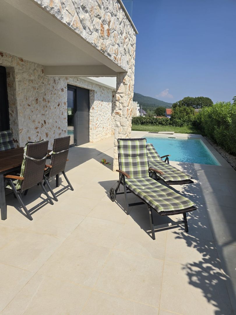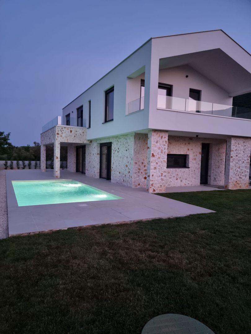 ISTRIEN, RABAC – Exklusive Neubauvilla mit spektakulärem Meerblick Auf halbem Weg zwischen Pula und Opatija, hoch über der Küste Istriens, liegt die Stadt Labin. Der mittelalterliche Kern war in den 1950er und 1960er Jahren ein Zentrum des Kohlebergbaus. Es ist ein Ort, an dem Geschichte und Moderne aufeinandertreffen. Zauberhafte Buchten, grandiose Gastronomie, herzliche und lebenslustige Einwohner prägen diese Stadt, die sich zu einem beliebten Reiseziel für Gäste aus dem deutschsprachigen Raum entwickelt hat. Ein herzliches Willkommen ist hier garantiert. Stellen Sie sich vor, Sie wachen jeden Morgen mit einem fantastischen Blick auf das Meer und die Inseln auf. Klingt wie ein Traum, oder? Mit dieser Villa werden Ihre Träume wahr... Unweit von Labin und Rabac, in einer von Ferienvillen dominierten Lage, wartet diese exklusive Villa mit eben solch einer Aussicht, Baujahr 2022, auf ihren neuen Besitzer! Auf 165 m2 Wohnfläche, die sich über das Erdgeschoss und den ersten Stock erstrecken, genießen Sie sämtlichen Komfort dieser modernen Villa. Das gesamte Erdgeschoss ist als offener Raum konzipiert und umfasst eine modern ausgestattete Küche mit Essbereich sowie ein geräumiges, helles Wohnzimmer. Große Glasschiebewände sorgen für Tageslicht und sorgen für einen angenehmen Aufenthalt, während das Zimmer geräumiger wirkt. Die bereits erwähnte Glaswand sorgt für eine hervorragende Kommunikation zwischen dem Erdgeschoss und dem Außenbereich der Villa. Außerdem gibt es im Erdgeschoss ein Badezimmer und einen Abstellraum. Über eine Innentreppe gelangen Sie in den ersten Stock, wo sich drei komfortable und modern eingerichtete Schlafzimmer befinden, jedes mit eigenem Bad, sodass die Privatsphäre aller Haushaltsmitglieder gewährleistet ist. Jedes Schlafzimmer verfügt außerdem über einen großzügigen Balkon, von dem Sie den uneingeschränkten Blick auf das Meer und die Inseln der Adria genießen können. Abgerundet wird das Ganze dieser modernen Villa durch einen 555 m2 großen Landschaftsgarten. Den zentralen Teil des Innenhofs nimmt ein einzigartiger Swimmingpool mit Liegewiese ein, der an warmen Tagen zur Abkühlung einlädt. Wenn Ihnen das Schwimmen im Pool zu langweilig wird, gehen Sie zum nächsten Strand, der nur 1 km von dieser Villa entfernt ist! Die Villa verfügt über zwei Parkplätze für Ihre Haustiere. Um zusätzliche Sicherheit zu gewährleisten, wurde eine Alarmanlage und eine Videoüberwachung installiert. Die Villa ist aus hochwertigen Materialien gebaut, mit 15–20 cm dickem istrischen Stein verkleidet und verfügt über große Gealan-Öffnungen und elektrische Rollläden. Es ist mit einer Klimaanlage in jedem Zimmer und einer Fußbodenheizung über eine Wärmepumpe ausgestattet. Dieses Haus bietet maximalen Komfort in einer sehr attraktiven Nachbarschaft und die Aussicht, die diese Villa bietet, wird jeden Ihrer Tage zu etwas Besonderem machen! Gelegenheit!!!