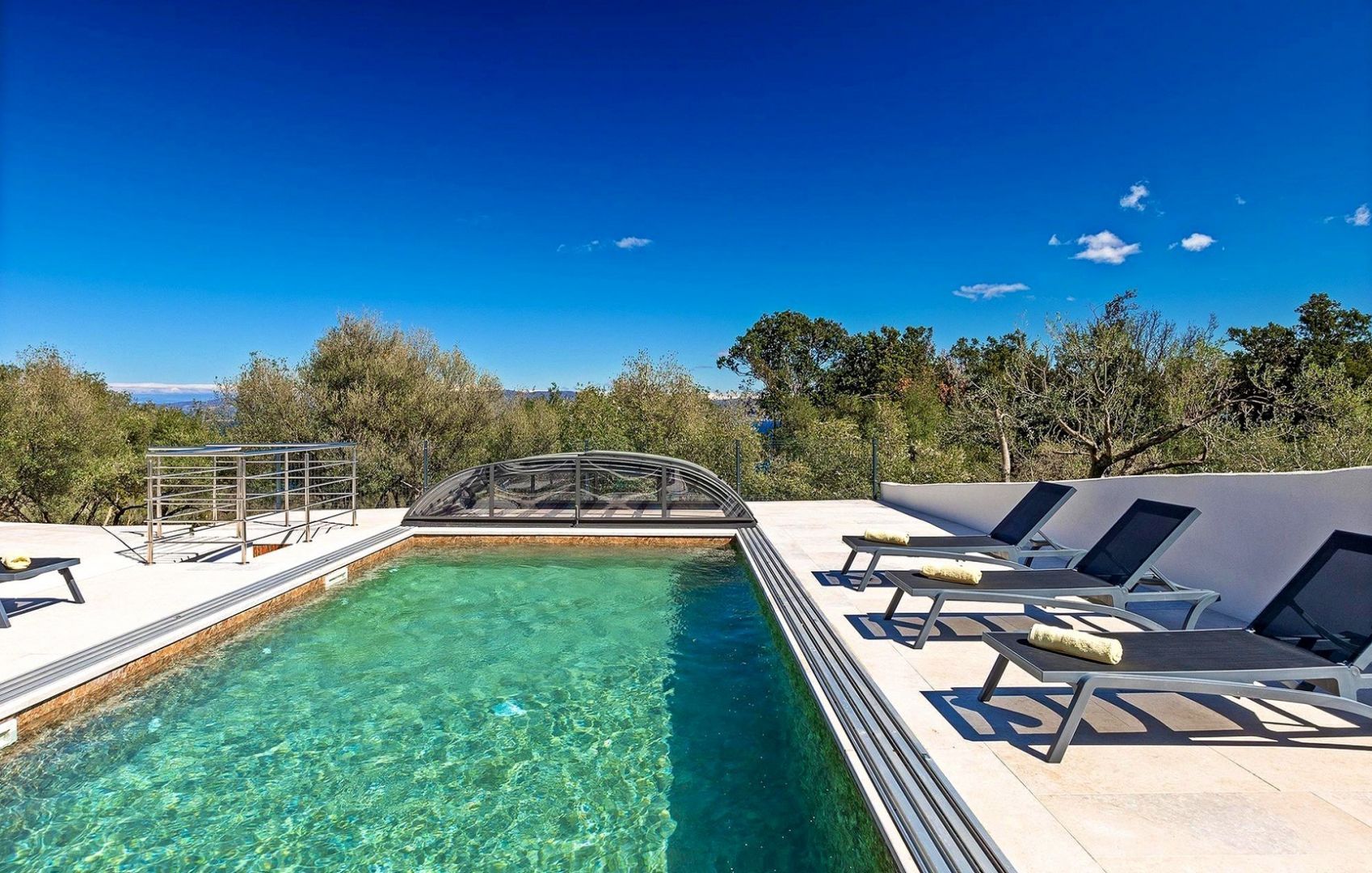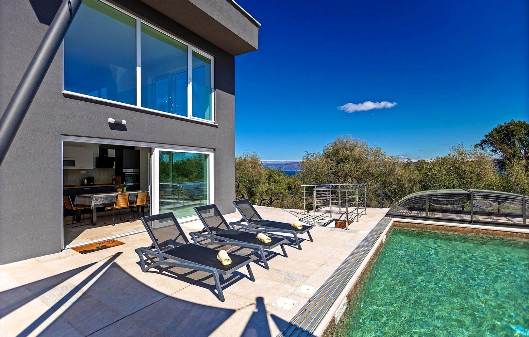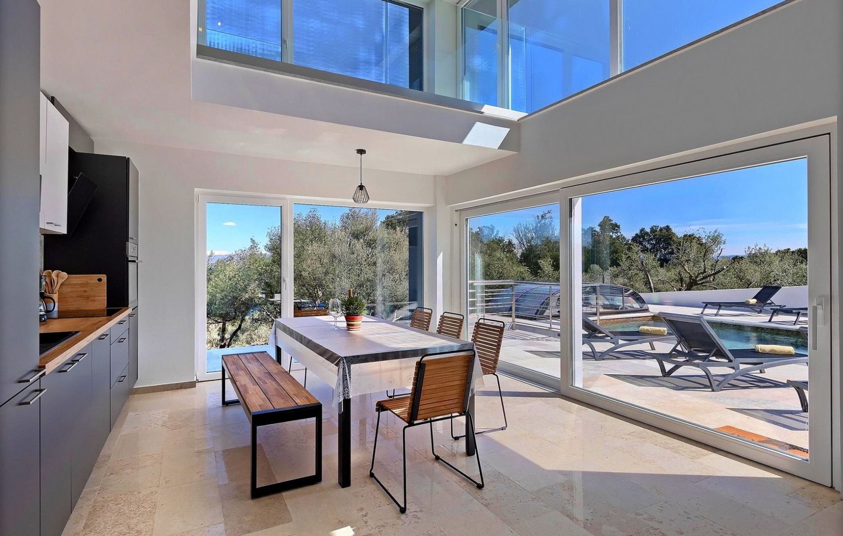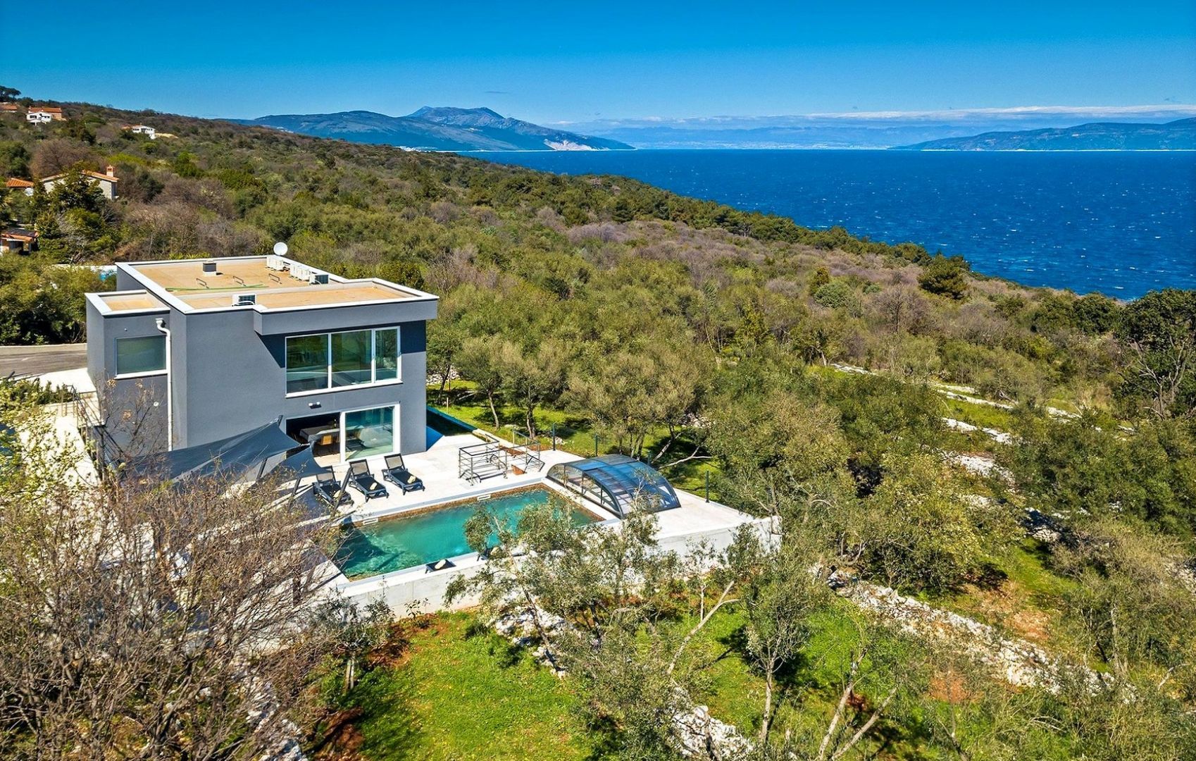 ISTRIEN, RABAC - Villa mit Panoramablick auf das Meer An der südöstlichen Küste Istriens, wo grüne Hügel auf das Meer treffen, wo Natur und Erbe zusammenkommen, gibt es zwei Städte ähnlicher Größe mit unterschiedlichen, sich aber gegenseitig ergänzenden Charakteren – Labin und Rabac, nur vier Kilometer voneinander entfernt. Rabac wird wegen seiner weißen Kiesstrände, der üppigen mediterranen Vegetation und dem kristallklaren Meer auch die Perle der Kvarner-Bucht genannt. Einst ein kleines Fischerdorf, ist Rabac heute ein attraktives Touristenziel, das in einem Netz farbenfroher Straßen eine Fülle kultureller Veranstaltungen verbirgt. Die grüne Umgebung von Rabac und das malerische Hinterland laden das ganze Jahr über zu Abenteuern, Forschung und Erholung ein. Unweit von Rabac und Labin in einer kleinen Siedlung am Meer steht eine Villa mit Panoramablick auf das Meer zum Verkauf. Es befindet sich in einer ruhigen Gegend mit einer Aussicht, die Učka, die Stadt Rijeka, die Kvarner-Inseln und die kristallklare Adria umfasst, und die Lage dieser Immobilie bietet genau diese bezaubernde und einzigartige Aussicht. Es zeichnet sich durch ein modernes Design aus und bei seiner Konstruktion wurden hochwertige Baumaterialien gemäß den höchsten Standards für den Wohnungsbau verwendet. Das minimalistische, moderne Interieur legt Wert auf offene Räume mit Glaswänden, die viel natürliches Licht und einen Panoramablick auf das Meer ermöglichen. Es handelt sich um eine Wohneinheit, deren Fläche auf zwei Etagen verteilt ist; Erdgeschoss und erster Stock. Das Erdgeschoss besteht aus einer Küche mit Esszimmer, drei Schlafzimmern, drei Badezimmern und einer Gästetoilette. Im ersten Stock gibt es ein geräumiges Wohnzimmer, ein Schlafzimmer, ein Badezimmer und ein Gäste-WC. Der Hof ist landschaftlich und gärtnerisch angelegt und eingezäunt, und für vollkommene Harmonie sorgt der beheizte, 38 m² große Swimmingpool mit Liegewiese. Die Lage, Struktur und der Komfort machen diese Immobilie zu einer idealen Gelegenheit für ein ruhiges Familienleben sowie zu einer Investition zur touristischen Vermietung.