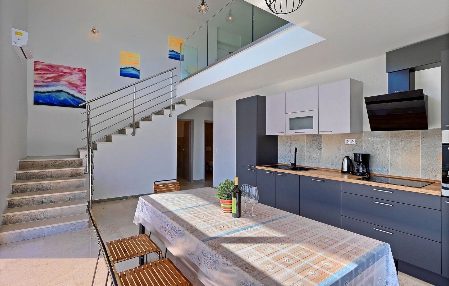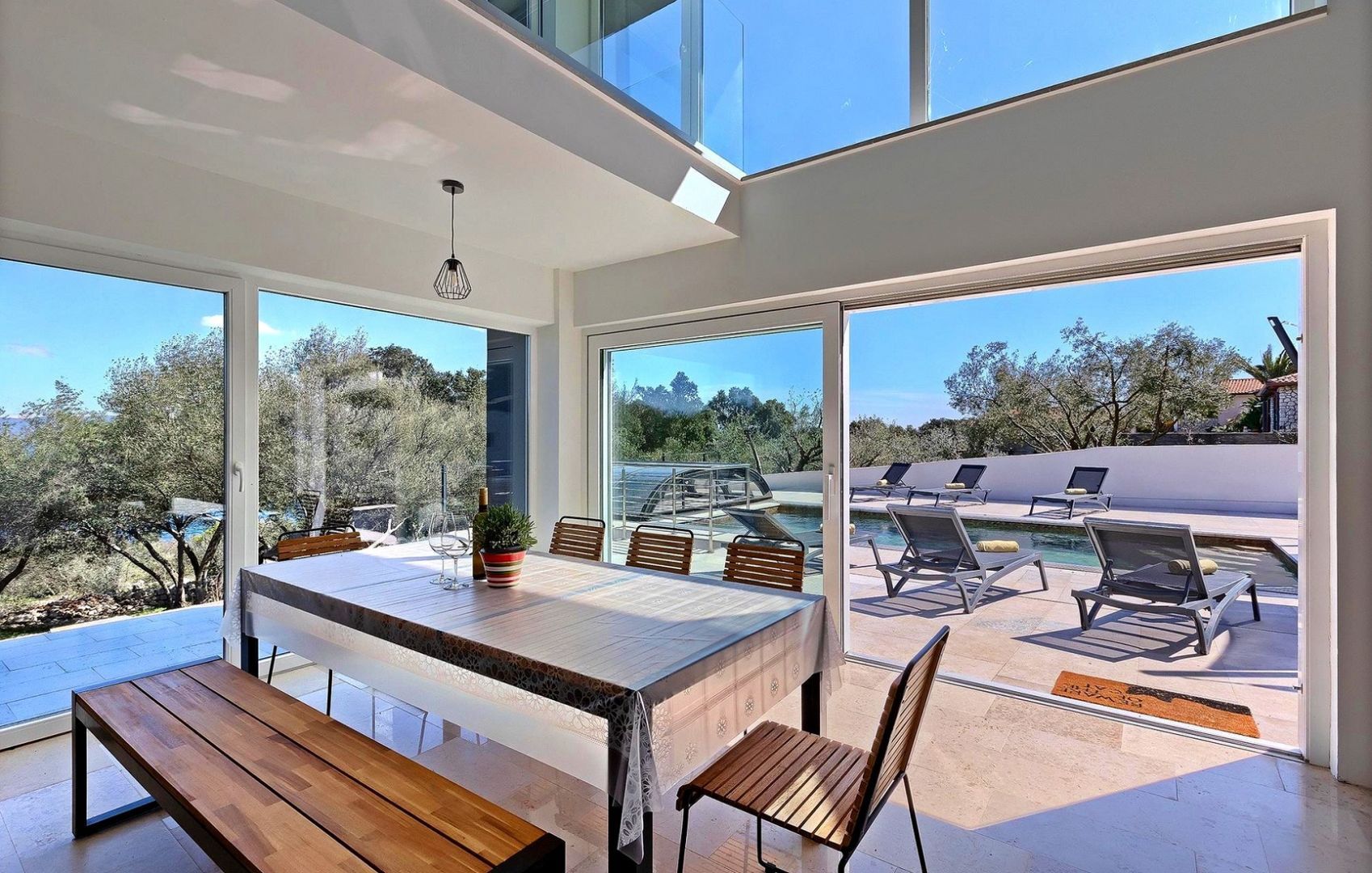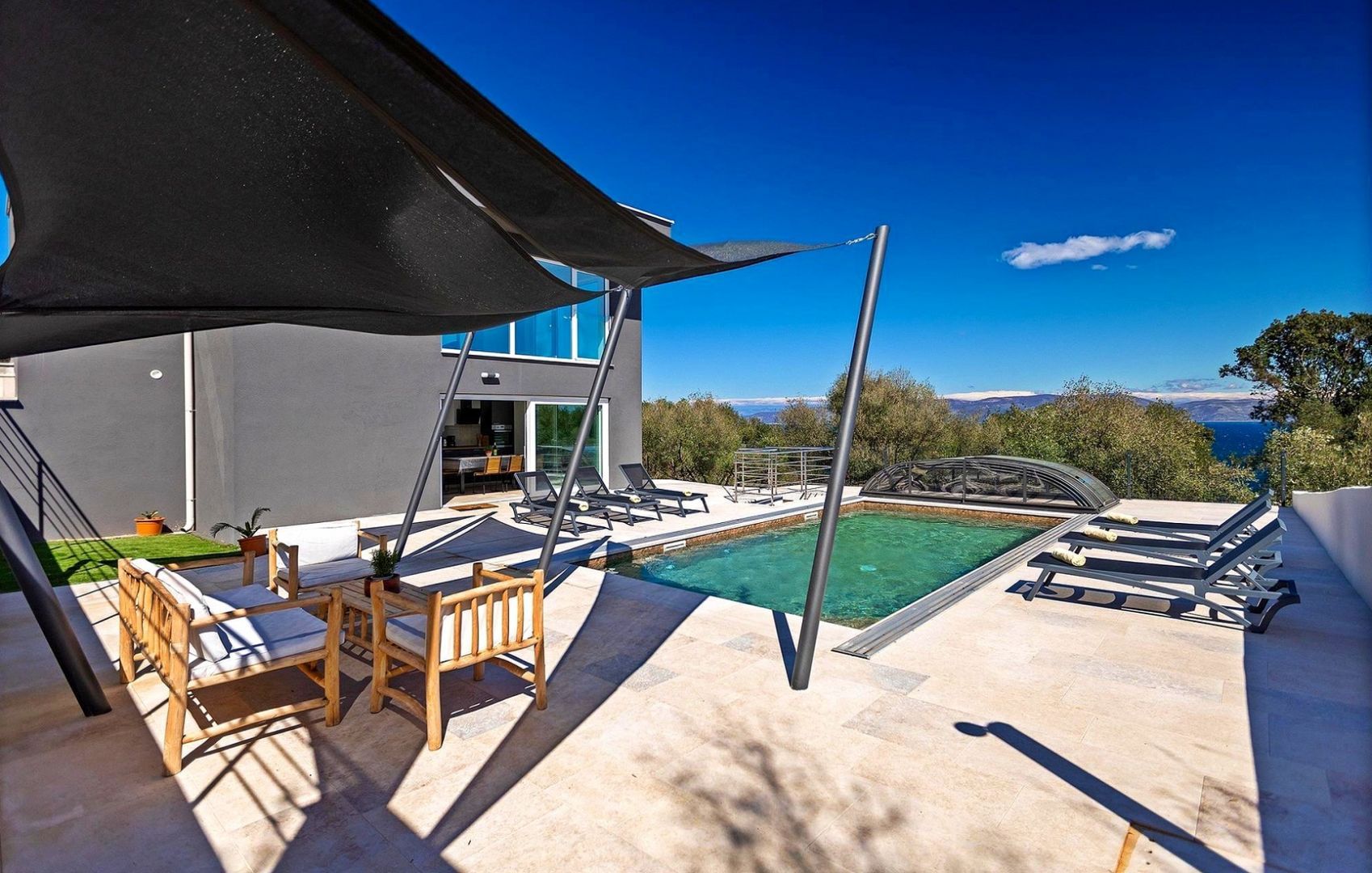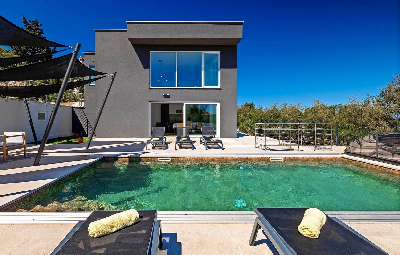 ISTRIEN, RABAC - Villa mit Panoramablick auf das Meer An der südöstlichen Küste Istriens, wo grüne Hügel auf das Meer treffen, wo Natur und Erbe zusammenkommen, gibt es zwei Städte ähnlicher Größe mit unterschiedlichen, sich aber gegenseitig ergänzenden Charakteren – Labin und Rabac, nur vier Kilometer voneinander entfernt. Rabac wird wegen seiner weißen Kiesstrände, der üppigen mediterranen Vegetation und dem kristallklaren Meer auch die Perle der Kvarner-Bucht genannt. Einst ein kleines Fischerdorf, ist Rabac heute ein attraktives Touristenziel, das in einem Netz farbenfroher Straßen eine Fülle kultureller Veranstaltungen verbirgt. Die grüne Umgebung von Rabac und das malerische Hinterland laden das ganze Jahr über zu Abenteuern, Forschung und Erholung ein. Unweit von Rabac und Labin in einer kleinen Siedlung am Meer steht eine Villa mit Panoramablick auf das Meer zum Verkauf. Es befindet sich in einer ruhigen Gegend mit einer Aussicht, die Učka, die Stadt Rijeka, die Kvarner-Inseln und die kristallklare Adria umfasst, und die Lage dieser Immobilie bietet genau diese bezaubernde und einzigartige Aussicht. Es zeichnet sich durch ein modernes Design aus und bei seiner Konstruktion wurden hochwertige Baumaterialien gemäß den höchsten Standards für den Wohnungsbau verwendet. Das minimalistische, moderne Interieur legt Wert auf offene Räume mit Glaswänden, die viel natürliches Licht und einen Panoramablick auf das Meer ermöglichen. Es handelt sich um eine Wohneinheit, deren Fläche auf zwei Etagen verteilt ist; Erdgeschoss und erster Stock. Das Erdgeschoss besteht aus einer Küche mit Esszimmer, drei Schlafzimmern, drei Badezimmern und einer Gästetoilette. Im ersten Stock gibt es ein geräumiges Wohnzimmer, ein Schlafzimmer, ein Badezimmer und ein Gäste-WC. Der Hof ist landschaftlich und gärtnerisch angelegt und eingezäunt, und für vollkommene Harmonie sorgt der beheizte, 38 m² große Swimmingpool mit Liegewiese. Die Lage, Struktur und der Komfort machen diese Immobilie zu einer idealen Gelegenheit für ein ruhiges Familienleben sowie zu einer Investition zur touristischen Vermietung.
