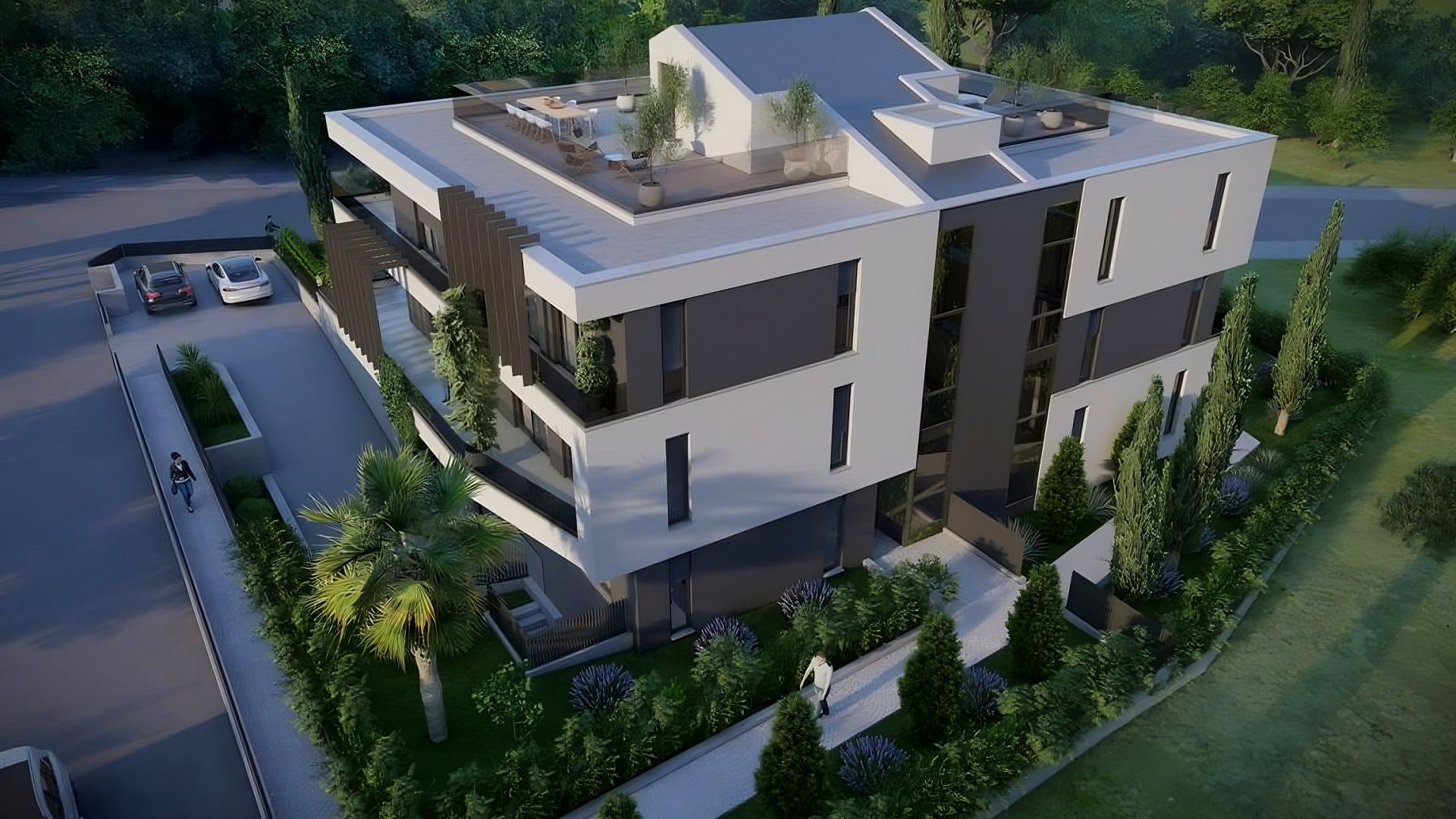 ISTRIEN, ROVINJ – Apartment mit Pool Rovinj, die reizvollste und malerischste Stadt Istriens, deren Altstadt unter UNESCO-Schutz steht, ist eine ständige Inspirationsquelle für Romantiker und Künstler und eines der beliebtesten Reiseziele Kroatiens. Sie liegt an der Westküste Istriens und ist von einem stark zerklüfteten Archipel mit 14 Inseln und 6 Steilküsten entlang der 67 Kilometer langen Küste umgeben, die als Naturschutzgebiet gilt. Die wunderschöne, zerklüftete Küste, das milde mediterrane Mikroklima, das exzellente gastronomische Angebot, das ganzjährige Kulturprogramm und die herzlichen Gastgeber verleihen diesem Ort einen ganz besonderen Zauber. In dieser bezaubernden Stadt, nur 500 Meter vom Meer entfernt, entsteht ein modernes Mehrfamilienhaus mit sechs Wohneinheiten, das sich über Untergeschoss, Erdgeschoss und zwei Obergeschosse erstreckt. Beim Bau wurden langlebige und zuverlässige Materialien verwendet, die langfristige Zufriedenheit und Sicherheit der Bewohner gewährleisten. Die Raumaufteilung jeder Etage ist bis ins Detail durchdacht und bietet ein hochwertiges Raumkonzept. Die Kombination aus Ästhetik, Funktionalität und Komfort war das Ziel, das bei der Gestaltung aller Wohnungen verfolgt wurde. Zum Verkauf steht eine Erdgeschosswohnung. Die Wohnung verfügt über einen offenen Wohnbereich, der Küche, Esszimmer und Wohnzimmer miteinander verbindet und Zugang zur Terrasse bietet, die in den Innenhof mit Swimmingpool übergeht. Zur Wohnung gehören außerdem drei Schlafzimmer, zwei Badezimmer, ein Gäste-WC und ein Abstellraum. Zwei Garagenstellplätze in der Tiefgarage sind ebenfalls vorhanden. Ein Aufzug verbindet alle Etagen mit dem Gebäude. Dieses luxuriöse Neubaugebäude bietet ideale Voraussetzungen für ein komfortables Familienleben sowie eine attraktive Kapitalanlage zur touristischen Vermietung. Die Fertigstellung ist für Frühjahr 2026 geplant. Der angegebene Preis bezieht sich auf den Rohbauzustand ohne Möbel. So können Sie die Wohnung ganz nach Ihren Wünschen und Vorlieben einrichten.