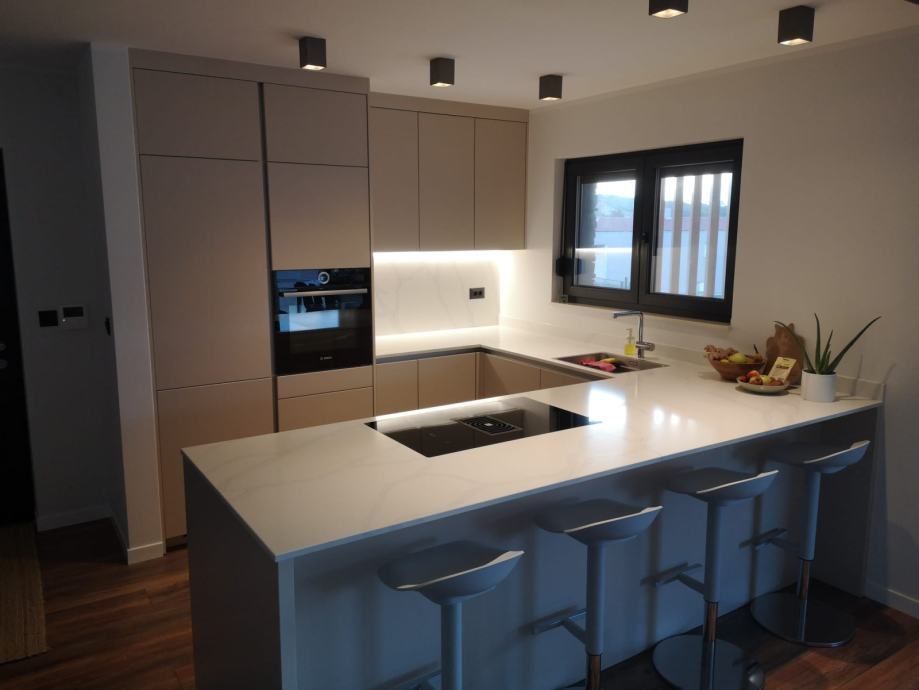 ISTRIEN, ROVINJ – Modernes, neu erbautes Einfamilienhaus Rovinj zählt zu den begehrtesten Städten an der Adria und ist bekannt für seine authentische Altstadt, das kristallklare Meer und sein hervorragendes gastronomisches Angebot. Dank des florierenden Tourismus und der stetigen Nachfrage stellt eine Immobilie in Rovinj eine sichere und langfristig rentable Investition dar. Die Nähe zu Naturparks, Yachthäfen und internationalen Verkehrsanbindungen steigert die Attraktivität dieses Standorts zusätzlich. Im Angebot von DUX präsentieren wir Ihnen ein Haus in der Nähe von Rovinj, ideal für Familien oder als Kapitalanlage zur touristischen Vermietung. Das 128 m² große Einfamilienhaus verfügt über eine offene Küche mit Wohnbereich, drei Schlafzimmer, zwei Badezimmer und einen Technikraum. Vom Wohnzimmer aus gelangen Sie auf eine überdachte Terrasse und in den 847 m² großen Garten. Der Garten ist komplett umzäunt, bietet mehrere Parkplätze und ausreichend Platz für Aktivitäten im Freien und Familienausflüge. ZUSÄTZLICHE INFORMATIONEN: * Das Haus wird möbliert und komplett ausgestattet verkauft. * Die Heizung und Kühlung erfolgt über eine Wärmepumpe mit Fußbodenheizung im gesamten Haus. * Sicherheitstüren * Elektrische Rollläden * PVC-Fenster und Moskitonetze an allen Fenstern gewährleisten hohe Energieeffizienz und Schutz vor Insekten. * Video-Gegensprechanlage * Vorbereitung für die Installation einer Videoüberwachungsanlage * Absolute Privatsphäre dank umzäuntem Garten * Möglichkeit zum Bau eines Swimmingpools * Parkplätze auf dem Grundstück * Entfernung zum Meer: 10 km – 13 Minuten Entfernung zu wichtigen Einrichtungen (Geschäfte, Restaurants, Stadtzentrum): 13 Minuten Die Unterkunft in bester Lage, nahe dem beliebten Touristenziel Rovinj, mit guter Anbindung an die Infrastruktur und hervorragenden Verkehrsverbindungen in den Rest Istriens, ist ideal für die Ferienvermietung oder zum ganzjährigen Wohnen. Die Eigentumsdokumente sind vollständig und beinhalten eine Bau- und Nutzungsgenehmigung, die eine schnelle und sichere Eigentumsübertragung ermöglicht. Kontaktieren Sie uns für weitere Informationen zur Immobilie und einen Besichtigungstermin!