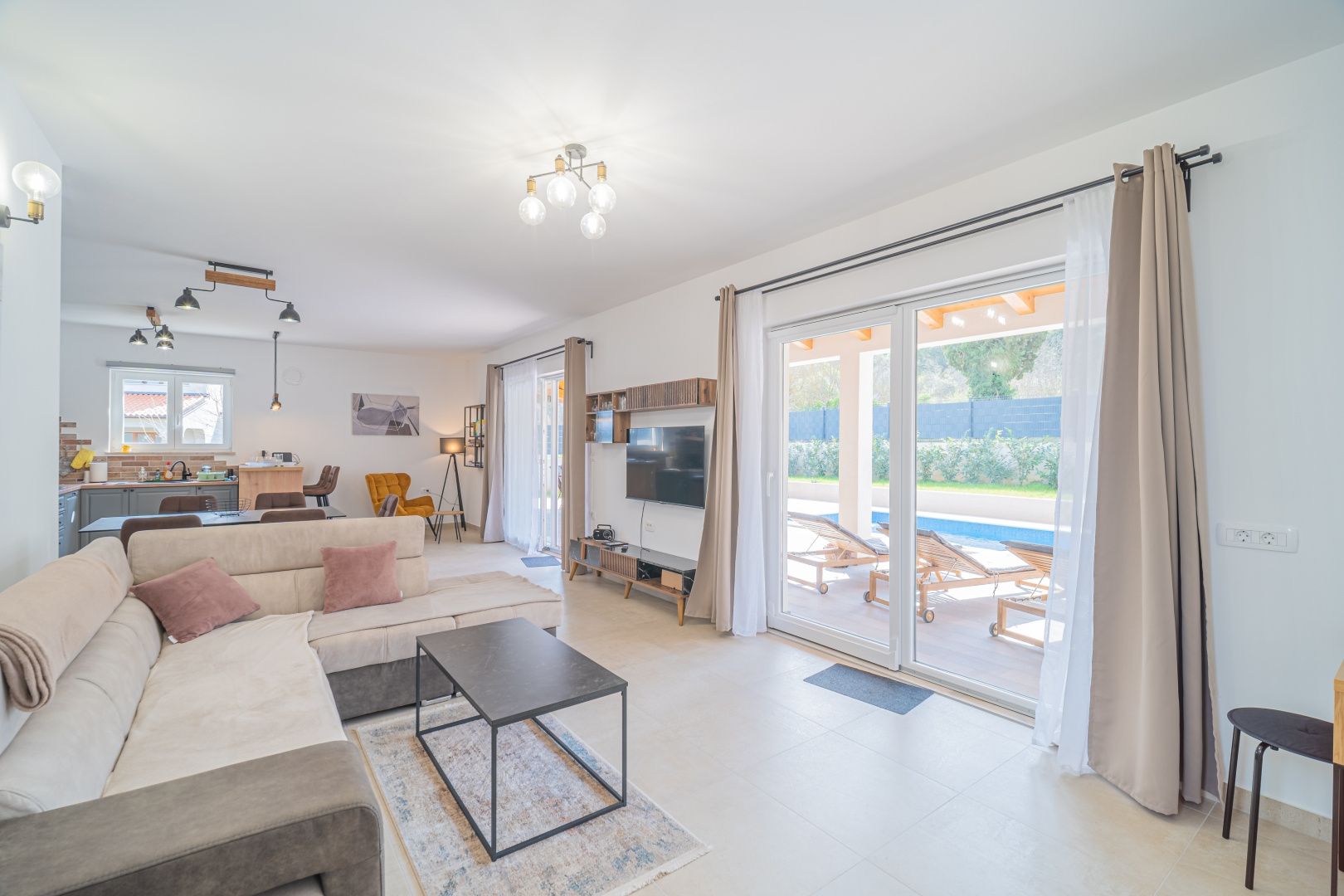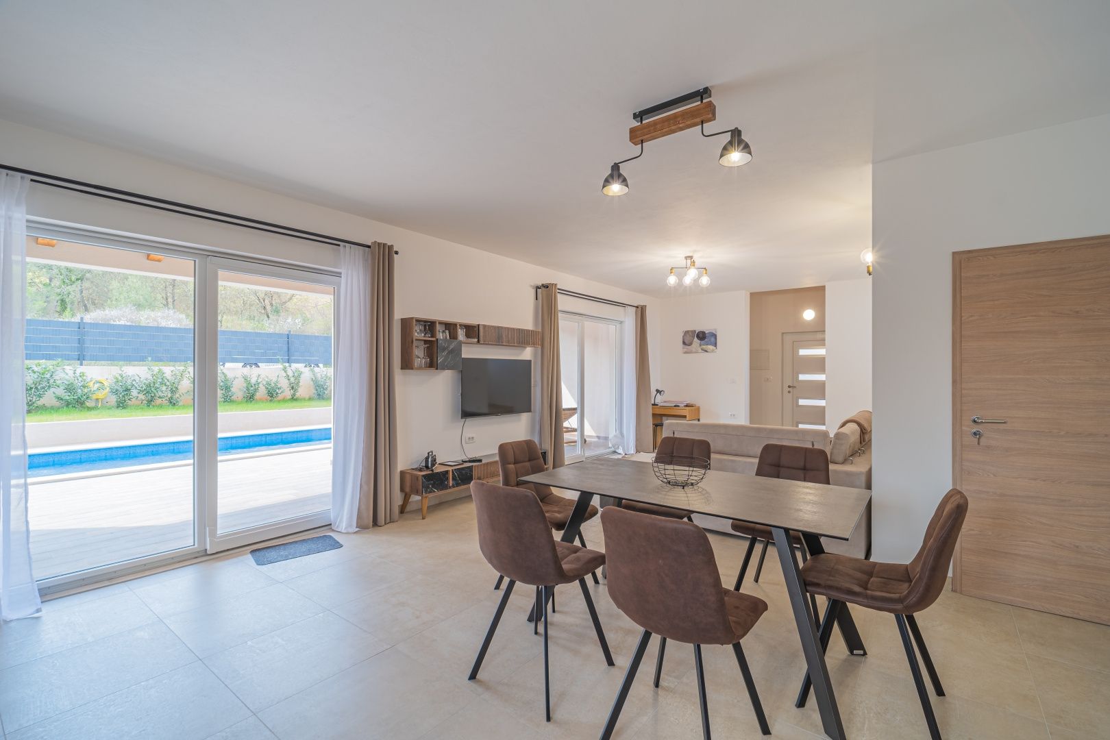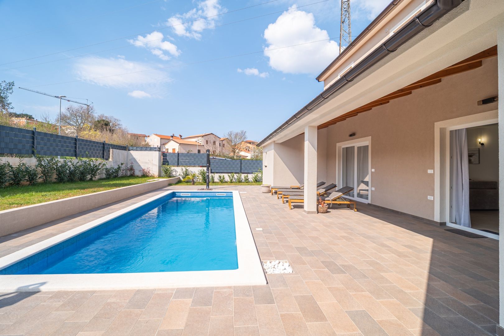 ISTRIEN, ROVINJ - Neu gebautes mehrstöckiges Haus mit Swimmingpool in der Nähe von Rovinj Die malerische, charmante Stadt Rovinj an der Westküste der Halbinsel Istrien war einst ein Hafen und ein Fischerdorf und ist heute mit ihrer einzigartigen Kombination aus Tradition und Moderne eines der am weitesten entwickelten Touristenziele. Es verbindet erfolgreich die Tradition eines Fischerdorfes mit modernen touristischen Trends, einem reichhaltigen gastronomischen Angebot und einem hohen Standard an touristischen Dienstleistungen. Gerade deshalb zieht es Jahr für Jahr viele Besucher an und verzeichnete in den letzten Saisons einen Rekordwert von 3 Millionen Übernachtungen. Besucher kehren oft dorthin zurück. Warum also nicht Eigentümer eines der wertvollsten Anwesen dieser magischen Stadt werden? Dieses charmante, neu erbaute einstöckige Haus liegt nur 7 Kilometer von Rovinj und seinen magischen Straßen und Stränden entfernt. Durch den Kauf dieses schönen Hauses erhalten Sie 127,21 m2 Wohnfläche, aufgeteilt auf Erdgeschoss und Obergeschoss. Das Erdgeschoss von 86,10 m2 besteht aus einem überdachten Eingang, einem Badezimmer, einer Eingangshalle, einem geräumigen Raum, der Wohnzimmer, Küche und Esszimmer vereint, und einer kleinen Speisekammer (Lagerung). Eine Innentreppe führt in den ersten Stock von 41,11 m2, der aus einer Eingangshalle und zwei Schlafzimmern mit jeweils eigenem Bad besteht. Vom Wohnzimmer aus gelangen wir in einen schön angelegten Garten mit einem großen, 8,5 Meter langen Swimmingpool, neben dem sich auch eine Sommerküche mit Kamin befindet, die zum Genießen mit Familie und Freunden einlädt. Neben dem Haus gibt es mehrere Parkplätze für Ihre Haustiere. Das Haus ist komplett eingezäunt und liegt am Rande des Dorfes und bietet so den zukünftigen Eigentümern Privatsphäre und Ruhe. Heizen und Kühlen durch Klimaanlage. Diese ideale Immobilie wurde für das Leben einer jungen Familie, aber auch für die touristische Vermietung geschaffen!