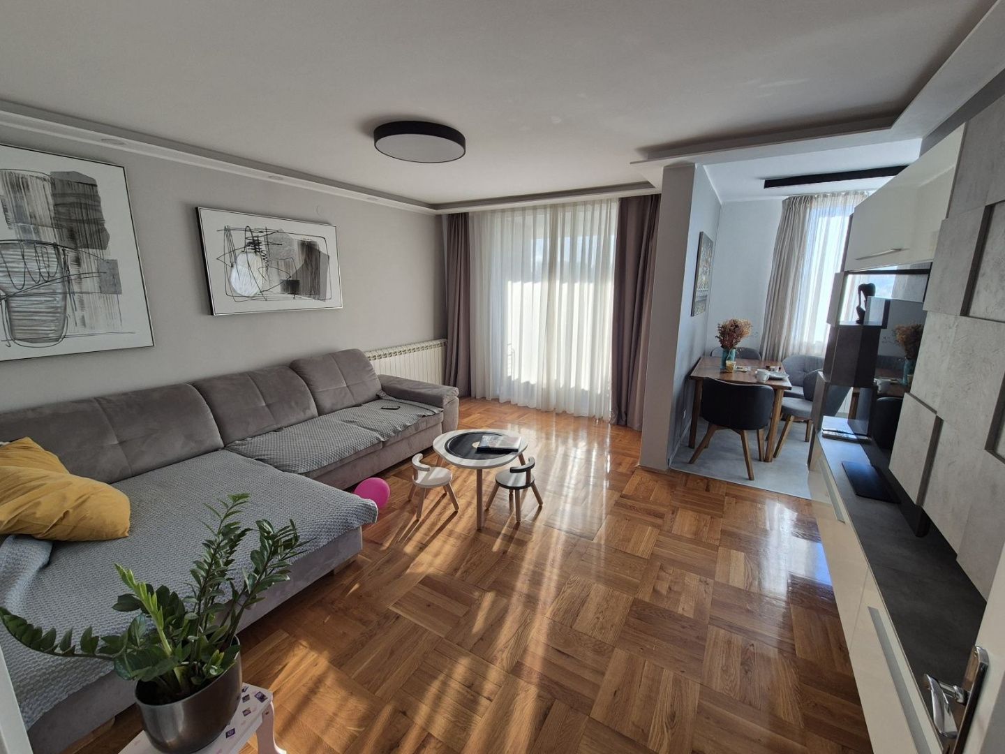 ISTRIEN, ROVINJ – Renovierte Wohnung in attraktiver Lage! LAGEBESCHREIBUNG: Rovinj ist eine Stadt im Westen Kroatiens an der Westküste Istriens. Zusammen mit Poreč bildet sie das touristische Zentrum Istriens und zählt zu den beliebtesten Reisezielen an der Adria. Rovinj grenzt an die Gemeinden Bale, Kanfanar, Sv. Lovreč und Vrsar. Die Wohnung selbst liegt nur 300 m vom Zentrum Rovinjs entfernt. Sie befindet sich in einem Wohngebäude mit zahlreichen weiteren Wohneinheiten in einer belebten Lage mit allen Annehmlichkeiten für ein ruhiges Familienleben in unmittelbarer Nähe. OBJEKTBESCHREIBUNG: Die Wohnung befindet sich im vierten von fünf Stockwerken eines Wohngebäudes. Sie besteht aus einem Eingangsbereich, der die Wohnung in einen privaten und einen gemeinschaftlichen Bereich unterteilt. Unmittelbar rechts vom Eingangsbereich befindet sich ein geräumiges Wohnzimmer mit angrenzender Küche und Essbereich sowie Zugang zu einer großzügigen Loggia. Im Flur selbst verbergen sich außerdem ein Hauswirtschaftsraum und ein geräumiges Badezimmer, während sich links zwei große Schlafzimmer befinden. Das Gebäude wurde 1978 erbaut, die Wohnung zuletzt 2020 renoviert. Bei der Modernisierung wurden hochwertige Materialien verwendet: eine exklusive Küche von Dan Kuchen, Badezimmerausstattung von Hansgrohe, Designerkeramik von Roberto Cavalli, dimmbare indirekte Beleuchtung und dimmbare Deckenleuchten sowie hochwertige Haushaltsgeräte von Bosch, Samsung und Electrolux. Die Wohnung verfügt über eine elektrische Zentralheizung (Vaillant elo Block, 18 kW) mit Heizkörpern in allen Räumen, eine Toshiba-Klimaanlage im Wohnzimmer sowie Vorbereitungen für die Installation von Klimaanlagen in den Schlafzimmern. Diese exzellente Immobilie befindet sich in einer der attraktivsten und begehrtesten Städte Istriens. Die hervorragende Lage, der sehr gute Zustand der Wohnung und die hochwertige Ausstattung sind nur einige der Vorzüge, die diese Wohnung für ihre neuen Eigentümer so attraktiv machen. Alle Unterlagen sind vollständig, es handelt sich um Eigentum der Wohnung 1/1 und das Gebäude verfügt über eine Nutzungsgenehmigung! Für weitere Informationen und zur Vereinbarung eines Besichtigungstermins kontaktieren Sie bitte Ihren Makler!