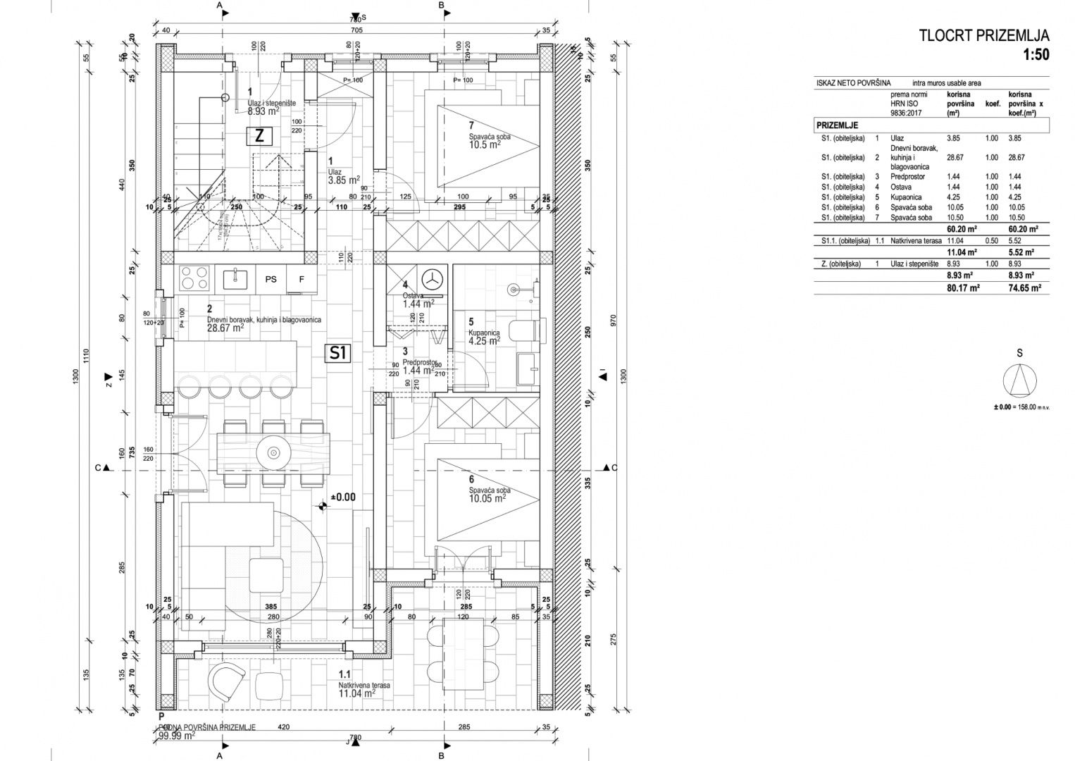 ISTRIEN, ROVINJ – Erdgeschosswohnung in einem Neubau Die attraktivste und malerischste istrische Stadt Rovinj mit ihrer Altstadt unter UNESCO-Schutz ist eine ewige Inspiration für Romantiker und Künstler und eines der am weitesten entwickelten Touristenziele Kroatiens. Sie liegt an der Westküste Istriens und ist mit einem stark gegliederten Archipel mit nicht weniger als 14 Inselchen und 6 Klippen entlang einer 67 Kilometer langen Küste geschmückt, die zum geschützten Naturerbe gehört. Die wunderschöne gegliederte Küste, das spezifisch milde mediterrane Mikroklima, das ausgezeichnete gastronomische Angebot, ganzjährige kulturelle Veranstaltungen sowie freundliche und zuvorkommende Gastgeber machen diesen Ort magisch. In der Nähe der Stadt Rovinj steht eine Wohnung im Erdgeschoss eines Neubaus zum Verkauf. Das Doppelhaushälfte-Familienhaus in zeitlosem Design mit zwei Wohneinheiten fügt sich in Form und Farbe in die Siedlung und Landschaft ein und erstreckt sich über das Erdgeschoss und den ersten Stock. Beim Bau wurden langlebige und zuverlässige Materialien verwendet, die langfristige Zufriedenheit und Sicherheit des Wohnsitzes garantieren. Die Raumplanung jeder Etage wurde detailliert durchgeführt, was zu einer hochwertigen Raumaufteilung führte, die eine vollständige Raumausnutzung gewährleistet. Gegenstand des Verkaufs ist eine Wohnung im Erdgeschoss des Gebäudes. Die Nettofläche mit berechneten Koeffizienten beträgt 65,72 m², während die Nettofläche ohne den berechneten Koeffizienten 71,24 m² beträgt und eine Wohnfläche von 60,20 m² und eine überdachte Terrasse von 11,04 m² umfasst. Sie besteht aus zwei Schlafzimmern, einem Badezimmer, einem Hauswirtschaftsraum, einem Flur und einem offenen Raum, der Wohnzimmer, Esszimmer und Küche mit Zugang zu einer überdachten Terrasse vereint. Zur Wohnung gehört ein Parkplatz. Diese Wohnung ist eine ideale Gelegenheit für ein angenehmes Familienleben sowie als Investition zur touristischen Vermietung. Der geplante Fertigstellungstermin und die Übergabe der Immobilie sind für Anfang 2027 vorgesehen. Der angegebene Preis der Immobilie bezieht sich auf den endgültigen Fertigstellungsgrad ohne Möbel, was eine endgültige Dekoration nach Ihren eigenen Wünschen und Vorlieben ermöglicht. Der Verkäufer der betreffenden Immobilie ist eine juristische Person.