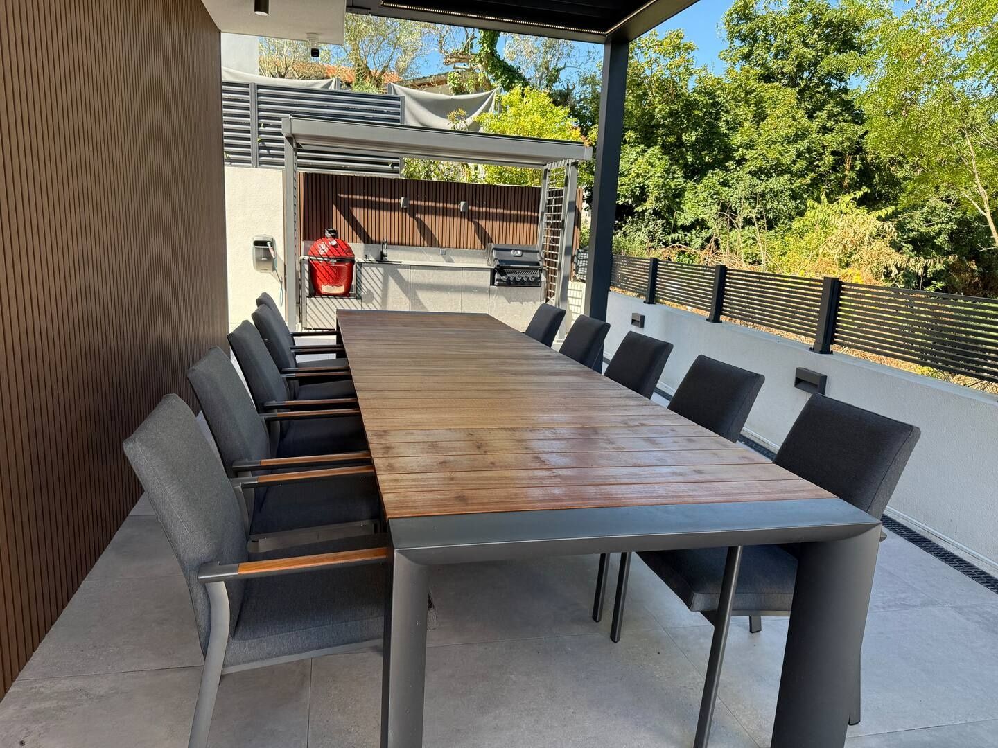 ISTRIEN, ROVINJ VILLAGE Eine zauberhafte Villa mit Swimmingpool in Meeresnähe In ruhiger istrischer Umgebung, nur wenige Autominuten vom zauberhaften Rovinj entfernt, befindet sich diese einzigartige und luxuriös eingerichtete Villa – der perfekte Rückzugsort für Erholung, Entspannung und geselliges Beisammensein. Gelegen in einem kleinen Dorf mit Restaurant, Bar und Geschäft in fußläufiger Entfernung, verbindet das Haus absolute Ruhe mit der Nähe zu allen Annehmlichkeiten und der wunderschönen Küste. Die geräumige und sonnige Villa erstreckt sich über zwei Etagen und bietet vier große, komfortable Schlafzimmer, jedes mit eigenem Bad, Klimaanlage und TV – für absolute Privatsphäre und Komfort. Das offene Wohnzimmer mit großen Glaswänden öffnet sich zur Außenterrasse und zum beheizten Pool und schafft so eine ideale Kombination aus Innen- und Außenbereich. Das Innere des Hauses ist mit luxuriösen italienischen Möbeln eingerichtet, und die Küche ist mit hochwertigen Miele-Haushaltsgeräten ausgestattet, darunter eine Miele-Kaffeemaschine. Das große Esszimmer ist mit dem Außenbereich verbunden, der eine Lounge-Terrasse, eine Sommerküche mit Gasgrill und einen Kamado Joe Keramik-Holzkohlegrill umfasst – perfekt für Abendessen mit Freunden oder der Familie. Die geräumige Terrasse mit einem Esstisch für zehn Personen ist durch eine bioklimatische Pergola geschützt, die an Sommertagen angenehmen Schatten spendet. Neben dem großen beheizten Pool befindet sich ein Sonnendeck mit sechs Sonnenliegen und zusätzlichen Gartenmöbeln zum Entspannen. Der Außenbereich bietet absolute Privatsphäre und die umliegende Natur lädt zum Spazierengehen und Wandern ein. Nur 6 Kilometer trennen dieses Anwesen von Rovinj – einer der schönsten Städte an der Adria, bekannt für ihr reiches kulturelles Angebot, ihre erstklassigen Restaurants und ihre unvergessliche Atmosphäre. Dieses Haus bietet alles, was Sie für einen wahrhaft luxuriösen Urlaub im Herzen Istriens benötigen.